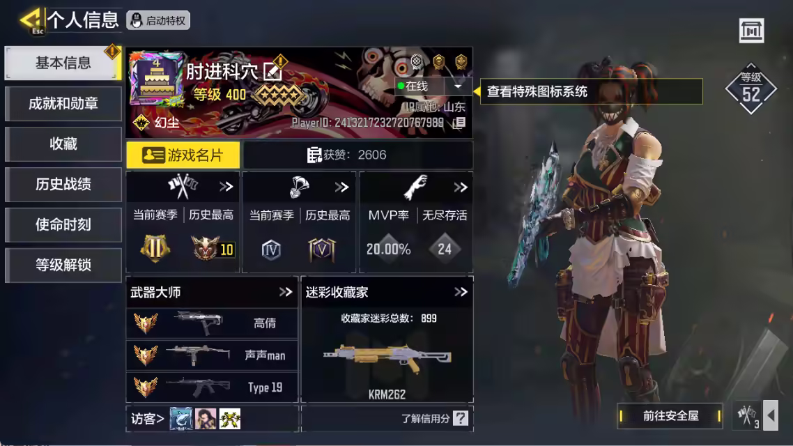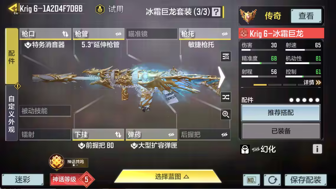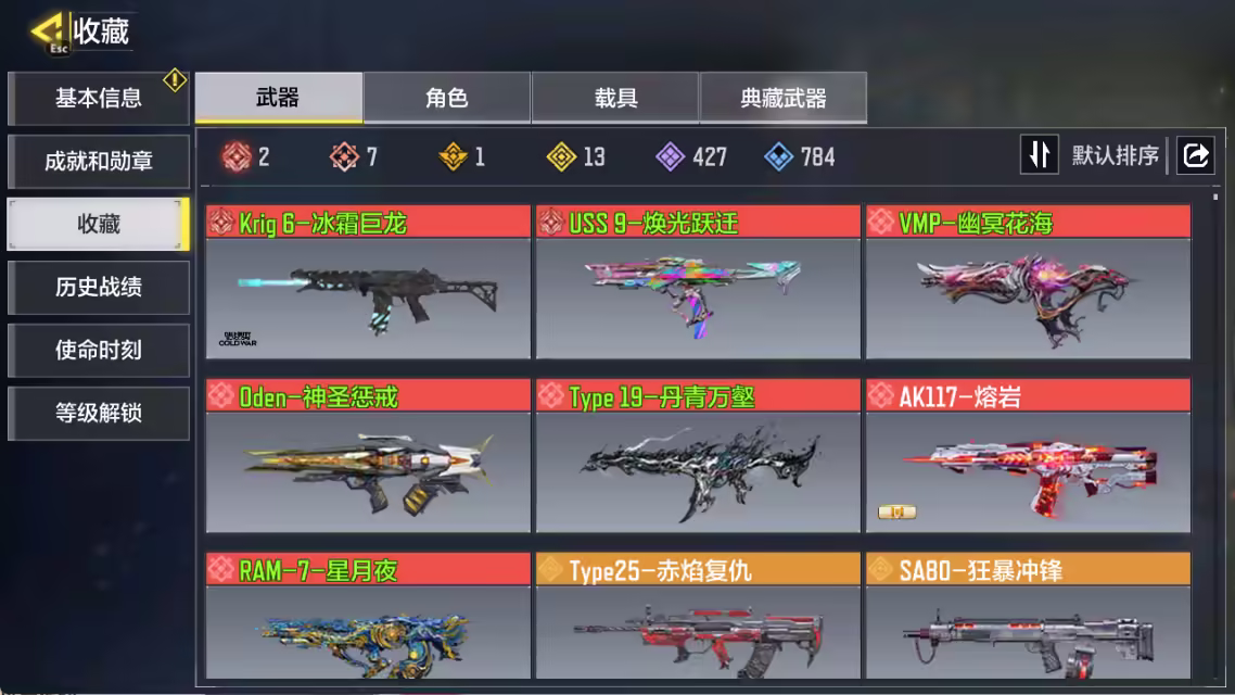 xly5000 亮点:6热门神话/高达/黑骡子 游戏区服:安卓qq 实名情况:可二次实名 神话武器数量:7 神话角色数量: 传说武器数量:13 传说角色数量:1 传说载具数量: 神话武器:ram7星月夜1级vmp-幽冥花海4级uss9-焕光跃迁满级type19-丹青万壑3级krig6-冰霜巨龙满级oden-神圣惩戒1级 神话角色: 传说典藏武器:chopper-地狱猎犬 传说辉光武器: 传说武器:type25-赤焰复仇sa80-狂暴冲锋ak47-火箭炮电棍-永恒炽热cr56-回音律动krm262-深红地隙m13-暗影荣光ffar1星彩乐手aks74u神灯灵愿飞翼浮游炮v高达rpd-一路悠扬m4-皇家黑魂 传说角色:伊森-自由高达 热门角色:罗兹-日暮时分 传说载具: