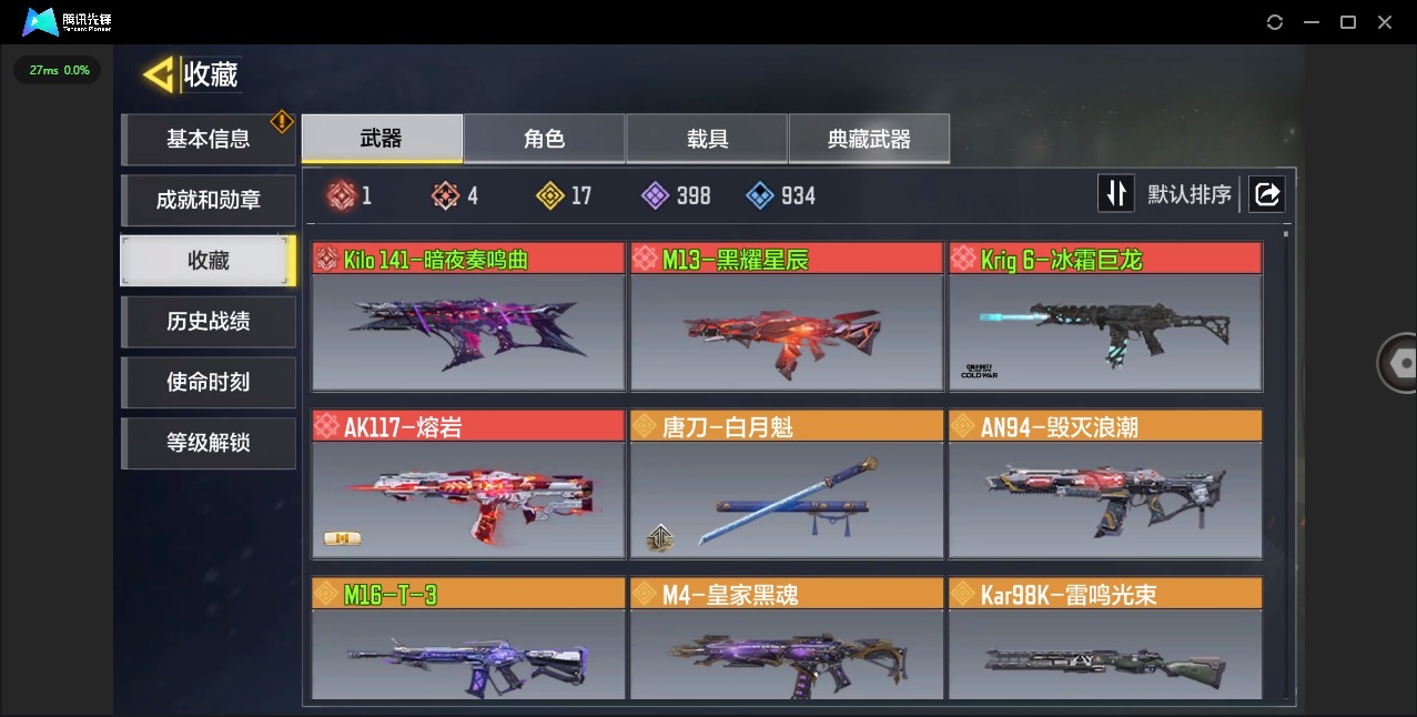 [14432244]383级 4神话 17传说 398史诗 段位钻石 可二次 可修改实名 【神话呛械】:ak117-熔岩krig 6-冰霜巨龙m13-黑耀星辰kilo141-暗夜奏鸣曲 【传说呛械】:m4-皇家黑魂an94-毁灭浪潮sa80-狂暴冲锋ak47-火箭炮ffar 1-星