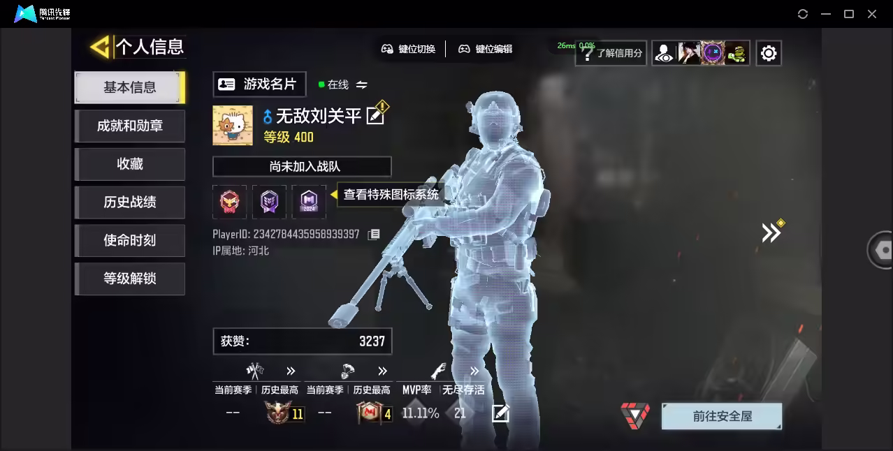 xly5549 亮点:5神话冰霜巨龙/1神话角色 游戏区服:安卓qq 实名情况:可二次实名 神话武器数量:5 神话角色数量:1 传说武器数量:12 传说角色数量:0 传说载具数量:1 神话武器:grau556-源核天灾2级ak117-终墟满级dlq33-红莲天诛2级krig6-冰霜巨龙满级kilo141-暗夜奏鸣曲满级 神话角色:海灵-覆海的灵音 传说典藏武器:swdfish-糖化魔猫 传说辉光武器: 传说武器:s36-甜心诱惑m4-皇家黑魂m4-虚空坍缩drh-蝮蛇潜渊akbp-塞壬律曲sa80-狂暴冲锋g37-群山灿阳ak47-火箭炮飞翼浮游炮v高达aks74u神灯灵愿rpd-一路悠扬 传说角色: 热门角色: 传说载具:滑雪板-沙蚀边界