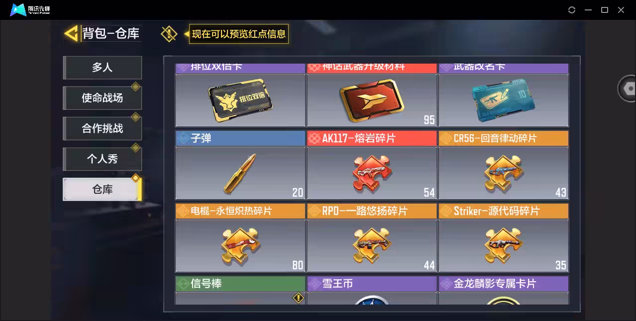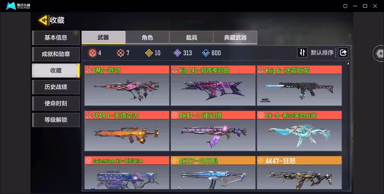 xly5606 亮点:7神4满/唐刀冉冰 游戏区服:苹果qq 实名情况:可二次实名 神话武器数量:7 神话角色数量:0 传说武器数量:10 传说角色数量:0 传说载具数量:0 神话武器:cx9-希尔芙的庇佑2级ffar1-无境空刃满级em2-苍穹满级krig6-冰霜巨龙满级switchbladex9-瞬影斩决4级ak47-三重幻境6级kilo141-暗夜奏鸣曲满级 神话角色: 传说典藏武器: 传说辉光武器: 传说武器:ak47-狂怒ak117-白月魁唐刀-白月魁an94-毁灭浪潮m4-皇家黑魂type25-赤焰复仇m16-t-3kar98k-雷鸣光束dlq33-炫彩冬日pp19-蔑誓者 传说角色: 热门角色:冉冰 传说载具:
