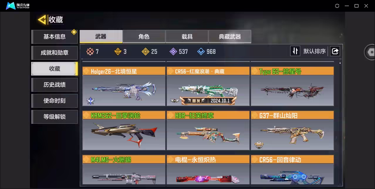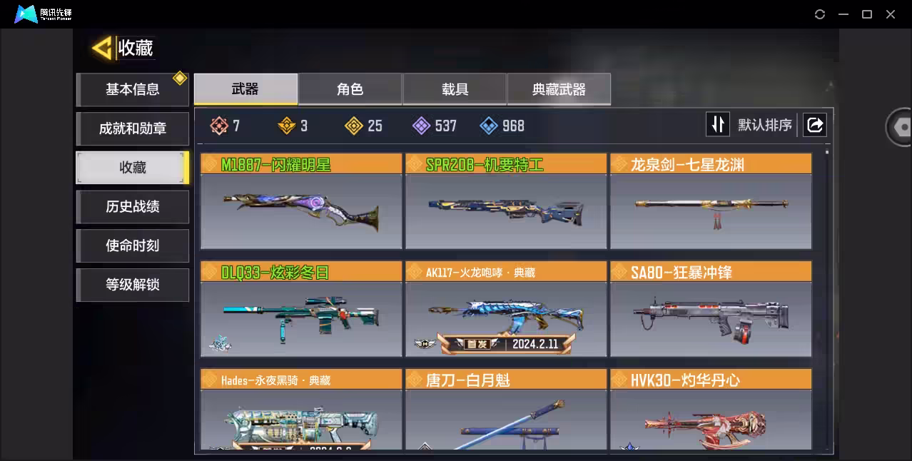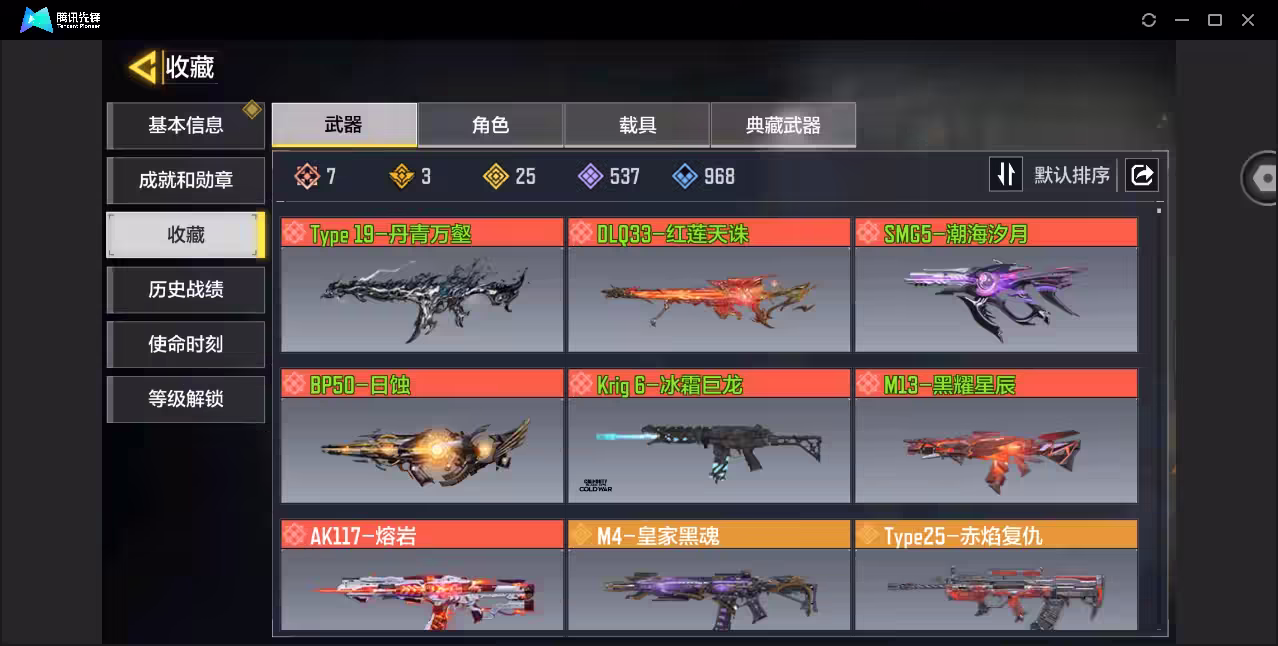xly5612 亮点:6神话-唐刀涡轮多热门传说 游戏区服:安卓qq 实名情况:可二次实名 神话武器数量:6 神话角色数量:0 传说武器数量:25 传说角色数量:1 传说载具数量:0 神话武器:bp50-日蚀type19-丹青万壑3级smg5-潮海汐月dlq33-红莲天诛1级krig6-冰霜巨龙m13-黑曜星辰4级 神话角色: 传说典藏武器:ak117-火龙咆哮hades-永夜黑骑cr56-红魔浪潮 传说辉光武器: 传说武器:an94-毁灭浪潮m4-皇家黑魂sa80-狂暴冲锋m1887-闪耀明星spr208-机要特工唐刀-白月魁龙泉剑-七星龙渊dlq33-炫彩冬日hvk30-灼华丹心holger-北境恒星krm262-巨擎涡轮type63-掠星号g37-群山灿阳m4lmg-火蜥蜴电棍-永恒炽热cr56-回音律动ak47-火箭炮飞翼浮游炮v高达aks74u神灯灵愿ffar1星彩乐手rpd-一路悠扬 传说角色:里希多芬-黑暗造物主 热门角色: 传说载具: