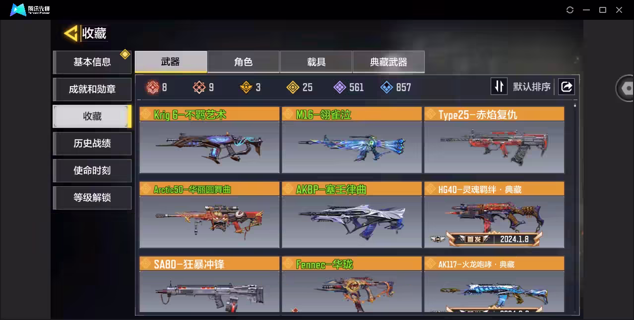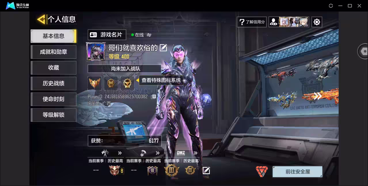 xly5625 亮点:8神8满/觉醒神话角色 游戏区服:苹果qq 实名情况:可二次实名 神话武器数量:8 神话角色数量:1 传说武器数量:25 传说角色数量:0 传说载具数量:0 神话武器:so-14-万刃灼锋满级ram7星月夜满级type19-丹青万壑满级grau556-源核天灾满级ffar1-无境空刃满级smg5-潮海汐月满级krig6-冰霜巨龙满级ak47-三重幻境满级 神话角色:海灵-覆海的灵音(觉醒) 传说典藏武器:hg40-灵魂羁绊ak117-火龙咆哮argus天宫敕令典藏 传说辉光武器: 传说武器:krig-不羁艺术m16-翎雀泣arctic50-华丽圆舞曲type25-赤焰复仇sa80-狂暴冲锋fennec-华珑电棍-永恒炽热cr56-回音律动唐刀-白月魁svd-赫拉之击ak47-火箭炮飞翼浮游炮v高达aks74u神灯灵愿ffar1星彩乐手fennec-阿克西斯奇迹locus-红色彗星rpd-一路悠扬0den-世锦殿堂0l033-狂热祈愿striker一源代码m4-皇家黑魂 传说角色: 热门角色: 传说载具: