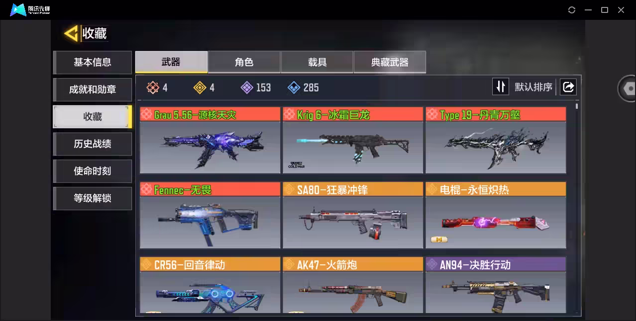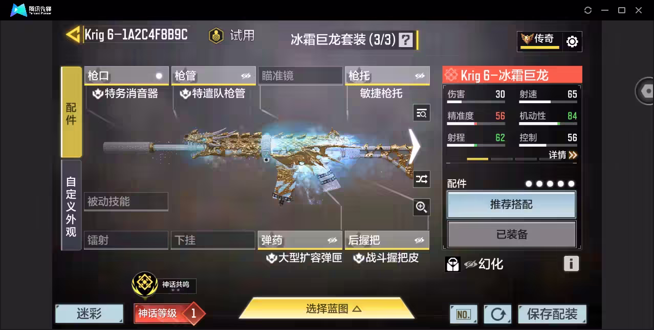 xly5688 亮点:四神话 游戏区服:苹果qq 实名情况:可二次实名 神话武器数量:4 神话角色数量:0 传说武器数量:4 传说角色数量:0 传说载具数量:0 神话武器:type19-丹青万壑3级grau556-源核天灾4级krig6-冰霜巨龙1级fennec-无畏4级 神话角色: 传说典藏武器: 传说辉光武器: 传说武器:电棍-永恒炽热cr56-回音律动ak47-火箭炮sa80-狂暴冲锋 传说角色: 热门角色: 传说载具: