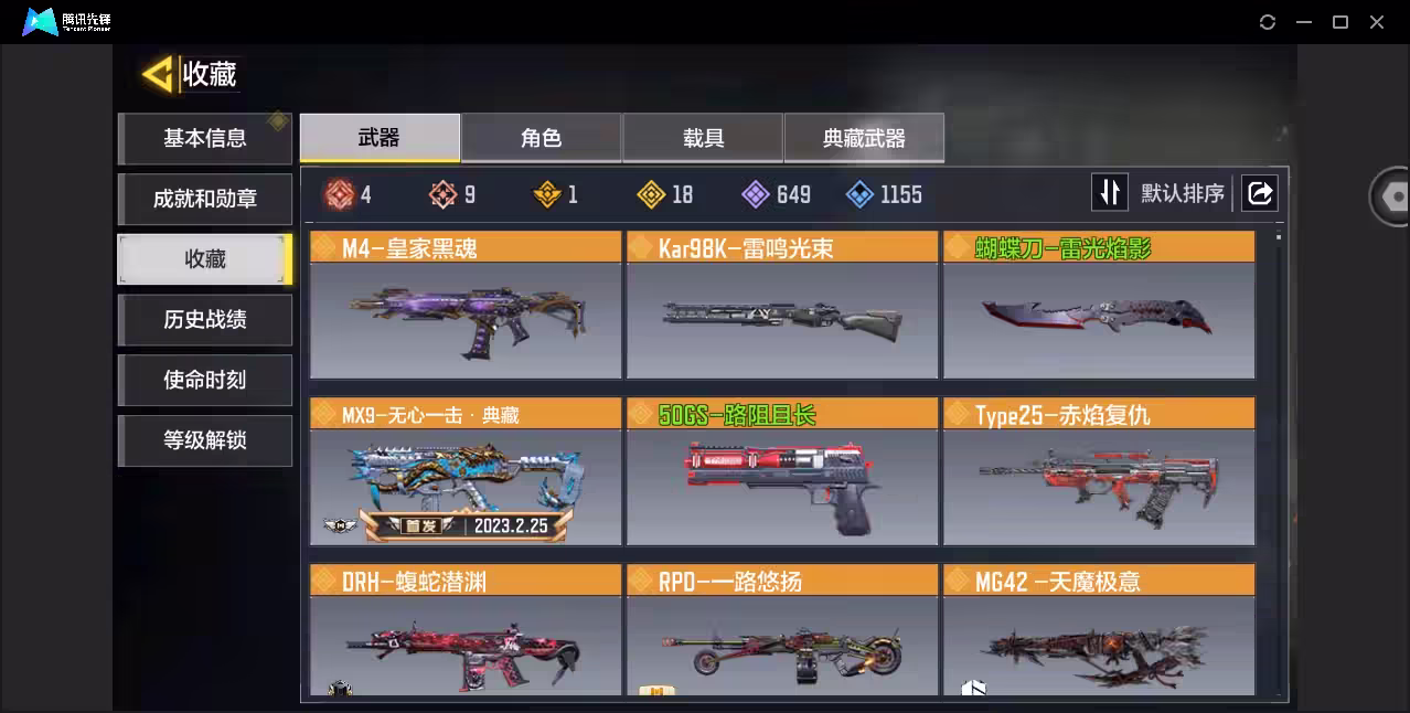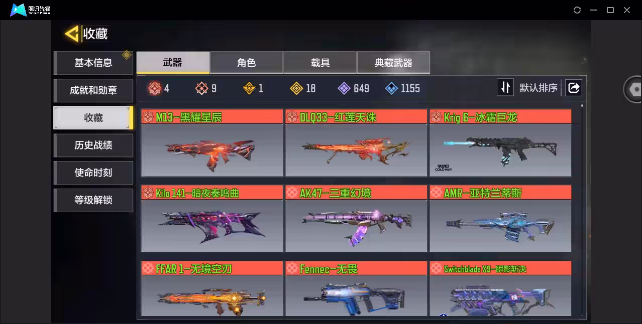xly5780 亮点:9神4满/唐刀素子 游戏区服:安卓qq 实名情况:可二次实名 神话武器数量:9 神话角色数量:0 传说武器数量:18 传说角色数量:1 传说载具数量:1 神话武器:ffar1-无境空刃3级dlq33-红莲天诛满级krig6-冰霜巨龙满级switchbladex9-瞬影斩决3级ak47-三重幻境7级kilo141-暗夜奏鸣曲满级m13-黑曜星辰满级amr-亚特兰蒂斯3级fennec-无畏3级 神话角色: 传说典藏武器:mx9-无心一击 传说辉光武器: 传说武器:ak47-狂怒spr208-机要特工s36-甜心诱惑an94-毁灭浪潮dlq33-炫彩冬日唐刀-白月魁spr208-斗转星移man0war-梦幻水晶pkm-麋鹿m4-皇家黑魂type25-赤焰复仇kar98k-雷鸣光束蝴蝶刀-雷光焰影50gs-路阻且长drh-蝮蛇潜渊mg42-天魔极意rpd-一路悠扬 传说角色:索菲亚-叛逆骑士 热门角色:素子 传说载具:直升机-直瞄轰炸