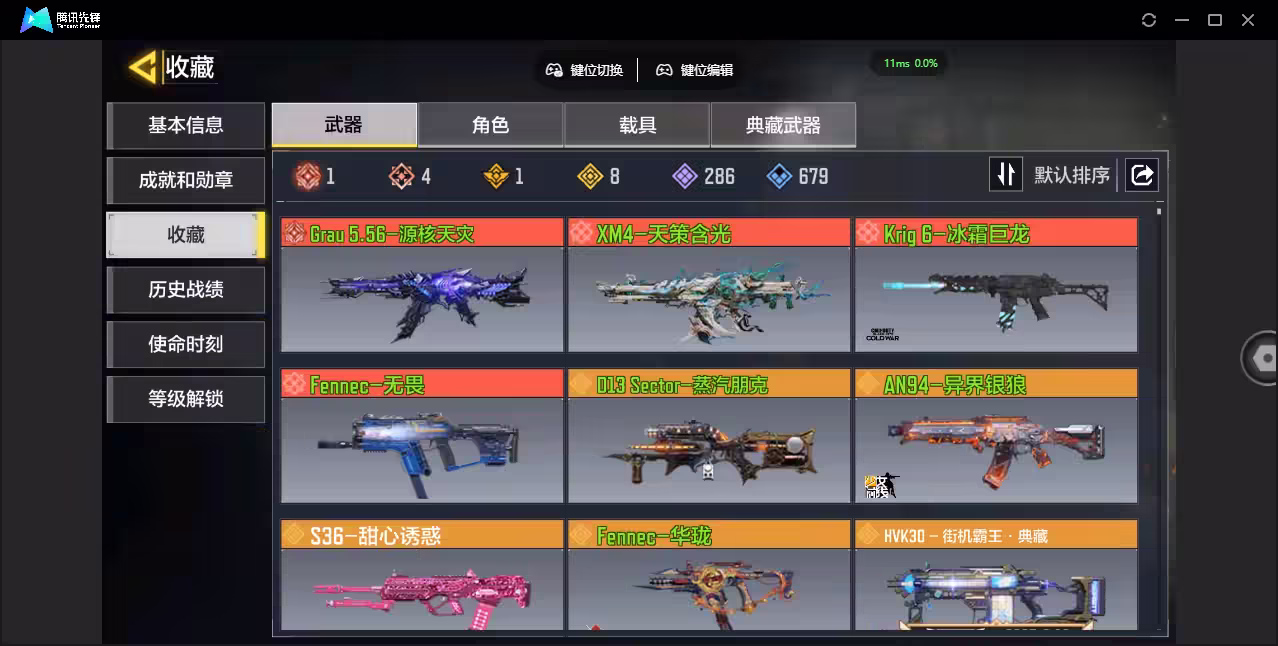 xly5822 亮点:4神话冰霜巨龙 游戏区服:苹果qq 实名情况:可二次实名 神话武器数量:4 神话角色数量:0 传说武器数量:8 传说角色数量:0 传说载具数量:0 神话武器:xm4-天策含光4级grau556-源核天灾满级krig6-冰霜巨龙3级fennec-无畏2级 神话角色: 传说典藏武器:hvk30-街机霸王 传说辉光武器: 传说武器:d13sect-蒸汽朋克an94-异界银狼s36-甜心诱惑fennec-华珑rpd-一路悠扬电棍-永恒炽热 传说角色: 热门角色:希拉-异界联合冉冰 传说载具:
