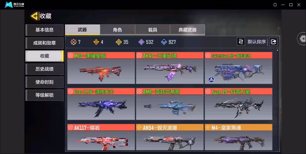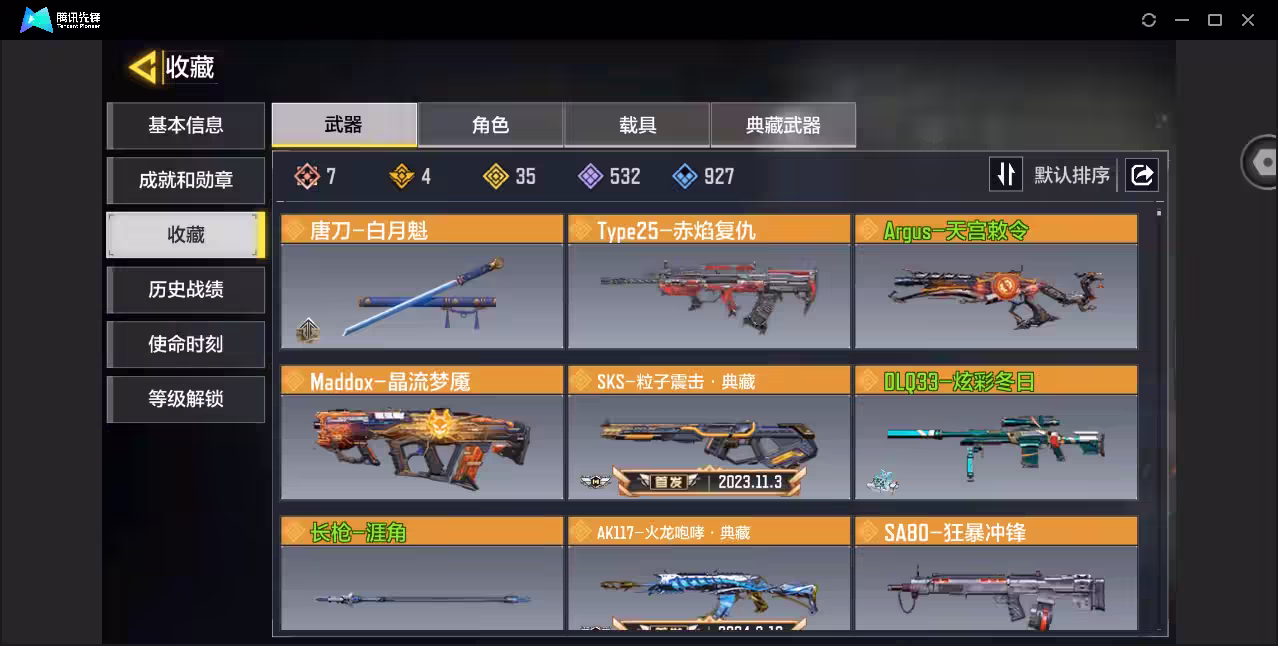 xly5897 亮点:6神话/狼狙唐刀/素子多热门角色 游戏区服:安卓qq 实名情况:可二次实名 神话武器数量:6 神话角色数量:0 传说武器数量:35 传说角色数量:0 传说载具数量:0 神话武器:type19-丹青万壑3级grau556-源核天灾3级switchbladex9-瞬影斩决3级ak47-三重幻境3级m13-黑曜星辰3级amr-亚特兰蒂斯2级 神话角色: 传说典藏武器:sks-粒子震击ak117-火龙咆哮hades-永夜黑骑smg5-月光追痕 传说辉光武器: 传说武器:an94-毁灭浪潮m4-皇家黑魂sa80-狂暴冲锋type25-赤焰复仇dlq33-炫彩冬日唐刀-白月魁argus-天宫敕令maddox-晶流梦魇长呛-涯角lw3tundra-雪林歌谣拳套-魔羊利角arctic50-青眸白虎icr-紫藤曼华hvk30-街机霸王bruenmk9-月球巡航g37-群山灿阳电棍-永恒炽热cr56-回音律动m16-锦木干束pkm-井上泷奈manowar-狱海焰火vargo-s-熔铸炎狱ak47-火箭炮locus-红色彗星飞翼浮游炮v高达ffar1星彩乐手aks74u神灯灵愿rpd-一路悠扬0l033-狂热祈愿mg42-天魔极意uss9-形意天青 传说角色: 热门角色:霄羽-子夜歌素子佛洛伦斯-惊惧夜 传说载具: