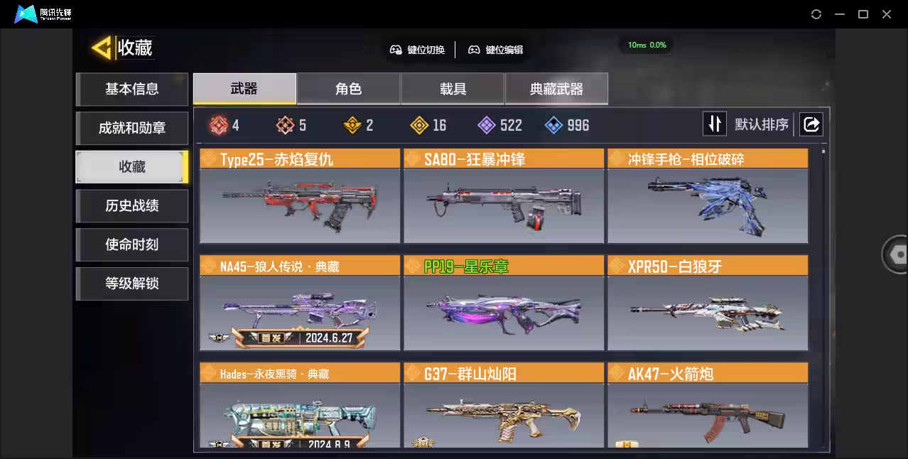 xly5894 亮点:5神话4满级 游戏区服:安卓qq 实名情况:可二次实名 神话武器数量:5 神话角色数量:0 传说武器数量:16 传说角色数量:1 传说载具数量:0 神话武器:grau556-源核天灾满级ffar1-无境空刃满级dlq33-红莲天诛3级ak47-三重幻境满级fennec-无畏满级 神话角色: 传说典藏武器:na45-狼人传说hades-永夜黑骑 传说辉光武器: 传说武器:an94-毁灭浪潮s36-甜心诱惑m4-皇家黑魂fr556-谜影之境type25-赤焰复仇sa80-狂暴冲锋冲锋手呛-相位破碎pp19-星乐章xpr50-白狼牙g37-群山灿阳ak47-火箭炮fennec-阿克西斯奇迹飞翼浮游炮v高达ffar1星彩乐手 传说角色:狐步-深层梦境 热门角色: 传说载具: