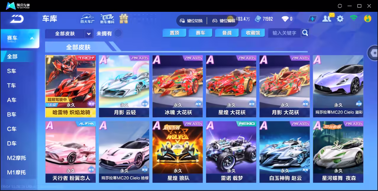 xly3976 亮点:哈雷龙骑猴子-火龙-麒麟 实名情况:可二次实名 游戏区服:苹果qq vip等级:9 t车数量: a车数量:70 永久t车:哈雷特孙悟空 t车皮肤:炽焰龙骑 联赛车:s-冰魄s-星煌 幻生套: 魔法套: 竞速宠物:火狱龙息瑞泽祥麟雀焰女王玉玺神虎 道具宠物: