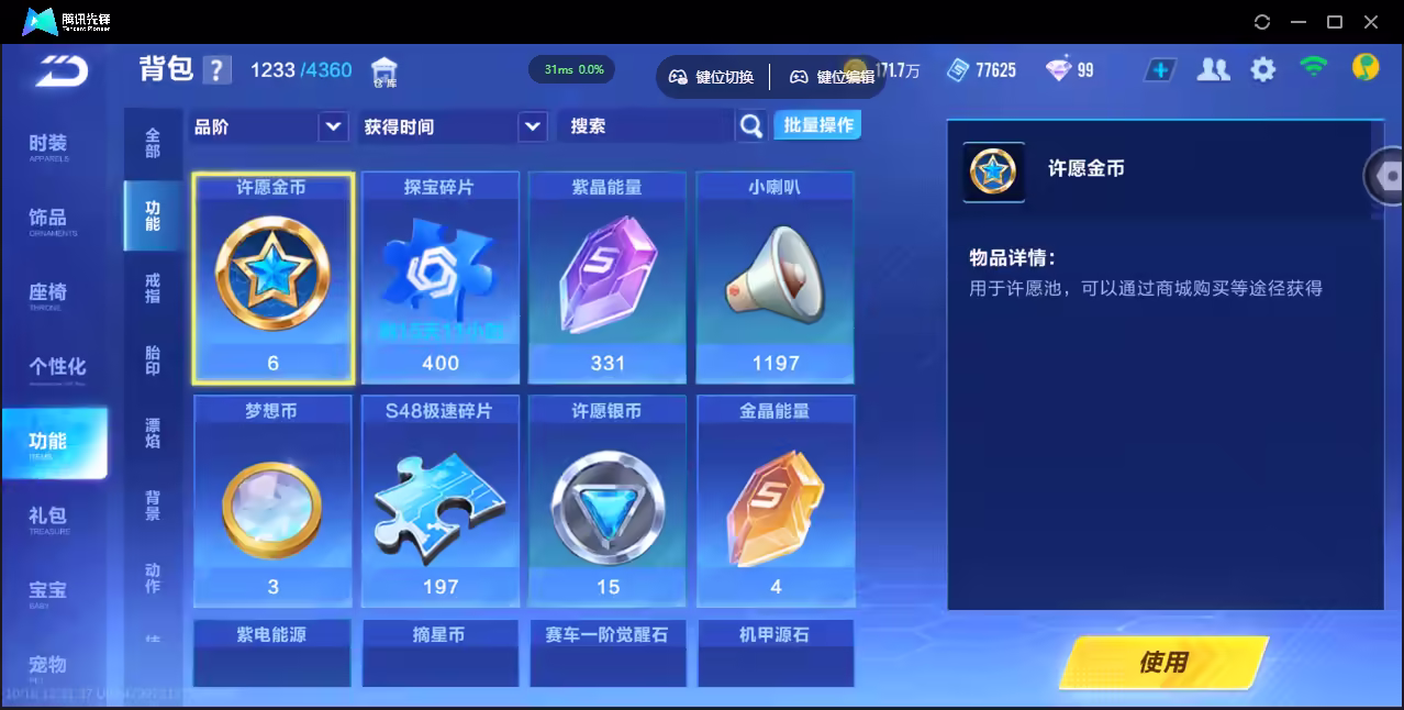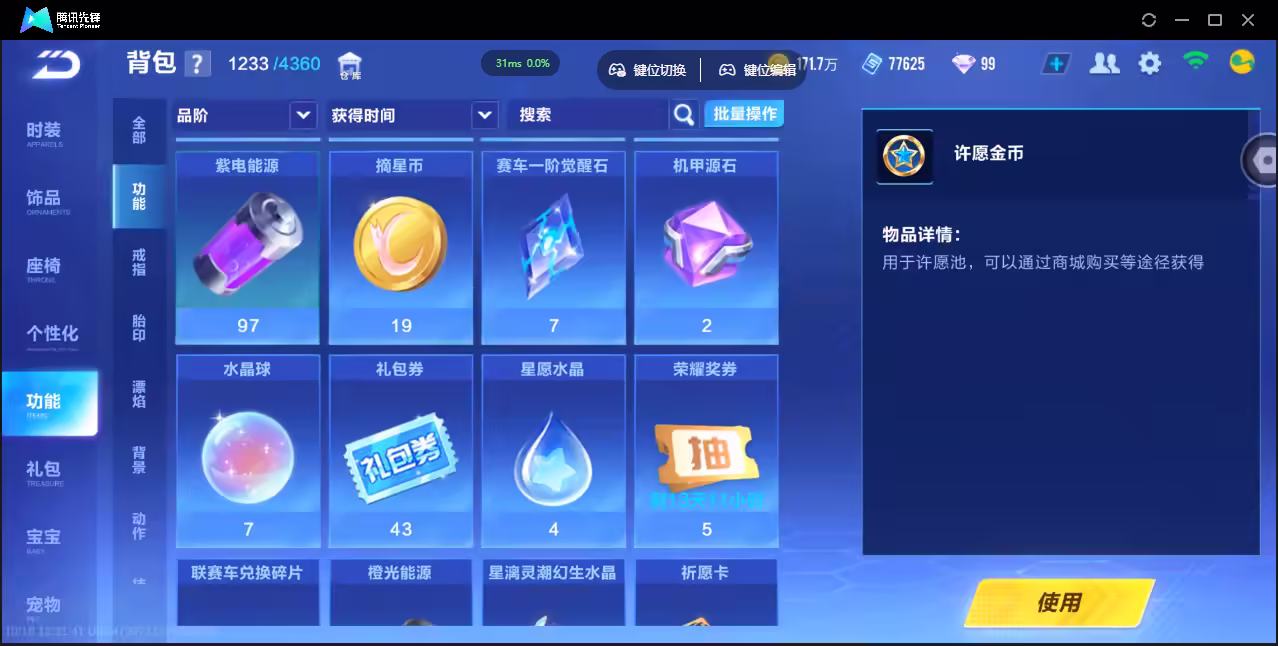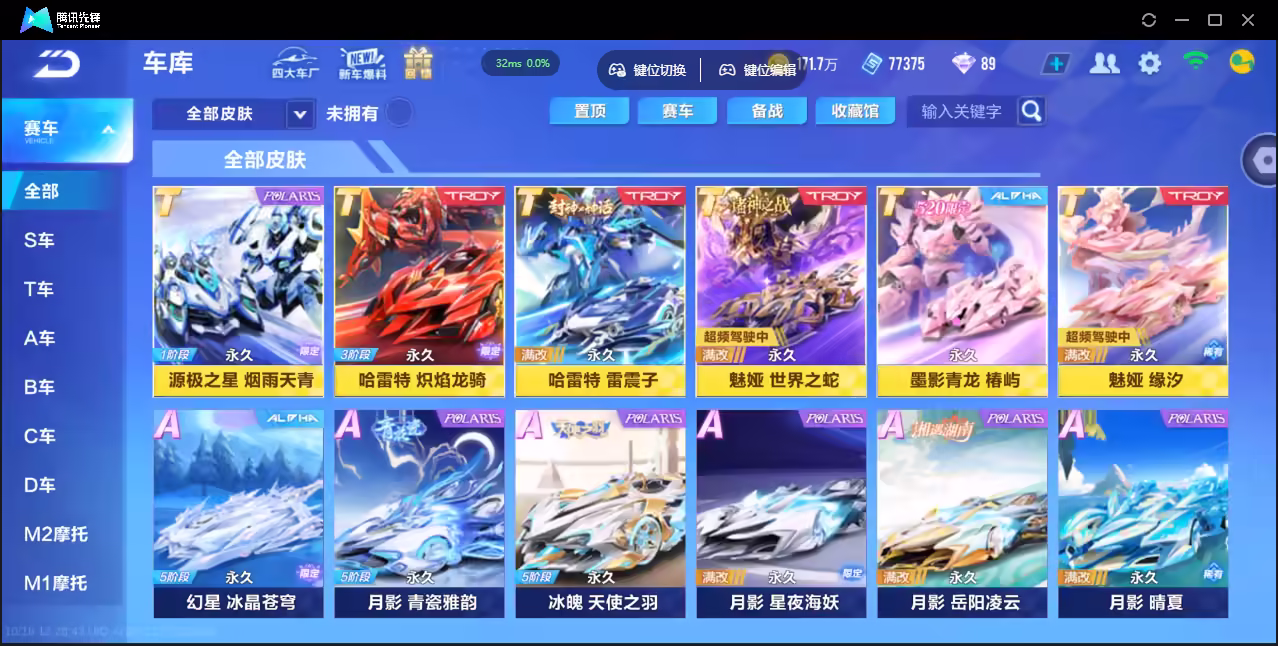 xly4394 亮点:魅娅双皮-哈雷特源级-熊猫麒麟骑宠 实名情况:可二次实名 游戏区服:安卓qq vip等级:10 t车数量: a车数量:30 永久t车:魅娅哈雷特源极之星exa t车皮肤:炽焰龙骑烟雨天青世界之蛇雷震子缘汐椿屿 联赛车:s-幻星s-冰魄s-月影s-霆光 幻生套: 魔法套:幻蝶 竞速宠物:瑞泽祥麟竹影萌熊 道具宠物: