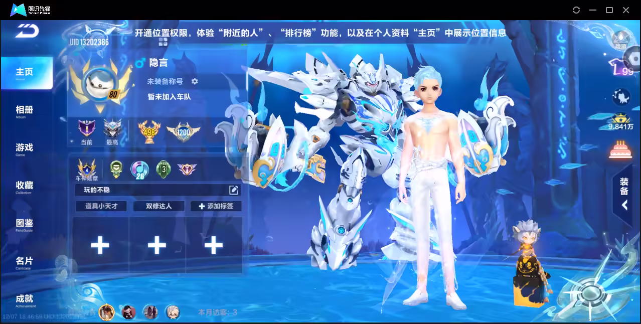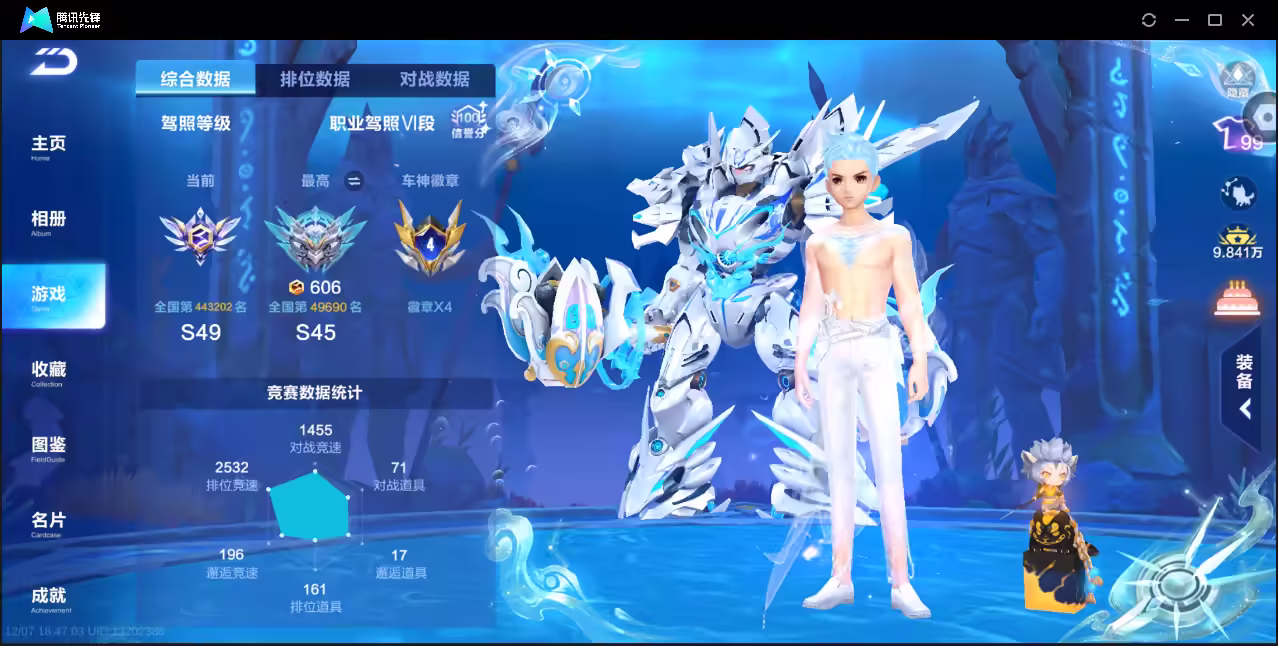 xly4967 亮点:3阶青龙3阶哈雷特 实名情况:可二次实名 游戏区服:安卓qq vip等级:9 t车数量: a车数量:50 永久t车:墨影青龙哈雷特 t车皮肤: 联赛车:s-月影s-霆光 幻生套: 魔法套:沧海梦境 竞速宠物:玉玺神虎雀焰女王 道具宠物:
