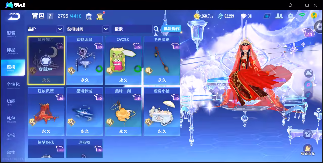 xly4995 亮点:4t/6联/双魔/10座椅/泰坦/哈雷特/孙悟空/幻冰月霆弦擎天-火狱龙息 实名情况:可二次实名 游戏区服:苹果qq vip等级:10 t车数量:4 a车数量:90 永久t车:哈雷特神威泰坦re鸭宝超人孙悟空 t车皮肤:福睦舰长炽焰龙骑 联赛车:s-幻星s-冰魄s-月影s-霆光s-弦音s-擎天雷诺 幻生套: 魔法套:十里红妆良辰美景 竞速宠物:玄火之神雀焰女王火狱龙息 道具宠物: