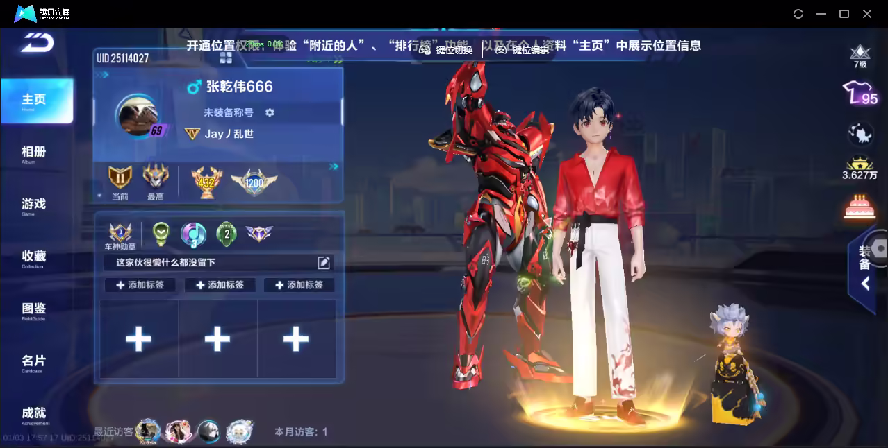 xly5360 亮点:单t哈雷特 实名情况:可二次实名 游戏区服:苹果qq vip等级:8 t车数量:1 a车数量:9 永久t车:哈雷特 t车皮肤:炽焰龙骑 联赛车: 幻生套: 魔法套: 竞速宠物:玉玺神虎 道具宠物: