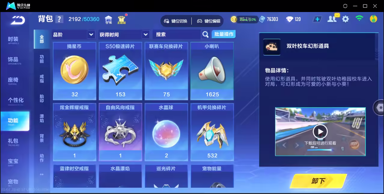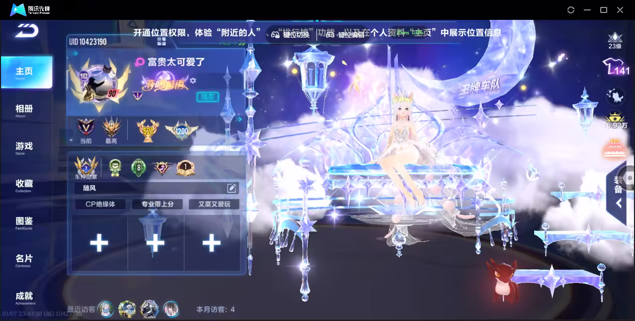 xly5438 亮点:4t哈雷特神威泰坦墨影青龙/5联赛月影溯光幻星冰魄/1幻生1魔法套 实名情况:可二次实名 游戏区服:苹果qq vip等级:10 t车数量:4 a车数量:85 永久t车:哈雷特墨影青龙神威泰坦re鸭宝超人 t车皮肤:敖丙炽焰龙骑福睦舰长墨影青龙 联赛车:s-冰魄s-月影s-幻星s-溯光s-弦音 幻生套:奇喵秘语 魔法套:沧海梦境 竞速宠物:火狱龙息玉玺神虎雀焰女王源梦之星 道具宠物:龙王战甲