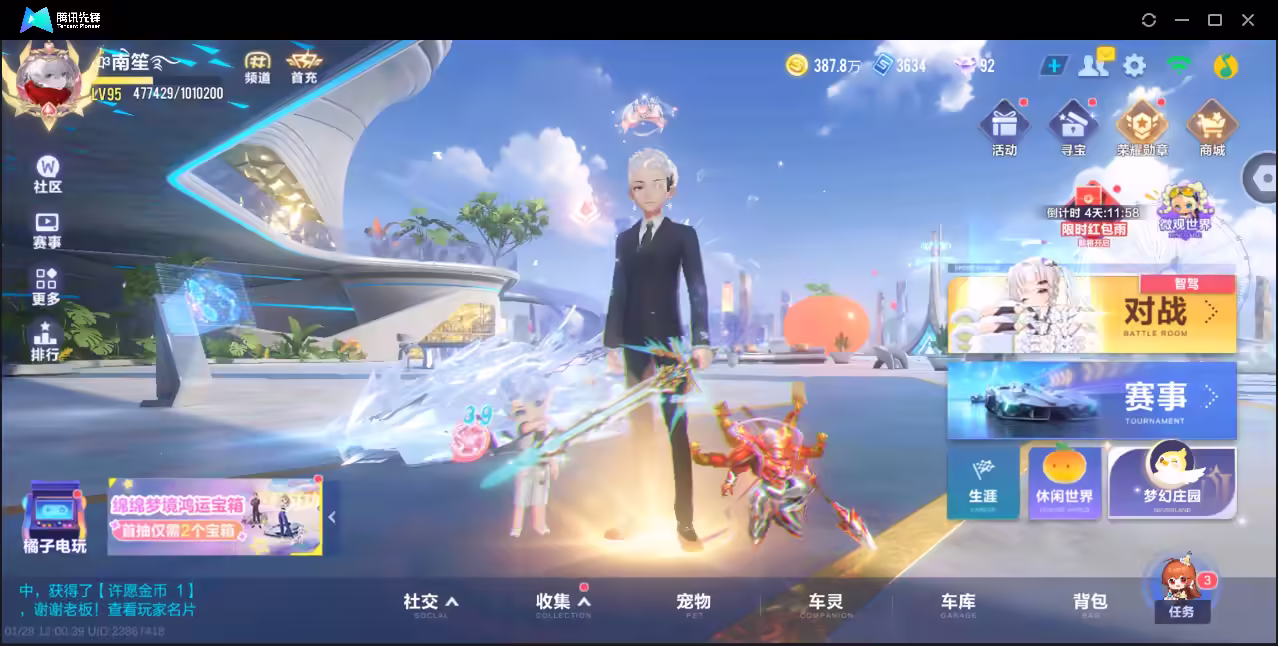 xly5764 亮点:最强四联赛/幻星/月影/弦音/霆光带大喷/源梦之星-红绫皮 实名情况:可二次实名 游戏区服:安卓qq vip等级:8 t车数量:1 a车数量:88 永久t车:鸭宝超人 t车皮肤: 联赛车:s-幻星s-月影s-霆光s-弦音s-擎天雷诺 幻生套: 魔法套: 竞速宠物:源梦之星 道具宠物:
