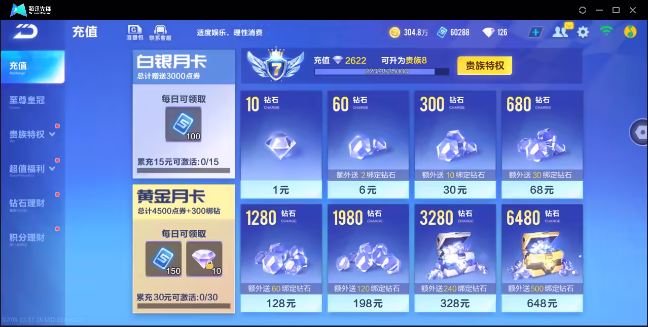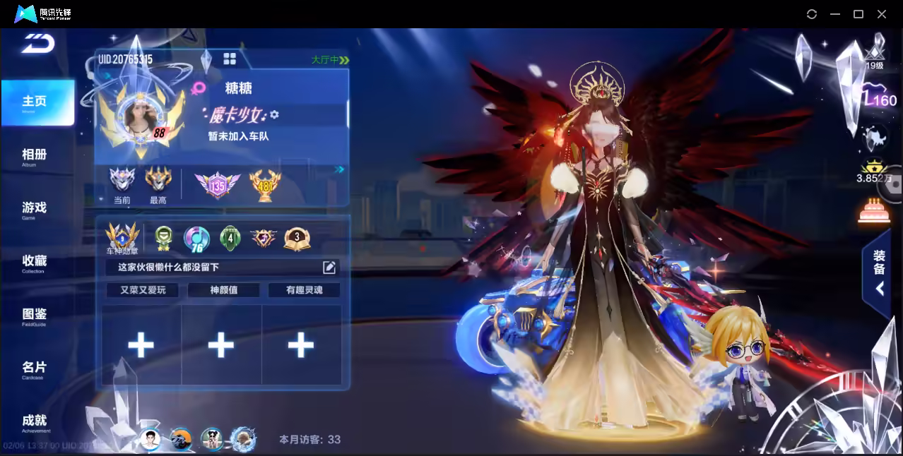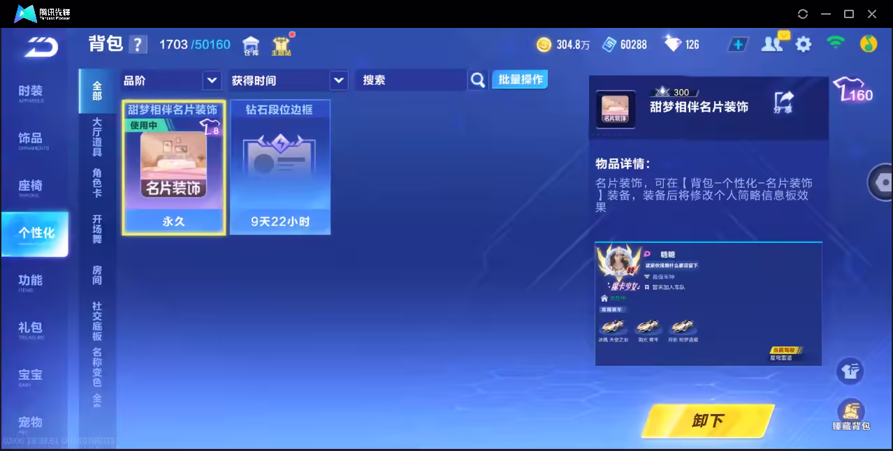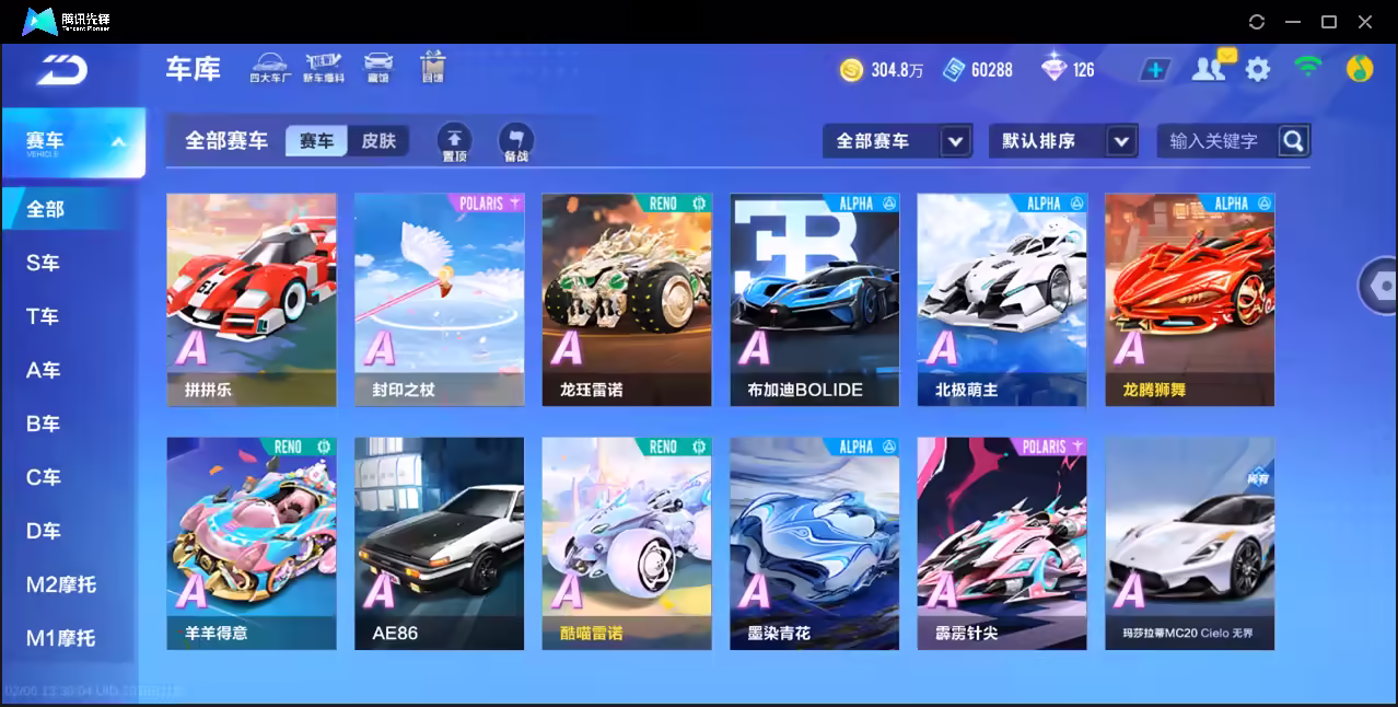 xly5902 亮点:三强力联赛/冰魄/月影/溯光/雀焰女王带皮肤 实名情况:可二次实名 游戏区服:苹果qq vip等级:7 t车数量: a车数量:50 永久t车: t车皮肤: 联赛车:s-冰魄s-月影s-溯光 幻生套: 魔法套:虎跃乾坤 竞速宠物:玉玺神虎雀焰女王 道具宠物: