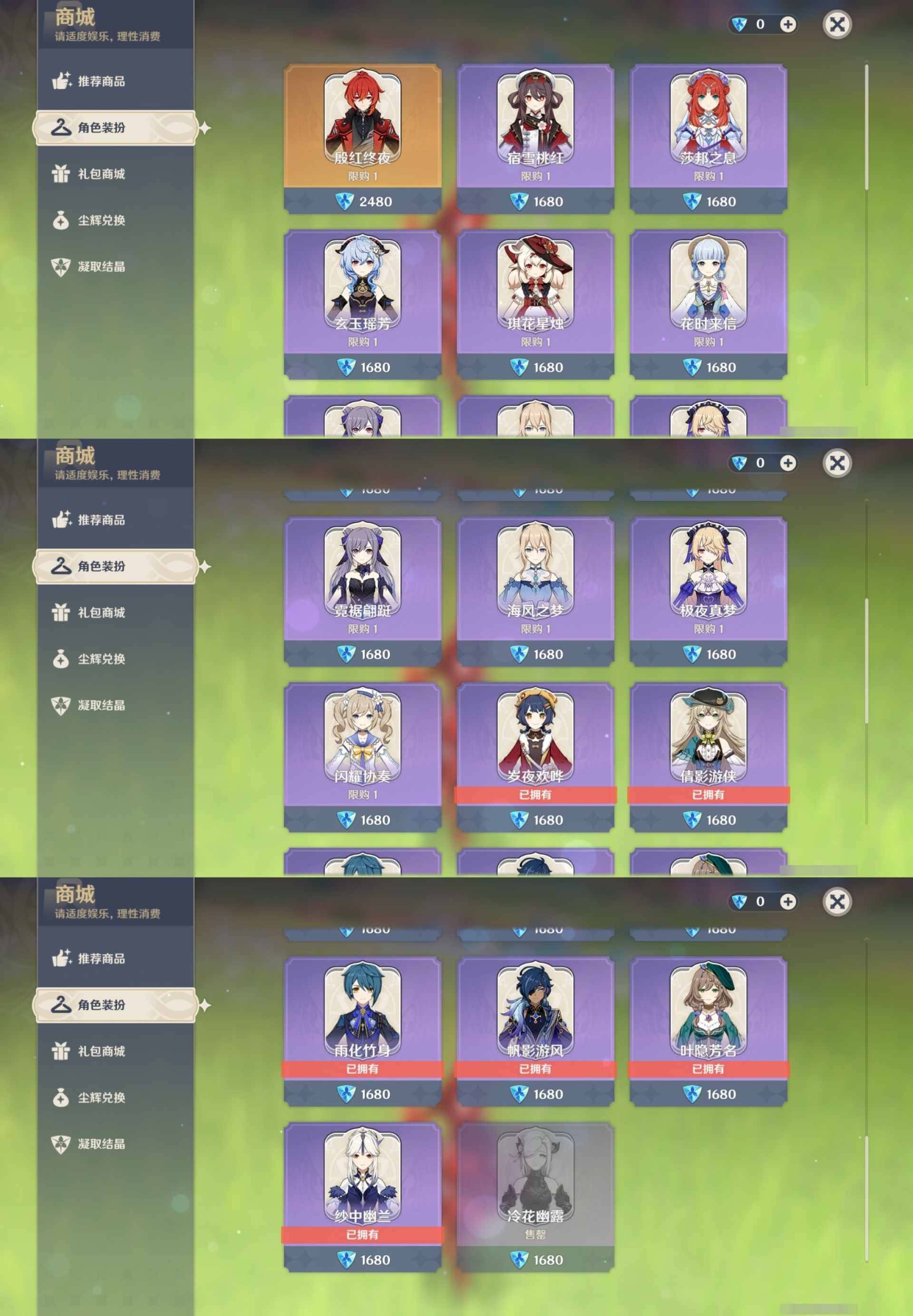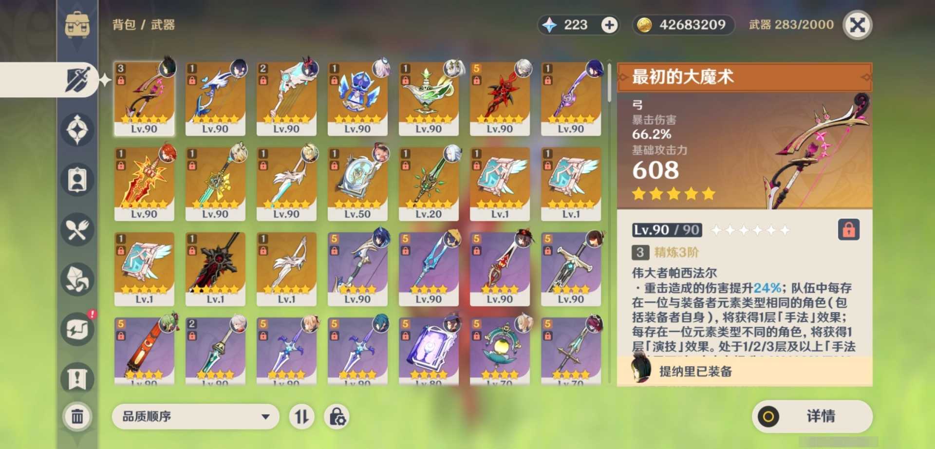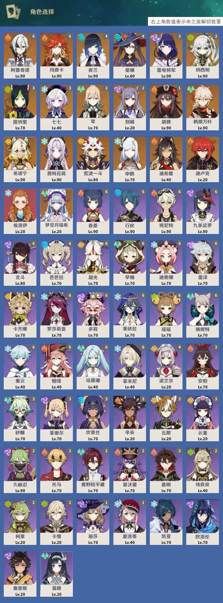 [9866401]81黄 风:0命枫原万叶,2命琴,0命梦见月瑞希 火:6命玛薇卡,6命阿蕾奇诺,1命胡桃,0命迪希雅,0命迪卢克 水:4命夜兰,4命莫娜 冰:0命茜特菈莉,0命申鹤,3命七七,0命埃洛伊 岩:0命希诺宁,0命荒泷一斗 雷:3命雷电将军,2命刻晴 草:3命纳西妲,3命提纳里 弓:精3最初的大魔术,精1若水,精2天空之翼 法器:精1祭星者之望,精1千夜浮梦,精1四风原典,精1天空之卷,精1天空之卷,精1天空之卷 单手剑:精1岩峰巡歌,精1风鹰剑,精1风鹰剑 双手剑:精1焚曜千阳,精1狼的末路 长柄武器:精5赤月之形,精1薙草之稻光,精1和璞鸢 【角色皮肤】 五星角色:申鹤-冷花幽露 四星角色:香菱-岁夜欢哗,绮良良-倩影游侠,行秋-雨化竹身,凯亚-帆影游风,丽莎-叶隐芳名,凝光-纱中幽兰