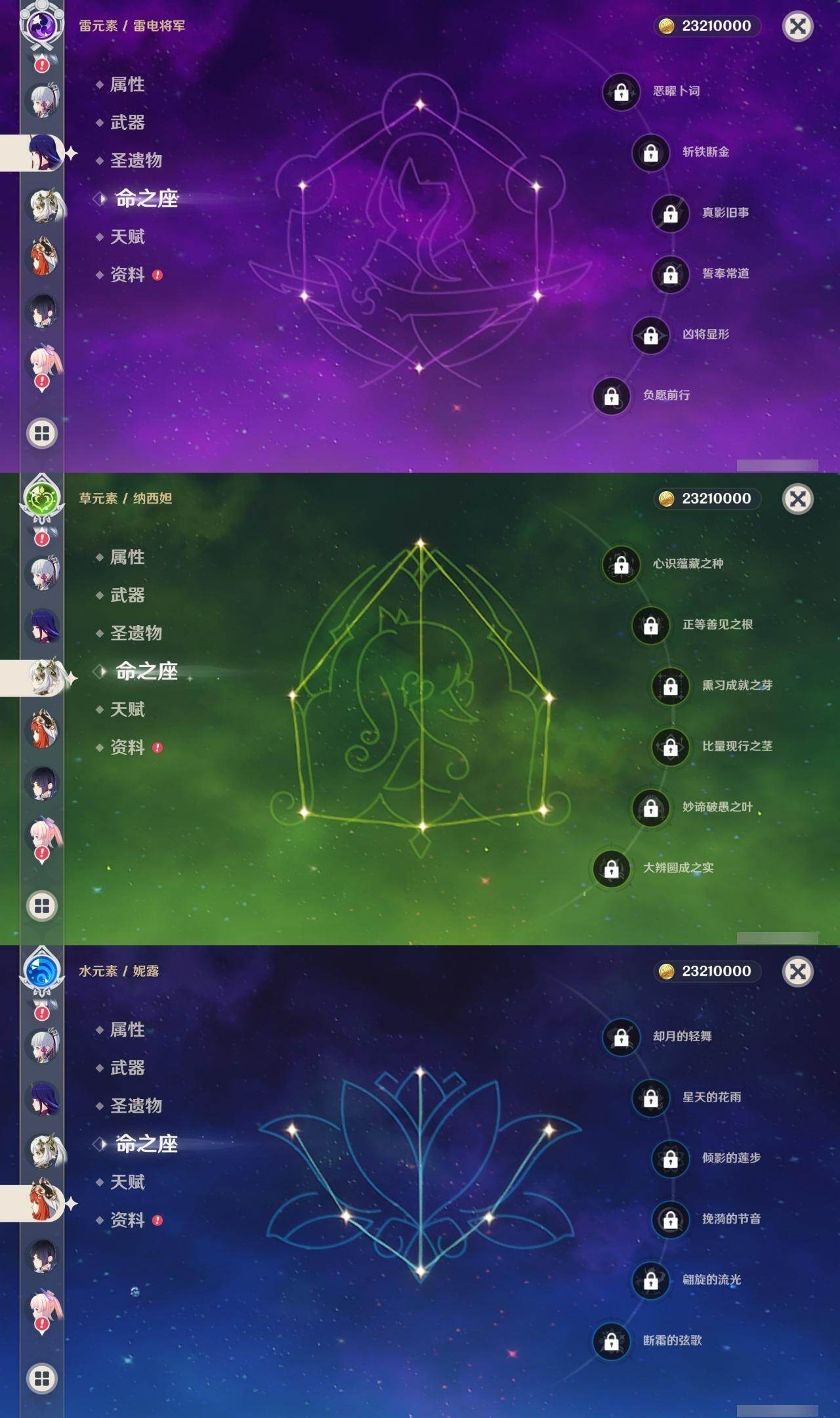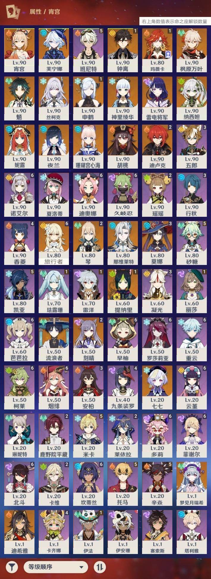 [11076086]59级/51黄/女主/25个五星角色 0命芙宁娜0命那维莱特0命迪希雅0命流浪者0命纳西妲0命妮露1命提纳里0命夜兰1命申鹤0命雷电将军0命枫原万叶0命神里绫华1命钟离0命胡桃0命魈0命宵宫0命珊瑚宫心海2命刻晴0命七七2命琴3命莫娜2命迪卢克1命玛薇卡0命梦见月瑞希0命丝柯克精1千夜浮梦精1圣显之钥精1赤角石溃杵精2飞雷之弦振精2雾切之回光精2和璞鸢精2天空之翼精1天空之卷精1苍耀