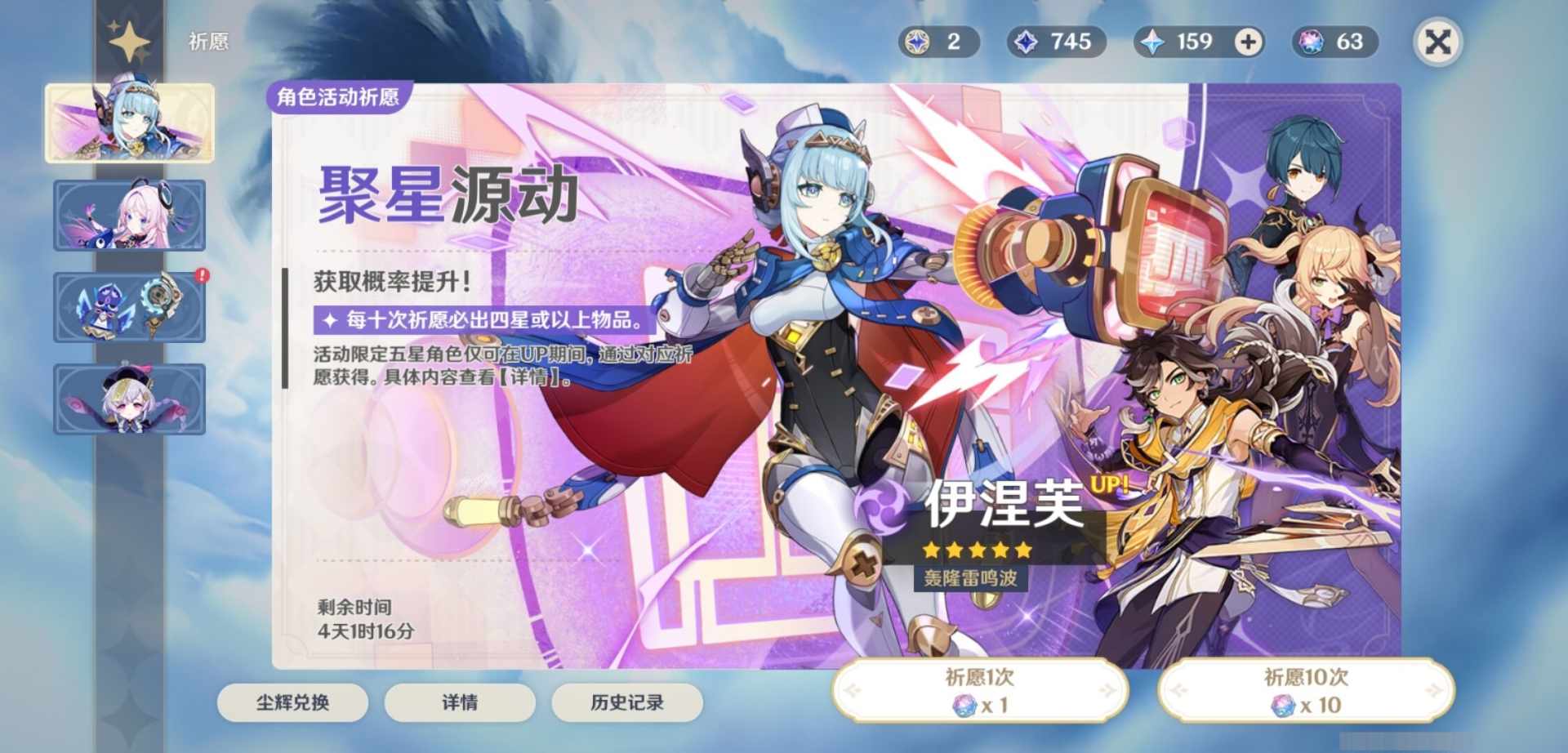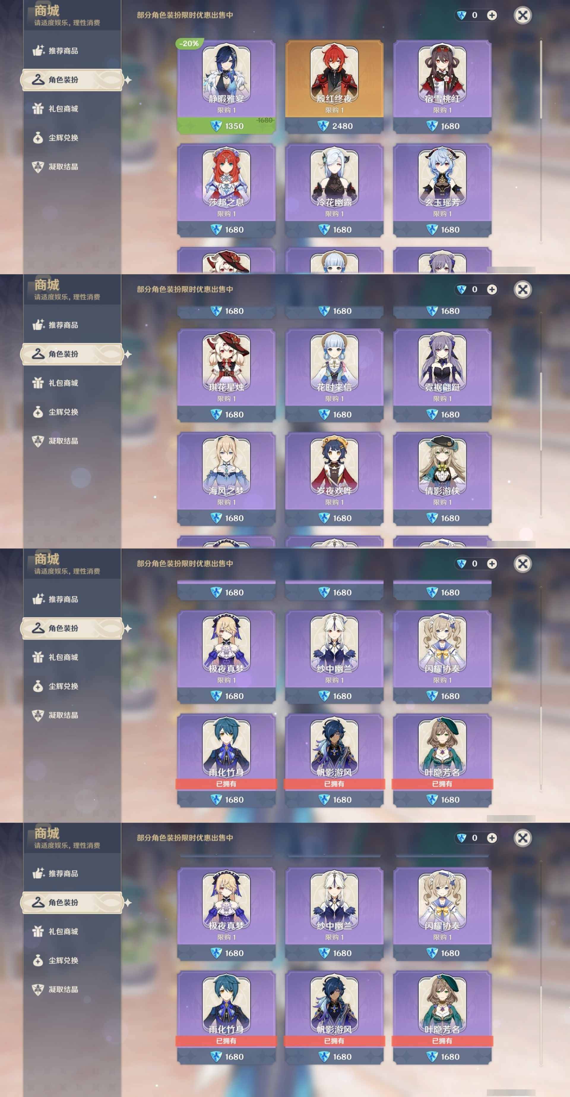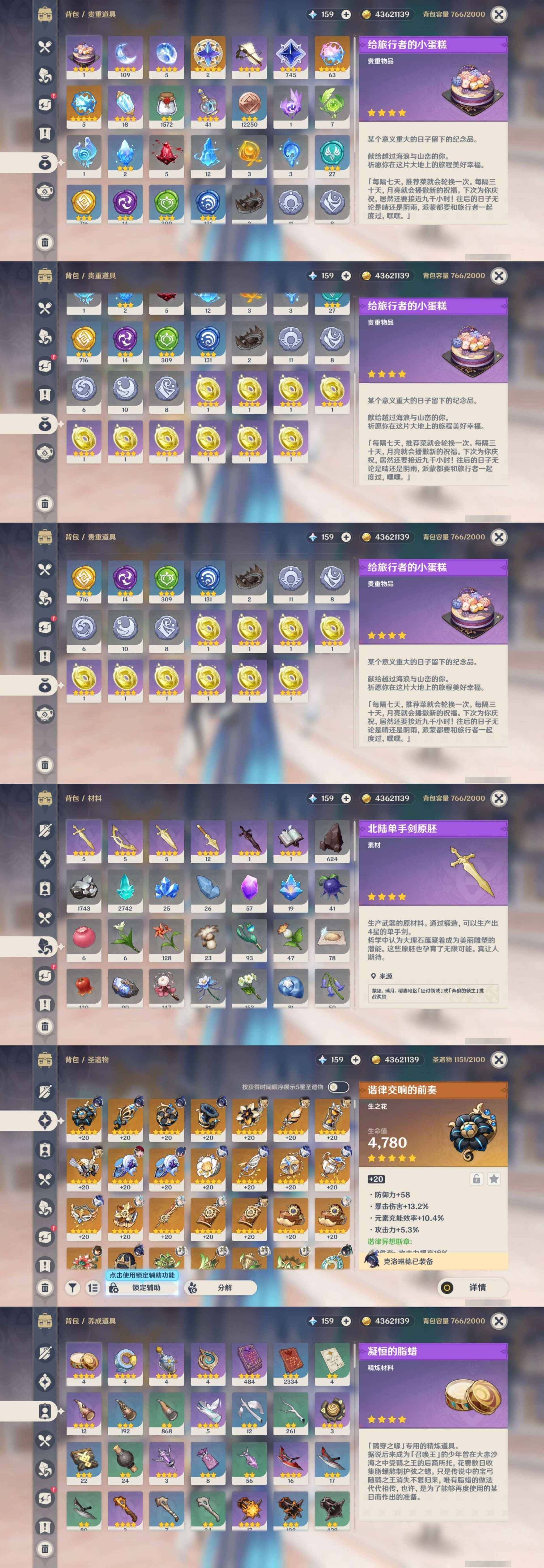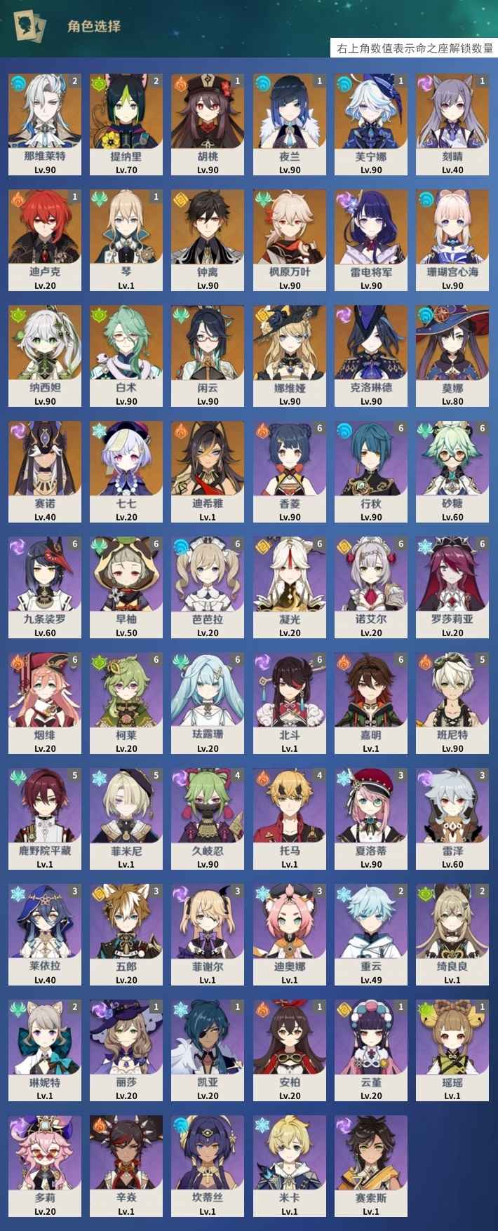 [10751074]37黄 风:0命枫原万叶,0命闲云,1命琴 火:1命胡桃,1命迪卢克,0命迪希雅 水:2命那维莱特,1命芙宁娜,1命夜兰,0命珊瑚宫心海,0命莫娜 冰:0命七七 岩:0命娜维娅,0命钟离 雷:0命克洛琳德,0命雷电将军,0命赛诺,1命刻晴 草:0命白术,0命纳西妲,2命提纳里 弓:精1若水 单手剑:精1天空之刃 双手剑:精1天空之傲 长柄武器:精1护摩之杖,精1护摩之杖,精1和璞鸢 【角色皮肤】 四星角色:行秋-雨化竹身,凯亚-帆影游风,丽莎-叶隐芳名