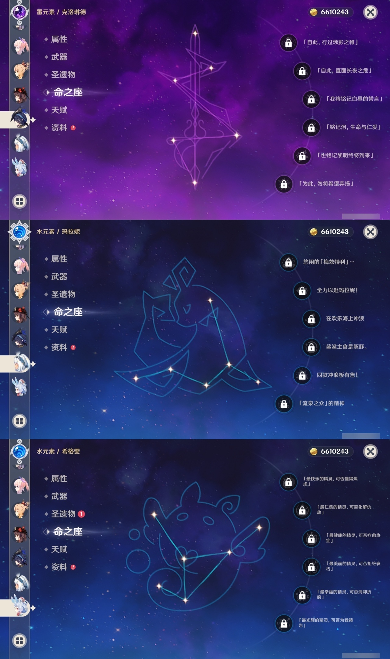 【原神】【lyys4684】冒险等级:59,男主,五星数量:33,五星角色:雷电将军 2命七七 2命胡桃 1命刻晴 1命莫娜 1命琴 1命提纳里 1命玛拉妮珊瑚宫心海神里绫华宵宫钟离申鹤莱欧斯利千织阿蕾奇诺纳西妲艾尔海森迪卢克枫原万叶甘雨克洛琳德希格雯可莉__五星武器:和璞鸢 2精裁叶萃光飞雷之弦振风鹰剑护摩之杖狼的末路天空之脊雾切之回光薙草之稻光__四星角色:九条裟罗 6命香菱 6命凝光 6命迪奥娜 6命砂糖 6命绮良良 6命米卡 6命托马 6命罗莎莉亚 6命北斗 6命莱依拉 5命芭芭拉 5命云堇 5命早柚 5命重云 5命诺艾尔 5命珐露珊 4命瑶瑶 4命坎蒂丝 4命多莉 4命菲谢尔 4命嘉明 4命班尼特 3命卡维 3命五郎 3命烟绯 3命辛焱 3命琳妮特 3命卡齐娜 2命久岐忍 2命鹿野院平藏 2命柯莱 2命菲米尼 2命夏洛蒂 2命行秋 1命雷泽 1命夏沃蕾 1命蓝砚赛索斯,【邮箱未绑定】