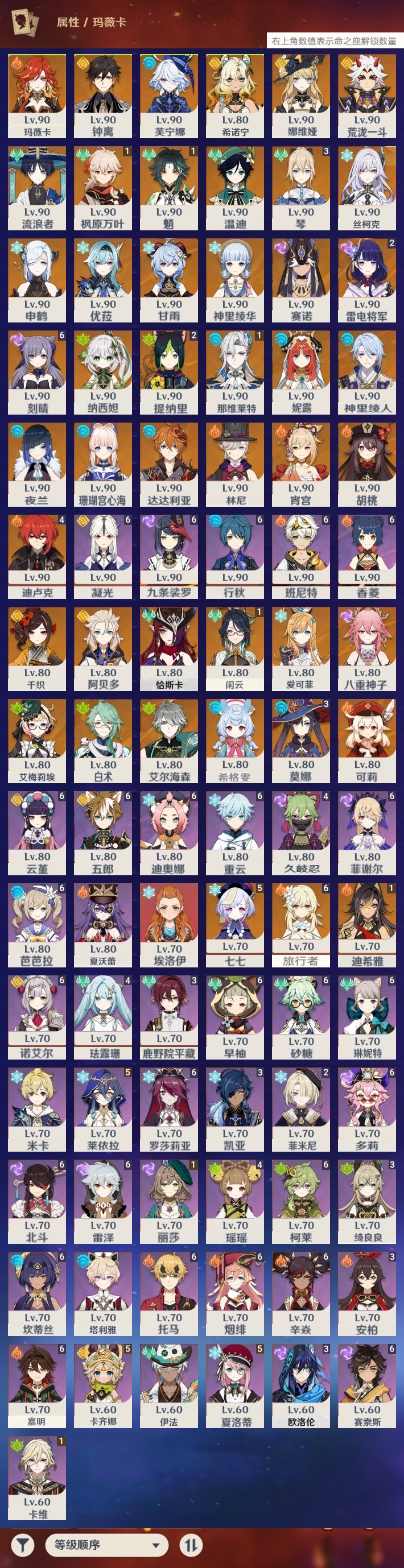 [11470426]0admhs不送邮/死邮总黄数94角色数量45武器数量16冒险等级60女主 【满命5星角色1个】满命刻晴 【五命5星角色1个】五命七七 【四命5星角色1个】四命迪卢克 【三命5星角色2个】三命琴三命莫娜 【二命5星角色2个】二命雷电将军二命提纳里 【一命5星角色5个】一命闲云一命那维莱特一命枫原万叶一命魈一命迪希雅 【5星角色33个】玛薇卡恰斯卡希诺宁艾梅莉埃希格雯千织娜维娅芙宁娜林尼白术艾尔海森流浪者纳西妲妮露赛诺夜兰神里绫人八重神子申鹤荒泷一斗珊瑚宫心海宵宫神里绫华优菈胡桃甘雨阿贝多钟离达达利亚可莉温迪丝柯克爱可菲 【2精武器】2精万世流涌大典 【1精武器14个】焚曜千阳柔灯挽歌裁断薙草之稻光飞雷之弦振护摩之杖和璞鸢阿莫斯之弓风鹰剑天空之卷天空之脊天空之翼四风原典