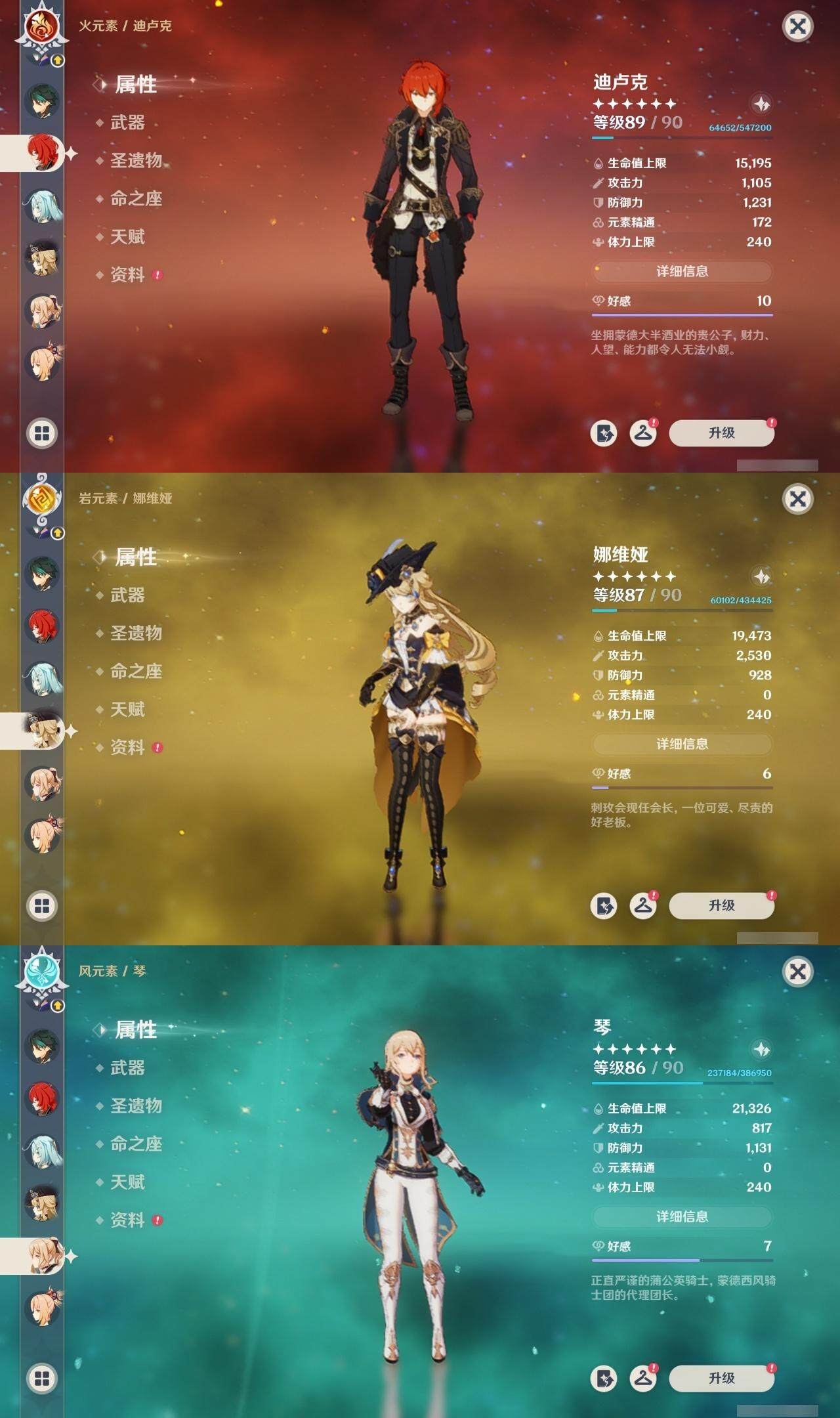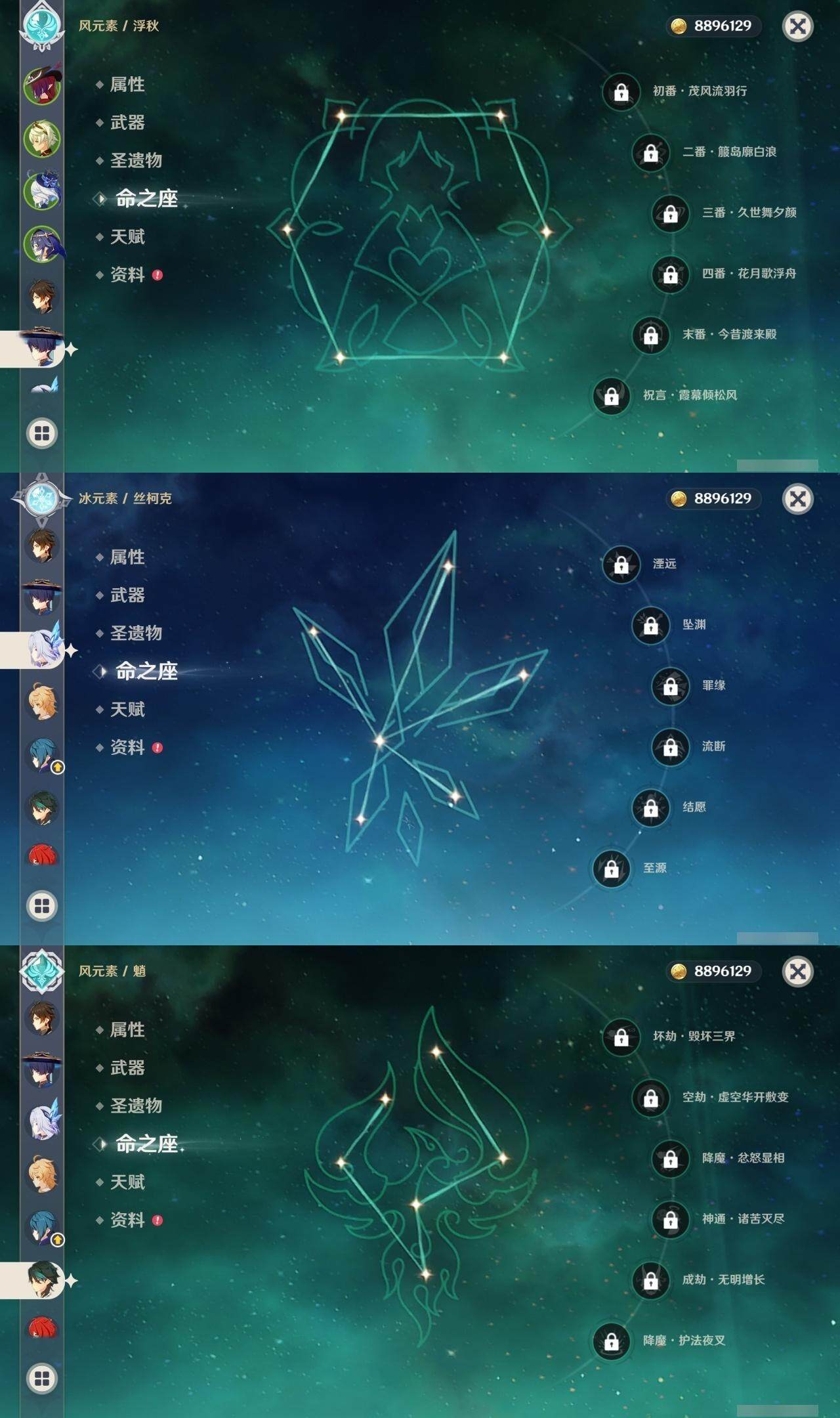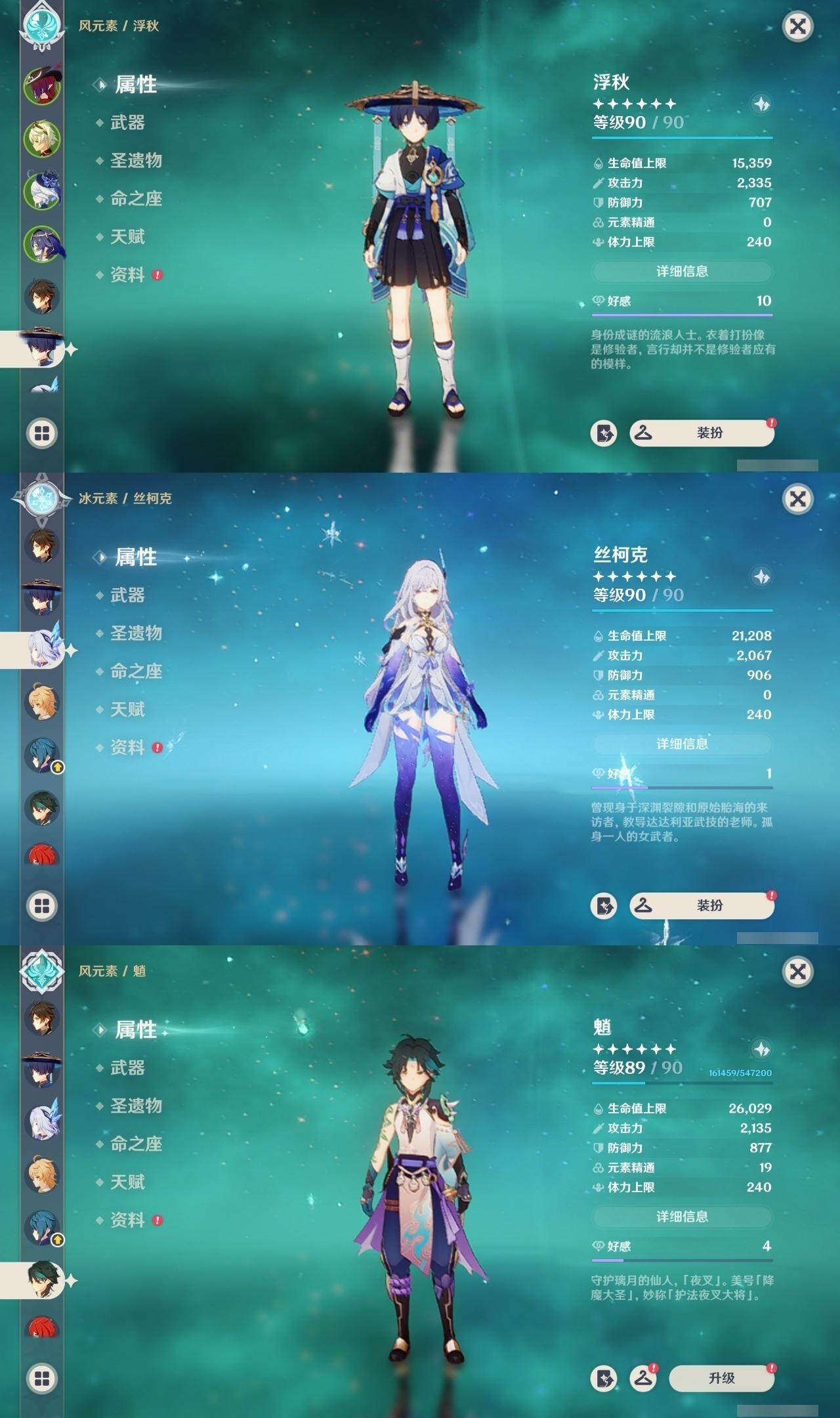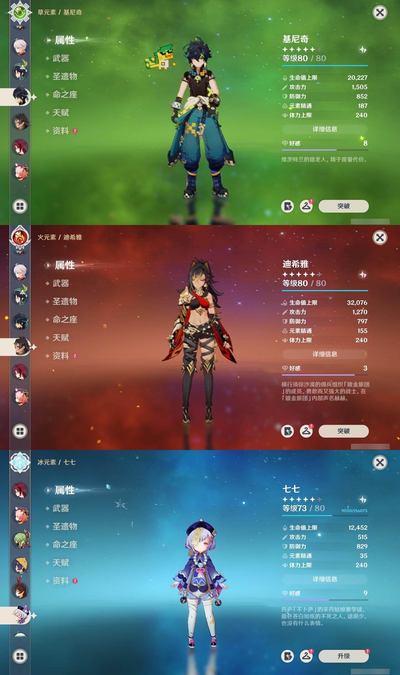 59级/37黄/男主/20个五星角色 0命娜维娅0命芙宁娜0命白术2命迪希雅0命流浪者1命提纳里0命枫原万叶0命钟离0命魈0命宵宫0命温迪0命达达利亚1命刻晴0命七七3命琴1命莫娜1命迪卢克0命基尼奇0命恰斯卡0命丝柯克精1金流监督精1圣显之钥精1神乐之真意精1松籁响起之时精1天空之脊精1天空之刃精1天空之傲精1支离轮光