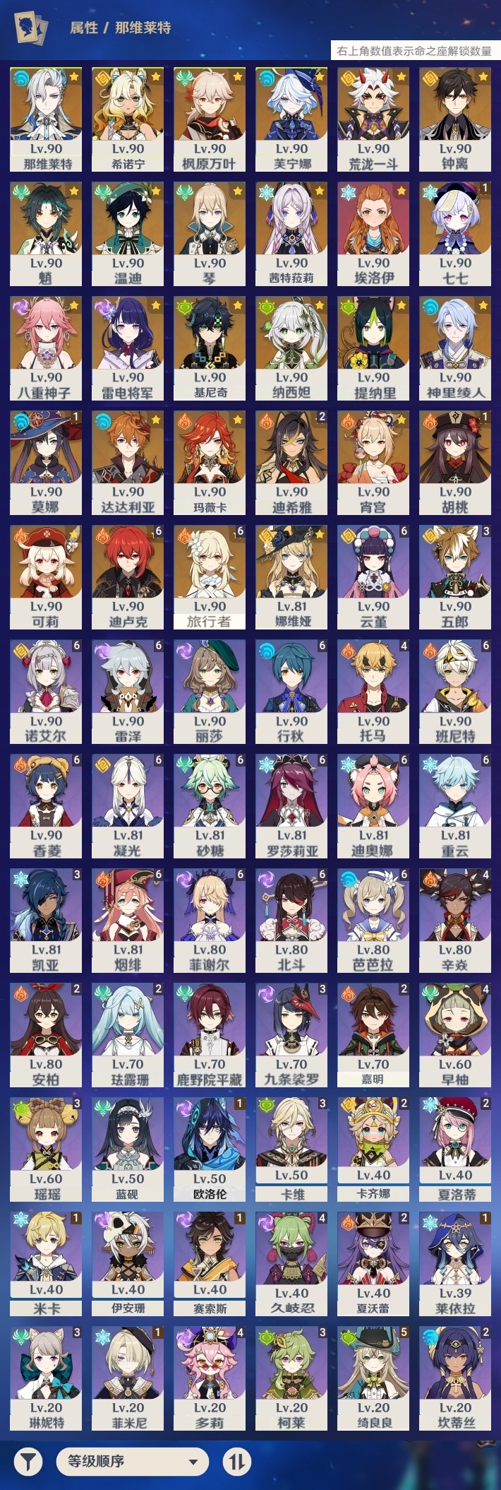 【原神】【lyys5438】冒险等级:60,五星数量:41,五星角色:迪卢克 6命迪希雅 2命胡桃 1命莫娜 1命七七 1命琴基尼奇希诺宁温迪玛薇卡茜特菈莉宵宫钟离荒泷一斗达达利亚八重神子神里绫人那维莱特芙宁娜娜维娅提纳里纳西妲枫原万叶魈可莉雷电将军__五星武器:天空之脊 2精山王长牙苇海信标香韵奏者和璞鸢四风原典天空之傲天空之卷雾切之回光薙草之稻光赤角石溃杵波乱月白经津若水千夜浮梦__四星角色:班尼特 6命行秋 6命香菱 6命凝光 6命迪奥娜 6命砂糖 6命芭芭拉 6命云堇 6命烟绯 6命重云 6命诺艾尔 6命罗莎莉亚 6命雷泽 6命菲谢尔 6命北斗 6命绮良良 5命久岐忍 4命多莉 4命早柚 4命托马 4命辛焱 4命九条裟罗 3命瑶瑶 3命柯莱 3命卡维 3命五郎 3命琳妮特 3命卡齐娜 2命珐露珊 2命坎蒂丝 2命夏洛蒂 2命夏沃蕾 2命嘉明 2命莱依拉 1命米卡 1命欧洛伦 1命菲米尼 1命赛索斯 1命埃洛伊鹿野院平藏蓝砚伊安珊