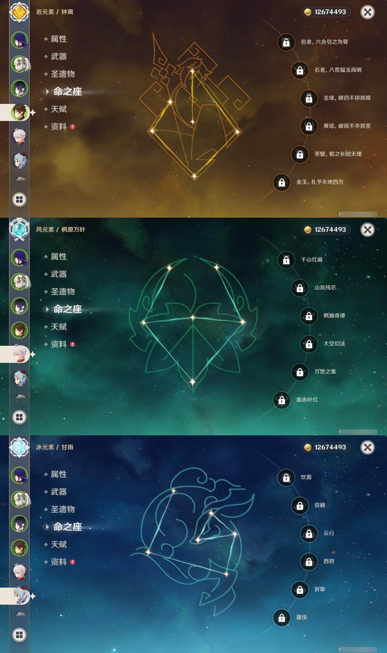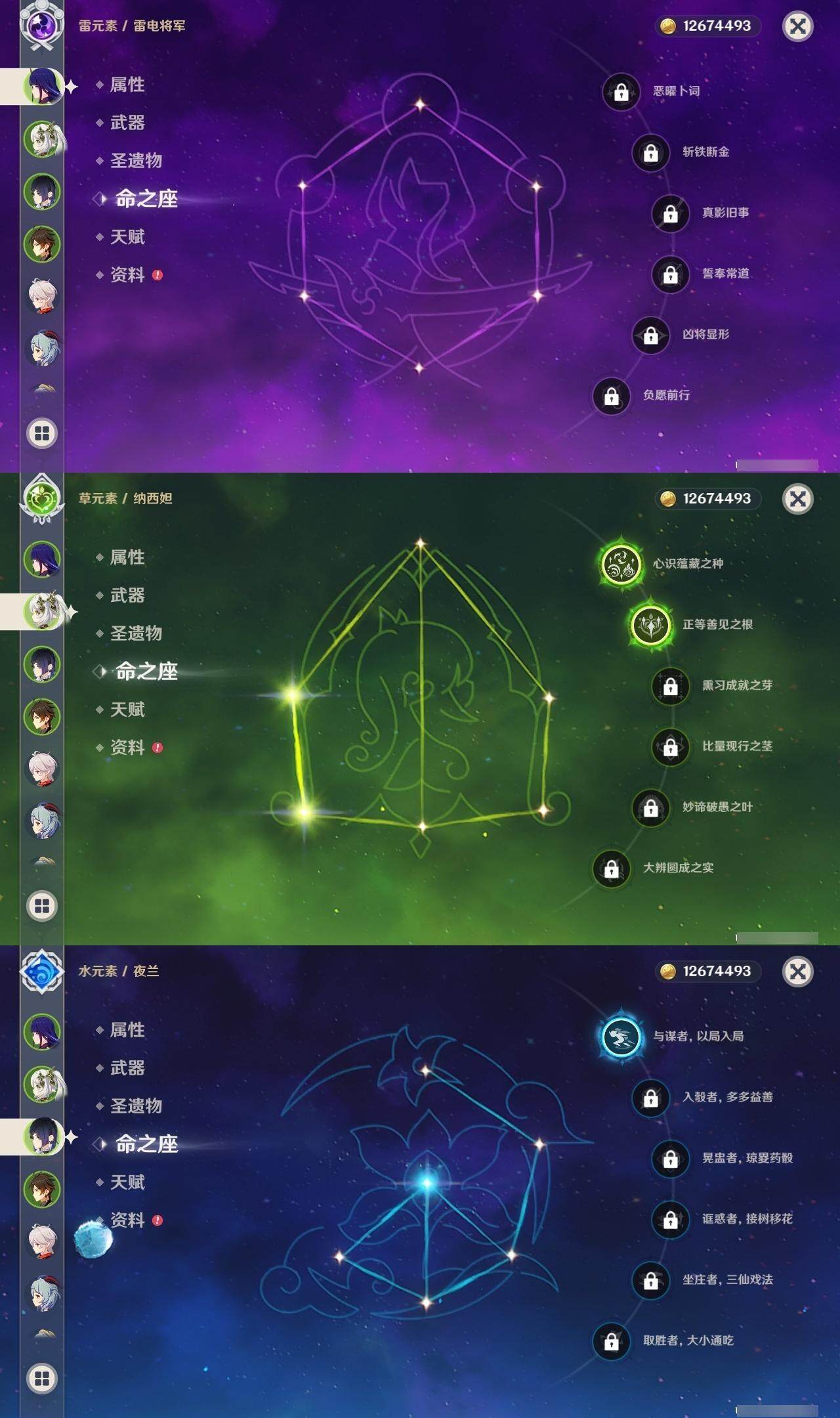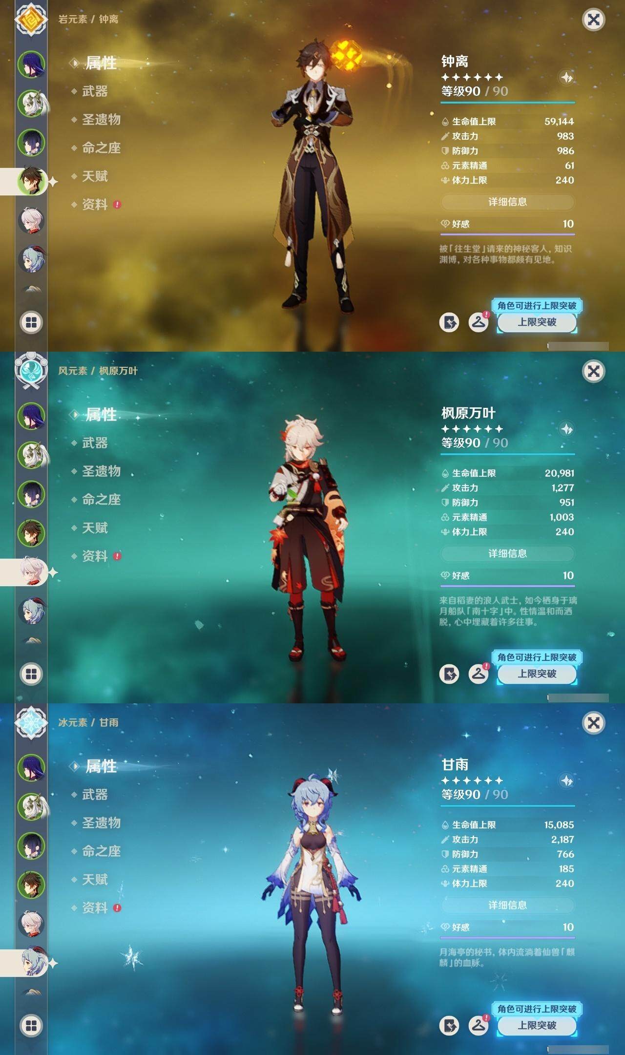 59级/33黄/女主/15个五星角色/8个五星武器 2命纳西妲0命提纳里1命夜兰0命雷电将军0命枫原万叶0命神里绫华0命钟离1命胡桃0命甘雨0命宵宫0命可莉0命刻晴0命七七1命琴4命莫娜精1若水精1息灾精1雾切之回光精1护摩之杖精2天空之刃精1风鹰剑精1狼的末路精1天空之傲