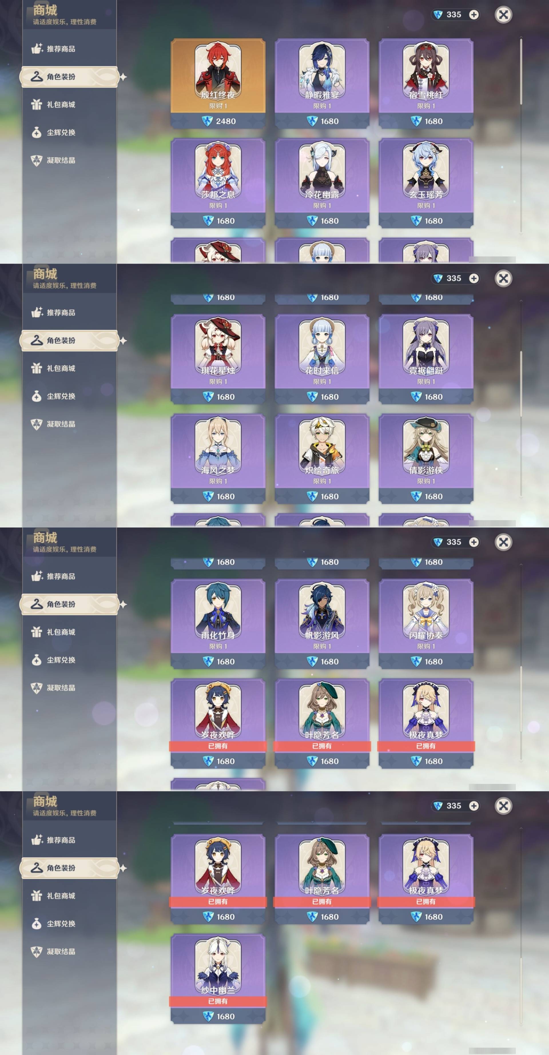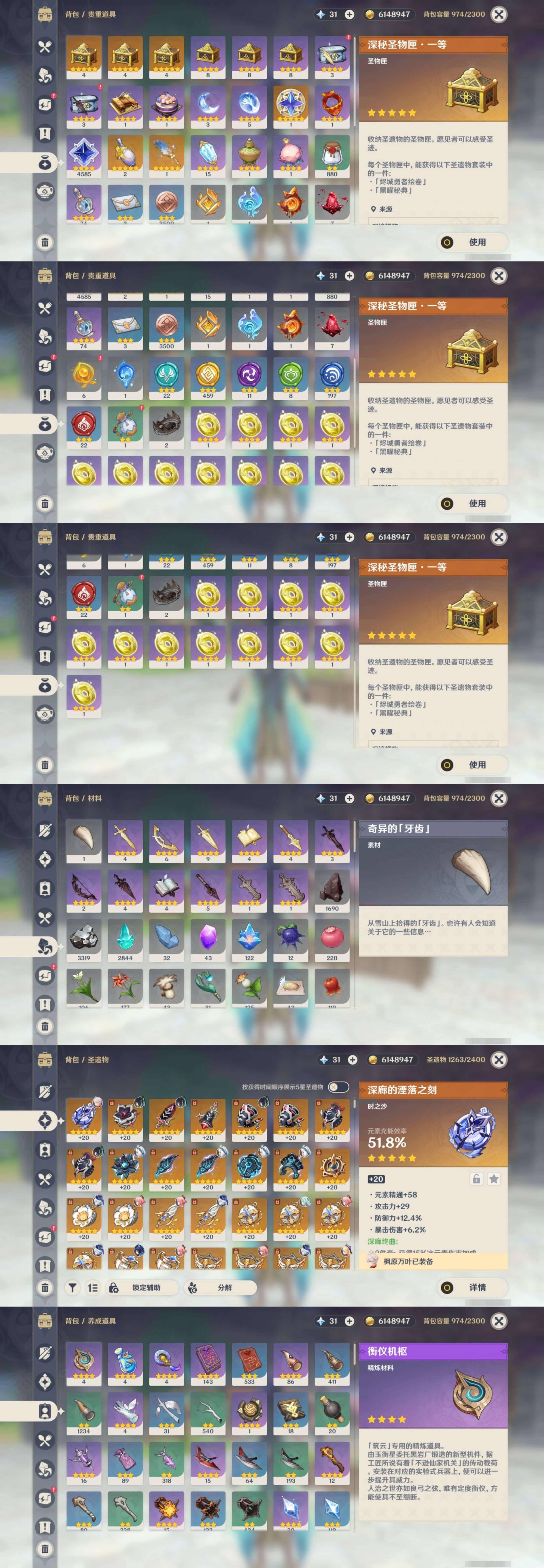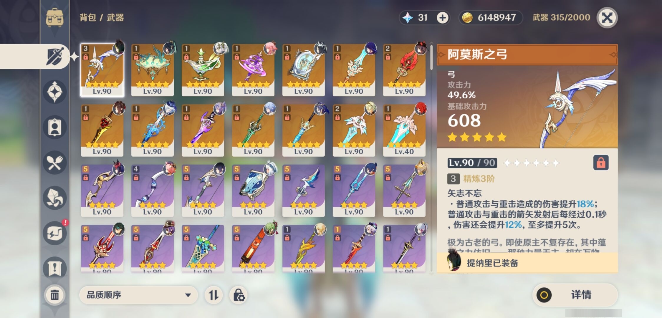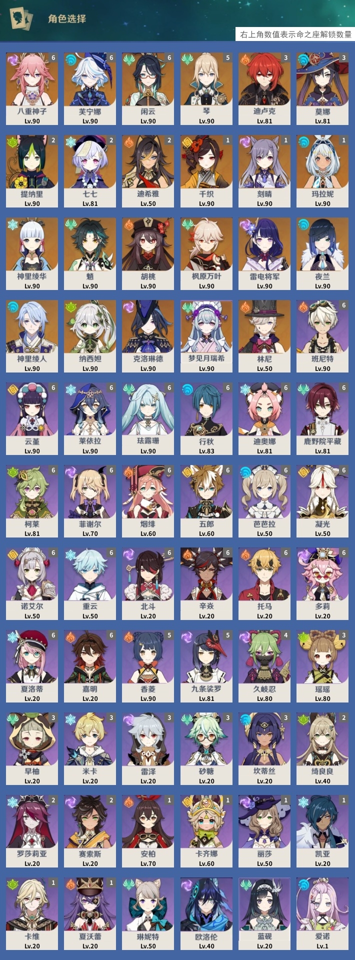 [12581173]79黄 风:6命闲云,0命枫原万叶,0命梦见月瑞希,0命魈,5命琴 火:0命林尼,0命胡桃,3命迪卢克,2命迪希雅 水:6命芙宁娜,1命玛拉妮,0命神里绫人,0命夜兰,3命莫娜 冰:0命神里绫华,2命七七 岩:1命千织 雷:0命克洛琳德,6命八重神子,0命雷电将军,1命刻晴 草:0命纳西妲,2命提纳里 弓:精3阿莫斯之弓 法器:精1鹤鸣余音,精1千夜浮梦,精1神乐之真意,精1四风原典 单手剑:精1有乐御簾切,精1静水流涌之辉,精1雾切之回光,精1磐岩结绿,精1苍古自由之誓,精2天空之刃 双手剑:精1天空之傲 长柄武器:精1天空之脊,精2护摩之杖 【角色皮肤】 四星角色:香菱-岁夜欢哗,丽莎-叶隐芳名,菲谢尔-极夜真梦,凝光-纱中幽兰