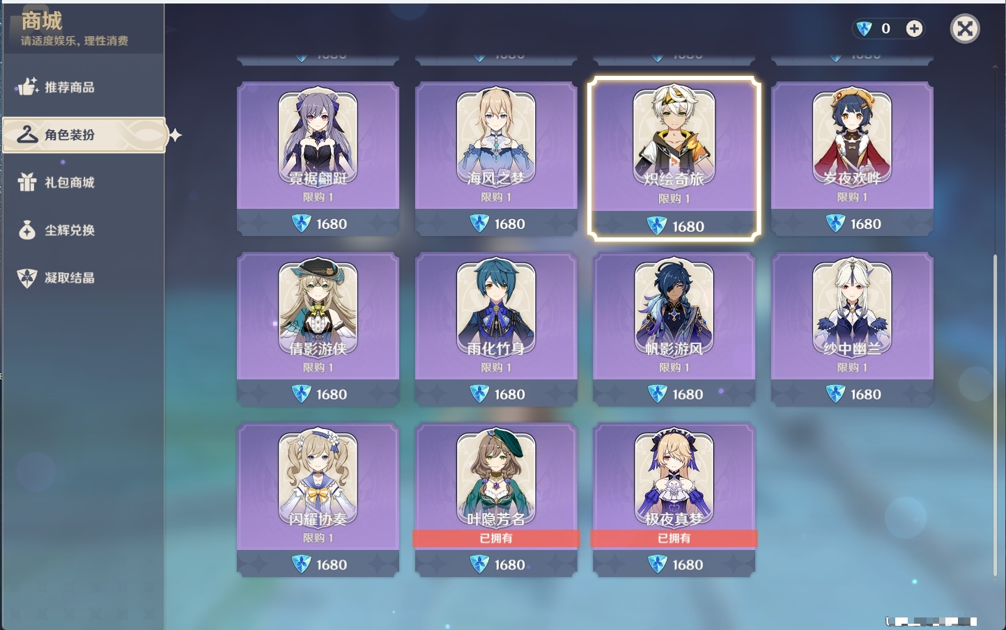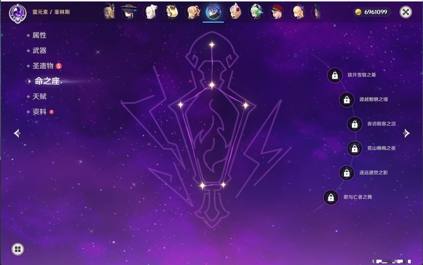 [12586951]74黄 风:2命枫原万叶,0命流浪者,3命琴,0命梦见月瑞希 火:1命迪希雅,0命迪卢克 水:6命芙宁娜,6命神里绫人,0命夜兰,1命莫娜 冰:0命丝柯克,2命七七 岩:0命希诺宁,0命娜维娅,6命荒泷一斗,2命钟离 雷:1命刻晴,0命菲林斯 草:0命基尼奇,0命纳西妲,3命提纳里 弓:精1飞雷之弦振,精1若水,精1阿莫斯之弓,精1天空之翼 法器:精1尘世之锁 单手剑:精2静水流涌之辉,精1波乱月白经津,精3苍古自由之誓,精1风鹰剑,精1天空之刃 双手剑:精1裁断,精1赤角石溃杵,精2狼的末路,精1天空之傲 长柄武器:精2护摩之杖 【角色皮肤】 四星角色:丽莎-叶隐芳名,菲谢尔-极夜真梦