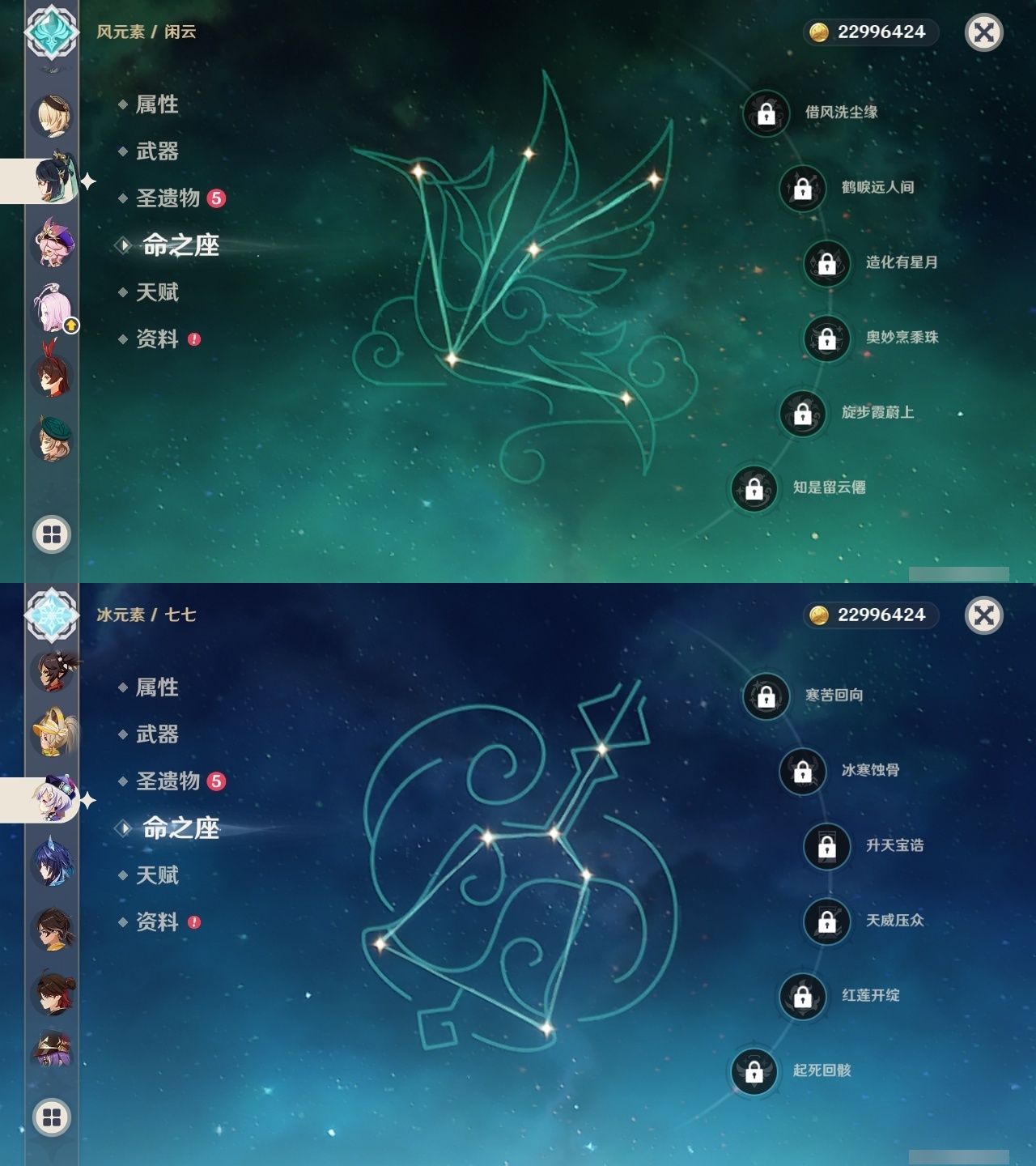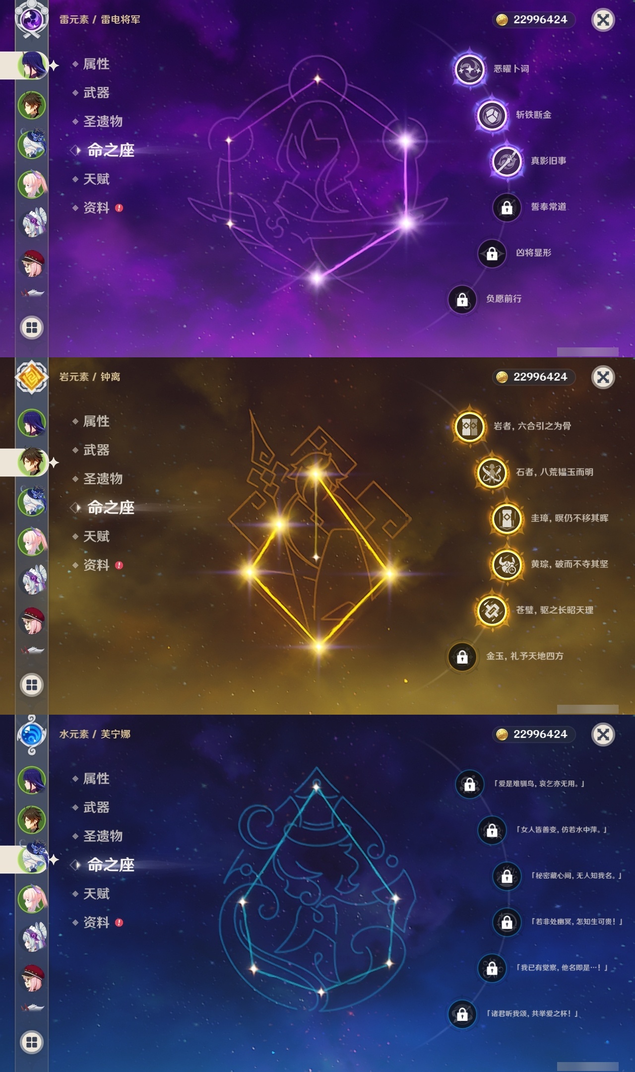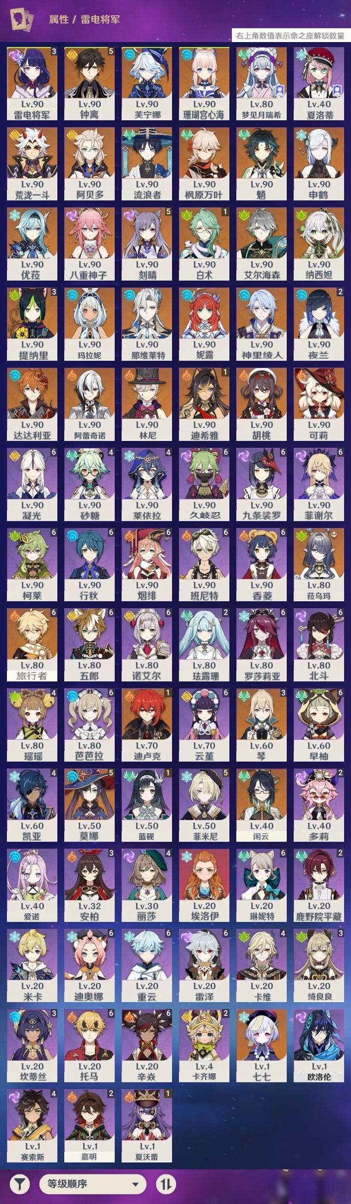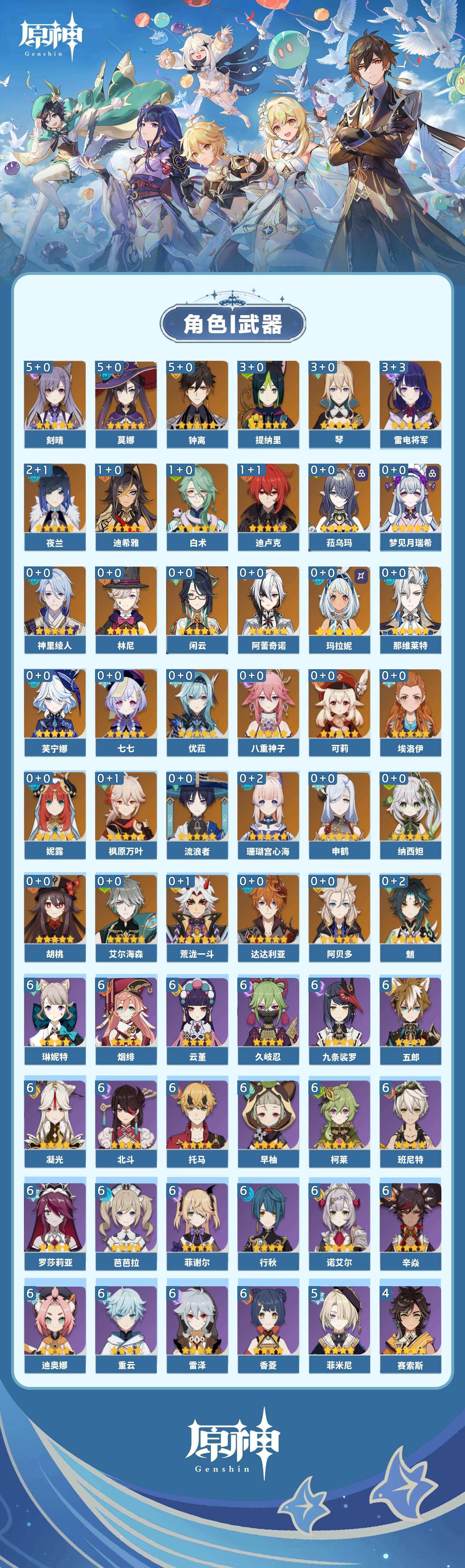 【原神】【lyys6646】冒险等级:60,五星数量:46,五星角色:刻晴 5命莫娜 5命钟离 5命雷电将军 3命琴 3命提纳里 3命夜兰 2命白术 1命迪希雅 1命迪卢克 1命七七玛拉妮珊瑚宫心海优菈荒泷一斗达达利亚梦见月瑞希申鹤八重神子神里绫人林尼阿贝多那维莱特芙宁娜闲云阿蕾奇诺妮露纳西妲菈乌玛艾尔海森流浪者枫原万叶魈胡桃可莉__五星武器:薙草之稻光 3精不灭月华 2精和璞鸢 2精苍古自由之誓狼的末路天空之脊天空之刃天空之翼赤角石溃杵若水__四星角色:班尼特 6命行秋 6命九条裟罗 6命香菱 6命久岐忍 6命凝光 6命迪奥娜 6命柯莱 6命芭芭拉 6命云堇 6命早柚 6命托马 6命五郎 6命烟绯 6命重云 6命辛焱 6命诺艾尔 6命罗莎莉亚 6命雷泽 6命菲谢尔 6命北斗 6命琳妮特 6命菲米尼 5命砂糖 4命瑶瑶 4命莱依拉 4命卡维 4命赛索斯 4命绮良良 3命坎蒂丝 3命卡齐娜 2命鹿野院平藏 2命珐露珊 2命多莉 2命嘉明 2命蓝砚 1命夏沃蕾 1命埃洛伊米卡欧洛伦夏洛蒂爱诺