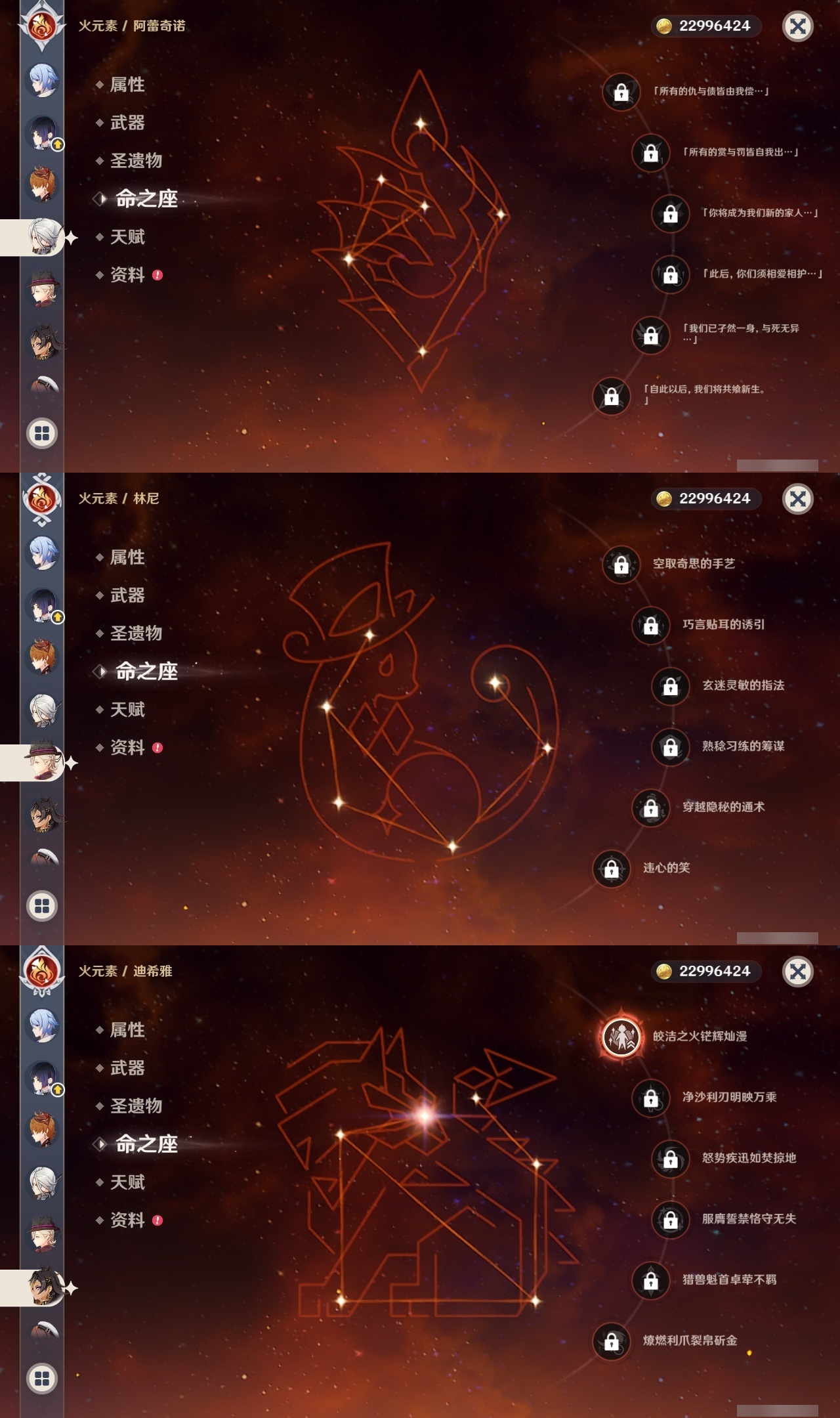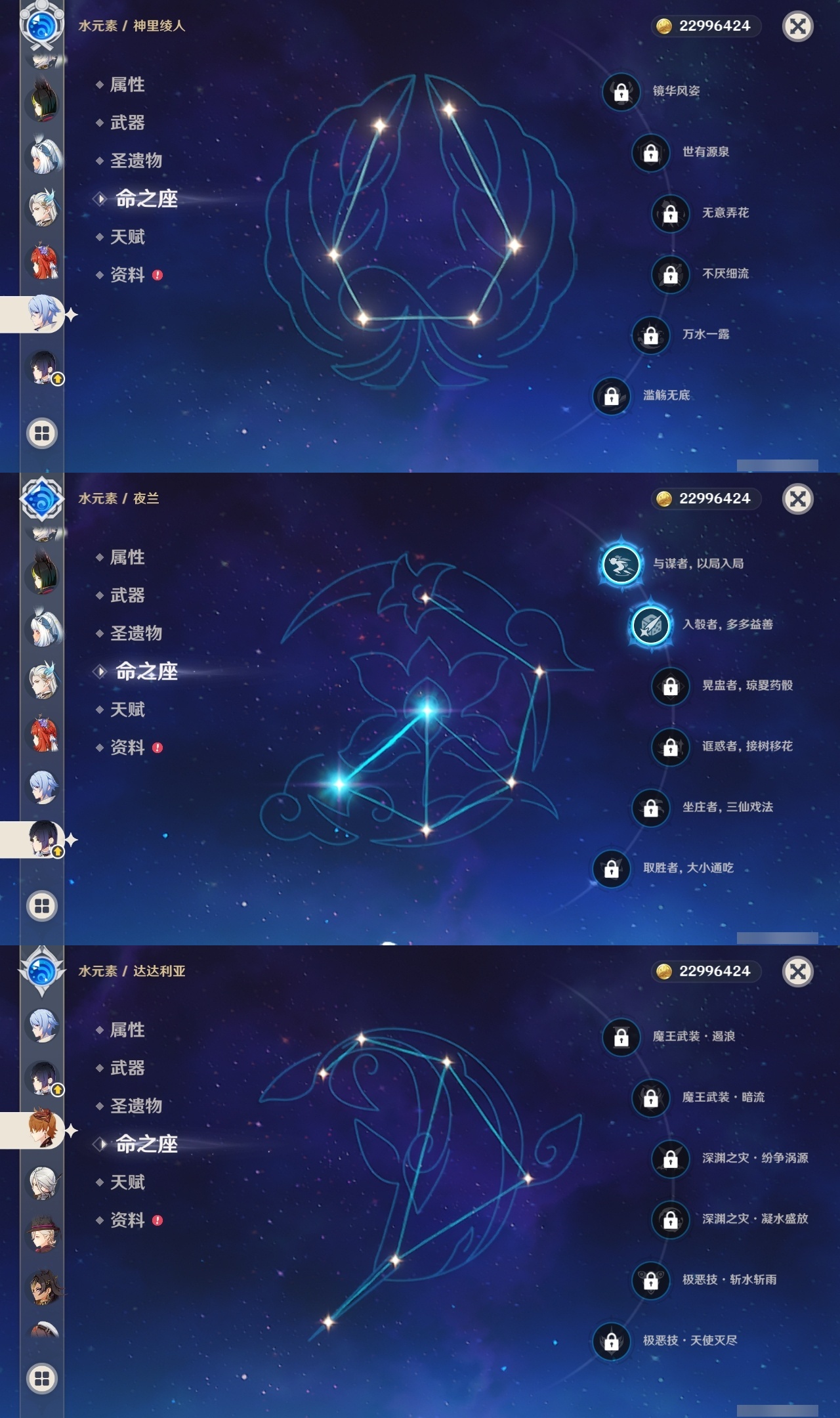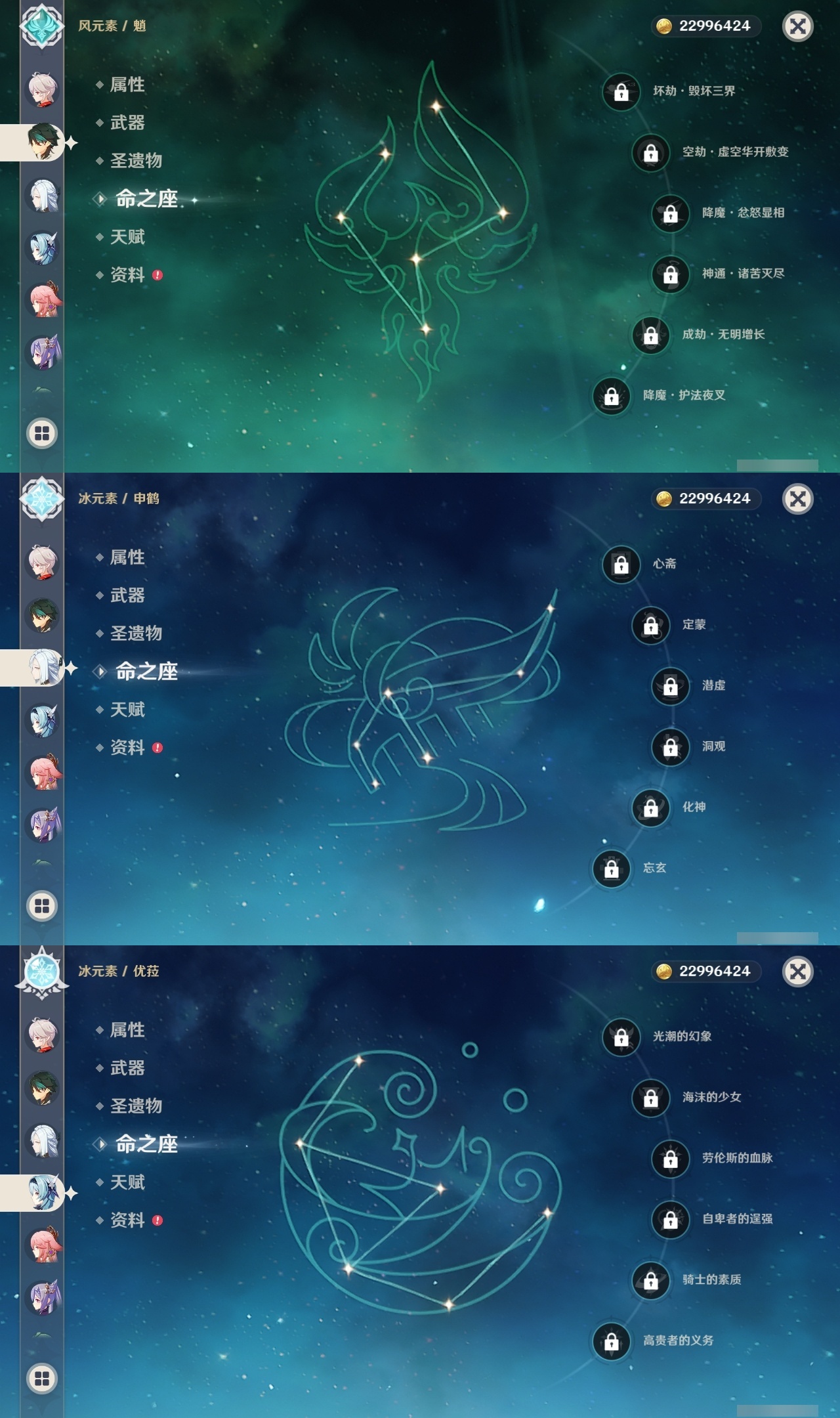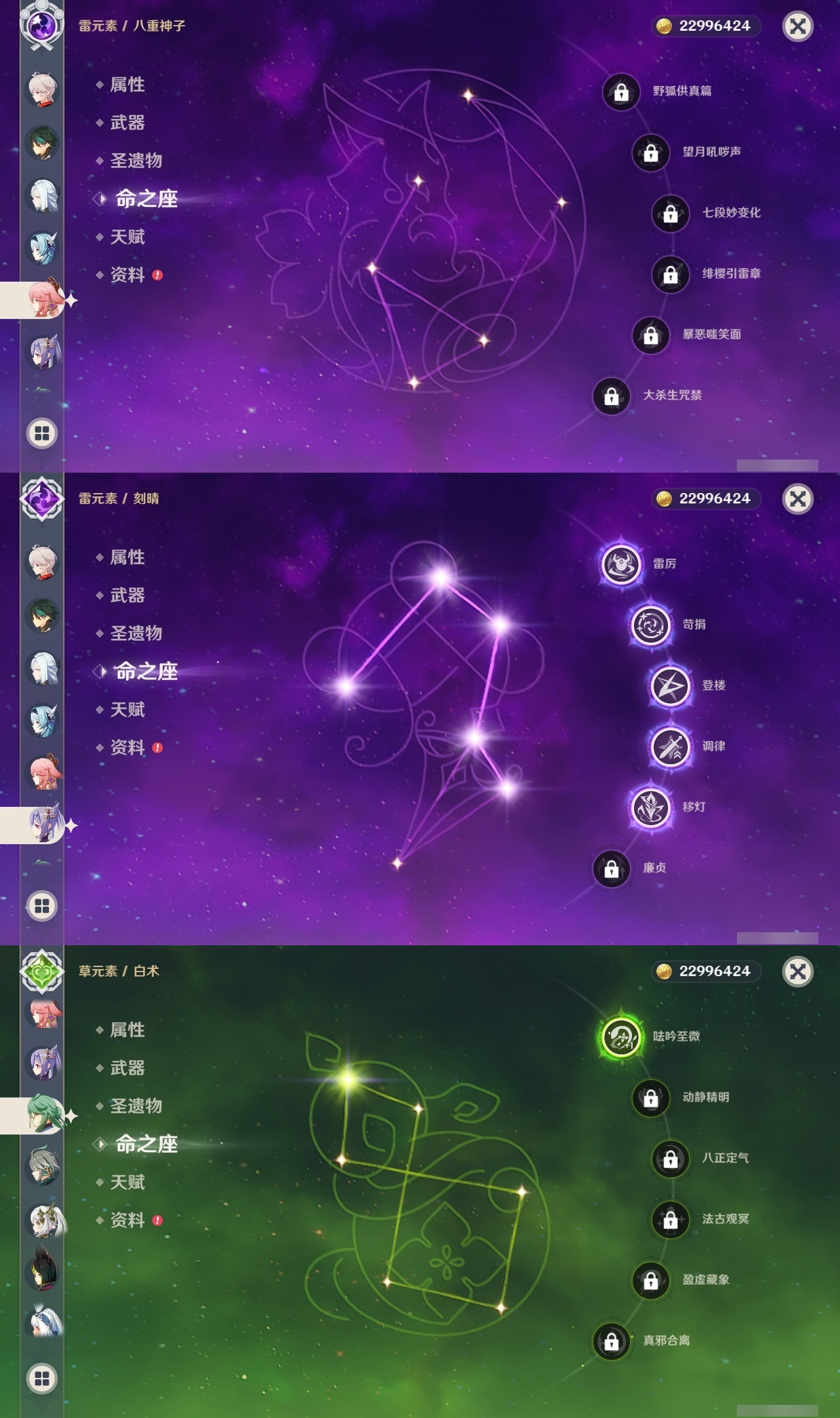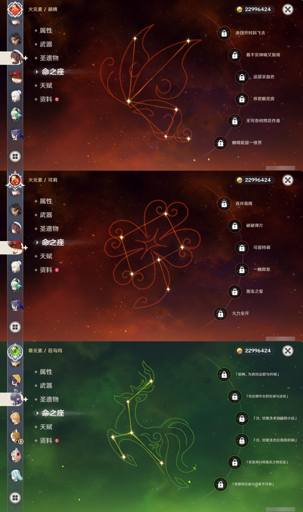 【原神】【lyys6646】冒险等级:60,五星数量:46,五星角色:刻晴 5命莫娜 5命钟离 5命雷电将军 3命琴 3命提纳里 3命夜兰 2命白术 1命迪希雅 1命迪卢克 1命七七玛拉妮珊瑚宫心海优菈荒泷一斗达达利亚梦见月瑞希申鹤八重神子神里绫人林尼阿贝多那维莱特芙宁娜闲云阿蕾奇诺妮露纳西妲菈乌玛艾尔海森流浪者枫原万叶魈胡桃可莉__五星武器:薙草之稻光 3精不灭月华 2精和璞鸢 2精苍古自由之誓狼的末路天空之脊天空之刃天空之翼赤角石溃杵若水__四星角色:班尼特 6命行秋 6命九条裟罗 6命香菱 6命久岐忍 6命凝光 6命迪奥娜 6命柯莱 6命芭芭拉 6命云堇 6命早柚 6命托马 6命五郎 6命烟绯 6命重云 6命辛焱 6命诺艾尔 6命罗莎莉亚 6命雷泽 6命菲谢尔 6命北斗 6命琳妮特 6命菲米尼 5命砂糖 4命瑶瑶 4命莱依拉 4命卡维 4命赛索斯 4命绮良良 3命坎蒂丝 3命卡齐娜 2命鹿野院平藏 2命珐露珊 2命多莉 2命嘉明 2命蓝砚 1命夏沃蕾 1命埃洛伊米卡欧洛伦夏洛蒂爱诺