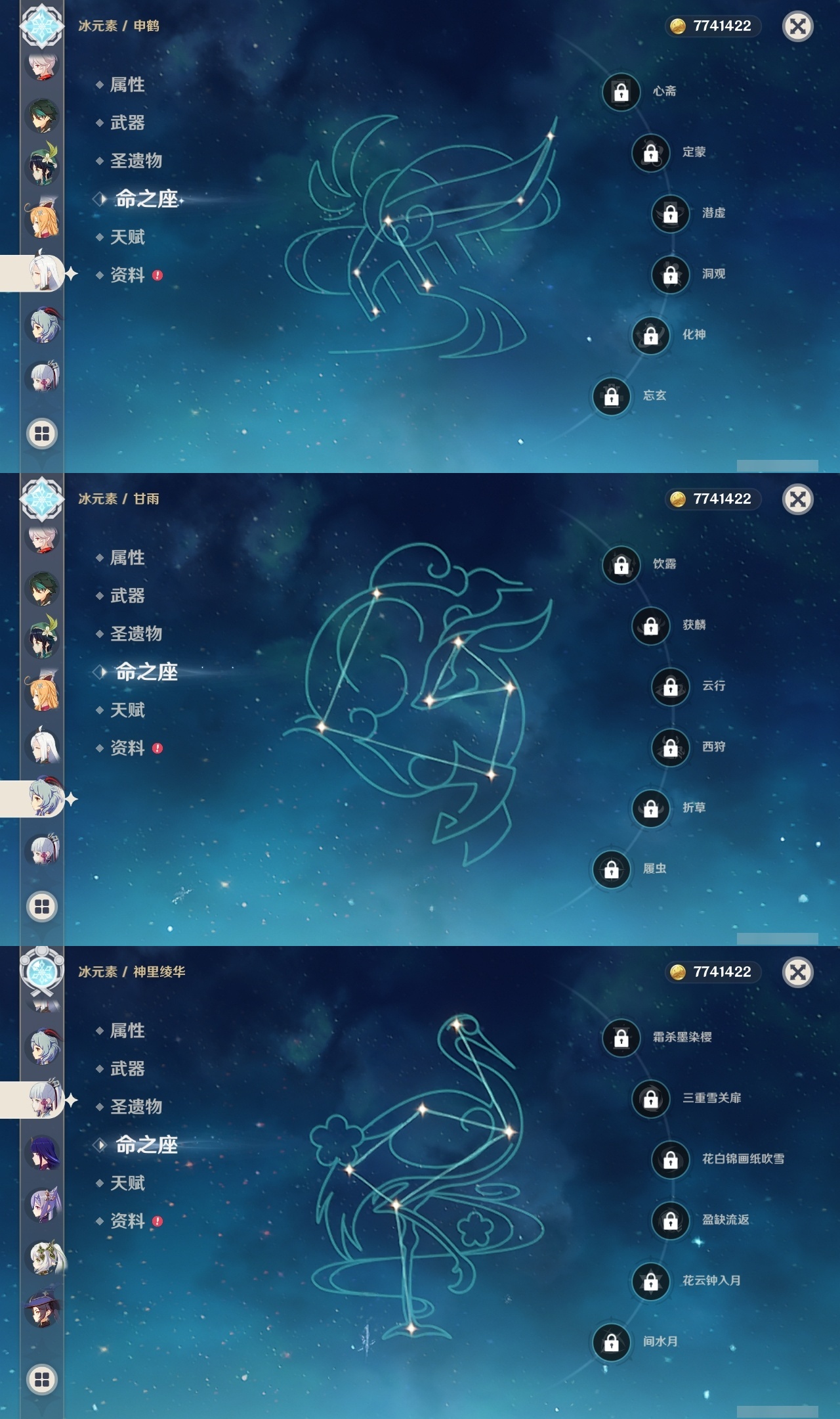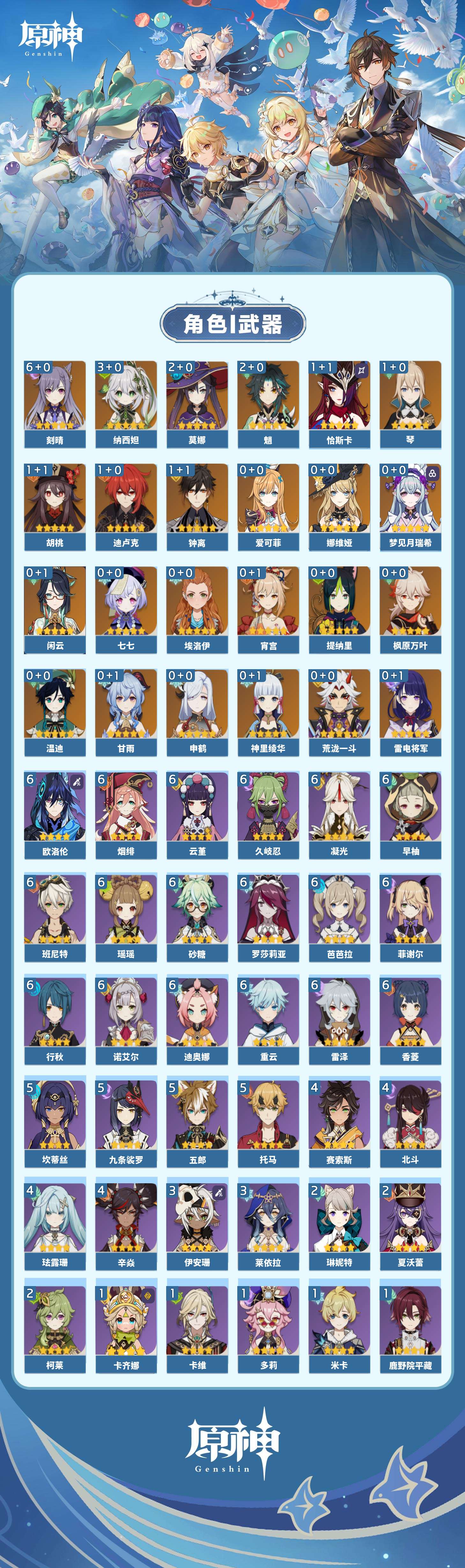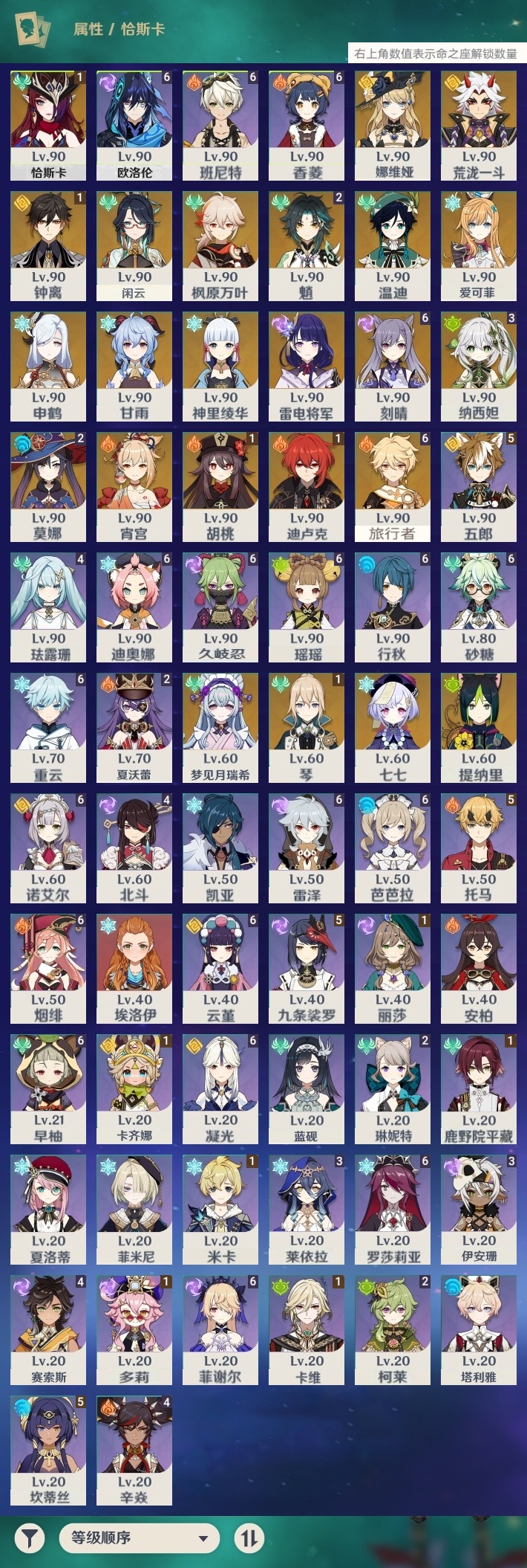 【原神】【lyys6815】冒险等级:60,五星数量:37,五星角色:刻晴 6命纳西妲 3命魈 2命莫娜 2命恰斯卡 1命迪卢克 1命胡桃 1命琴 1命钟离 1命七七神里绫华温迪宵宫荒泷一斗梦见月瑞希申鹤娜维娅提纳里闲云爱可菲枫原万叶甘雨雷电将军__五星武器:天空之傲 2精星鹫赤羽鹤鸣余音阿莫斯之弓飞雷之弦振风鹰剑护摩之杖天空之脊天空之刃无工之剑雾切之回光薙草之稻光贯虹之槊__四星角色:班尼特 6命行秋 6命香菱 6命久岐忍 6命凝光 6命迪奥娜 6命砂糖 6命瑶瑶 6命芭芭拉 6命欧洛伦 6命云堇 6命早柚 6命烟绯 6命重云 6命诺艾尔 6命罗莎莉亚 6命雷泽 6命菲谢尔 6命九条裟罗 5命坎蒂丝 5命托马 5命五郎 5命珐露珊 4命辛焱 4命北斗 4命赛索斯 4命莱依拉 3命伊安珊 3命柯莱 2命琳妮特 2命夏沃蕾 2命卡齐娜 1命鹿野院平藏 1命米卡 1命多莉 1命卡维 1命埃洛伊蓝砚菲米尼夏洛蒂塔利雅