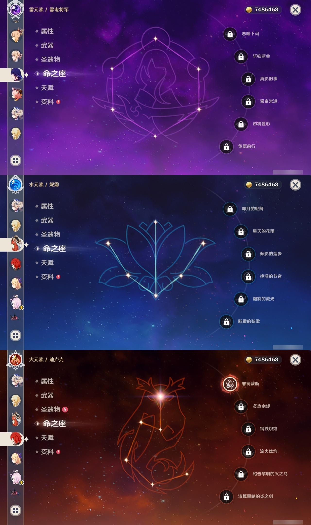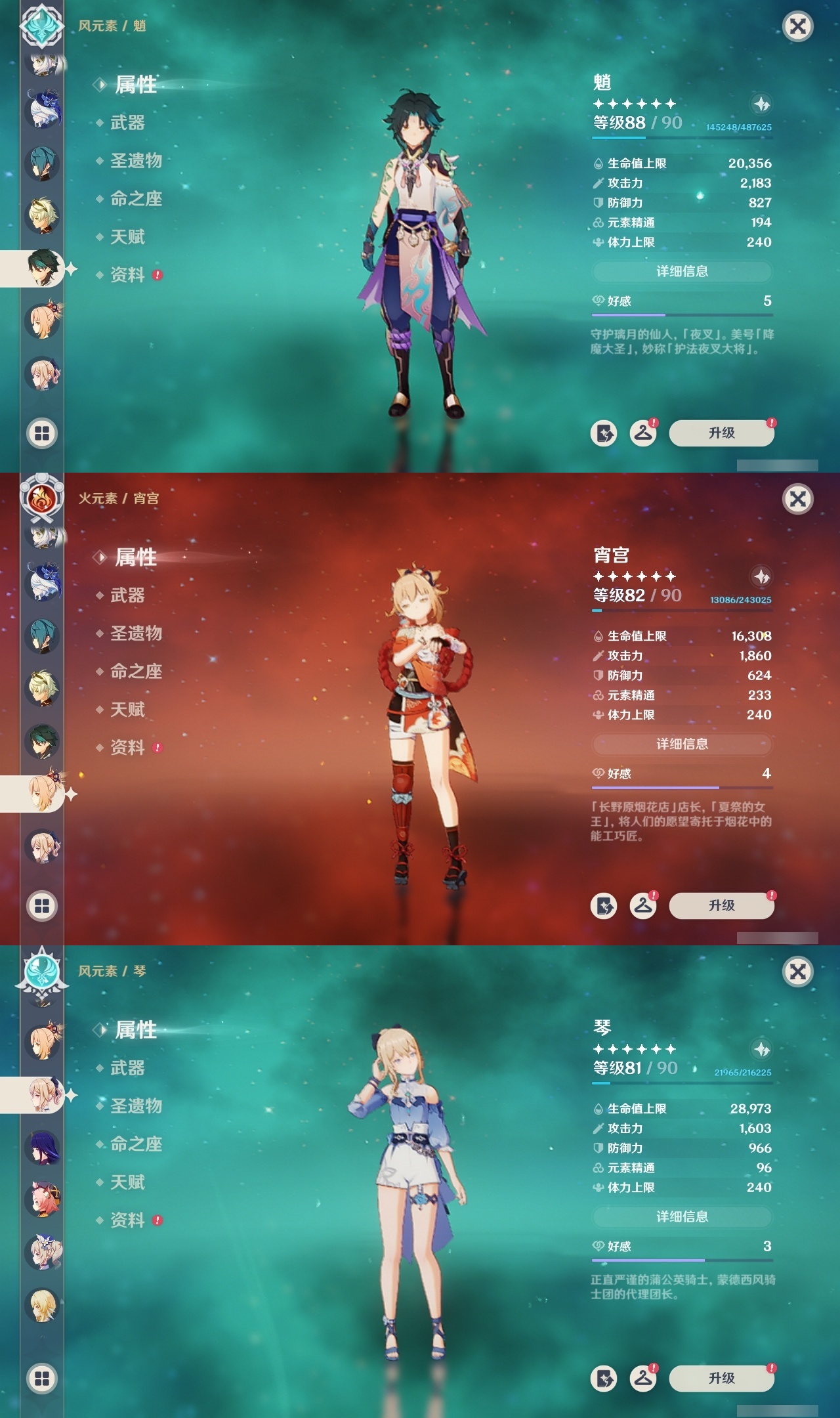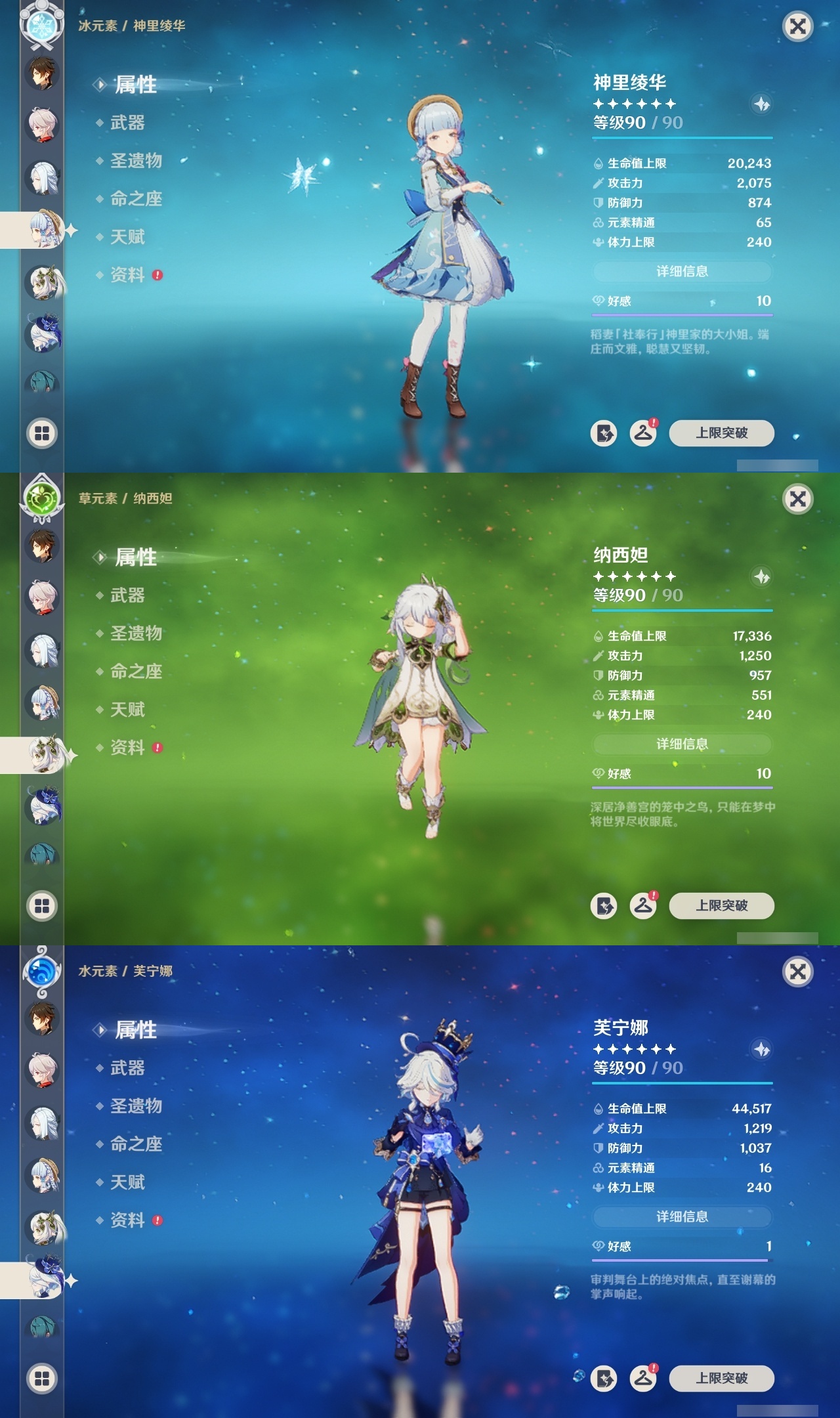 【原神】满命,冒险等级:57,五星数量:31,五星角色:魈 6命琴 6命神里绫华 6命申鹤 6命纳西妲 6命刻晴 5命夜兰 2命迪希雅 1命菈乌玛 1命迪卢克 1命莫娜七七宵宫钟离梦见月瑞希芙宁娜提纳里妮露枫原万叶雷电将军__五星武器:雾切之回光 2精若水 2精苍耀纺夜天镜飞雷之弦振和璞鸢天空之傲天空之脊天空之翼息灾圣显之钥__四星角色:班尼特 6命行秋 6命久岐忍 6命凝光 6命迪奥娜 6命砂糖 6命莱依拉 6命米卡 6命多莉 6命柯莱 6命芭芭拉 6命云堇 6命早柚 6命托马 6命烟绯 6命诺艾尔 6命罗莎莉亚 6命雷泽 6命菲谢尔 6命九条裟罗 4命北斗 4命香菱 3命鹿野院平藏 3命瑶瑶 3命五郎 3命珐露珊 2命卡维 2命辛焱 2命爱诺 2命坎蒂丝 1命重云 1命菲米尼 1命琳妮特 1命卡齐娜夏沃蕾伊安珊塔利雅赛索斯
