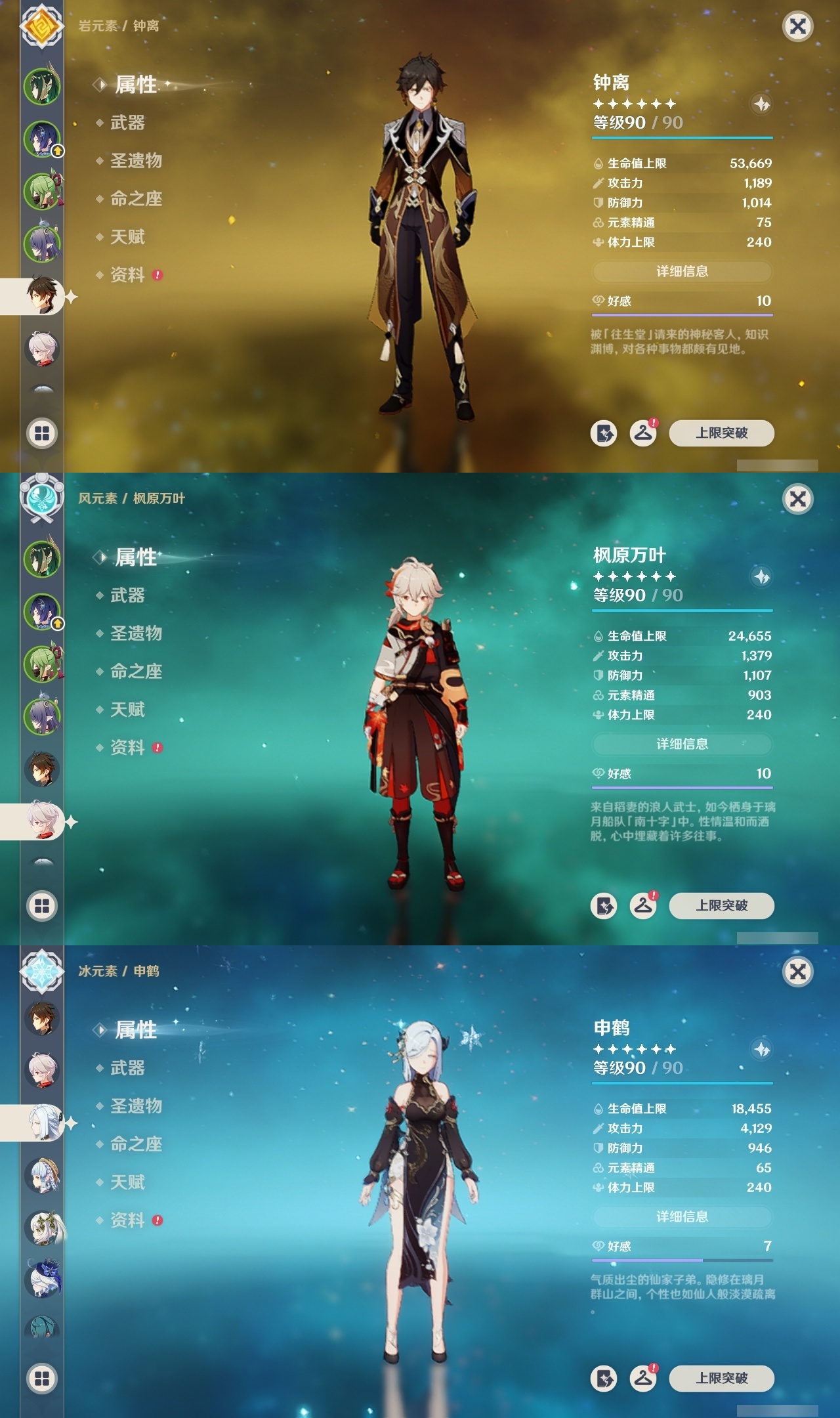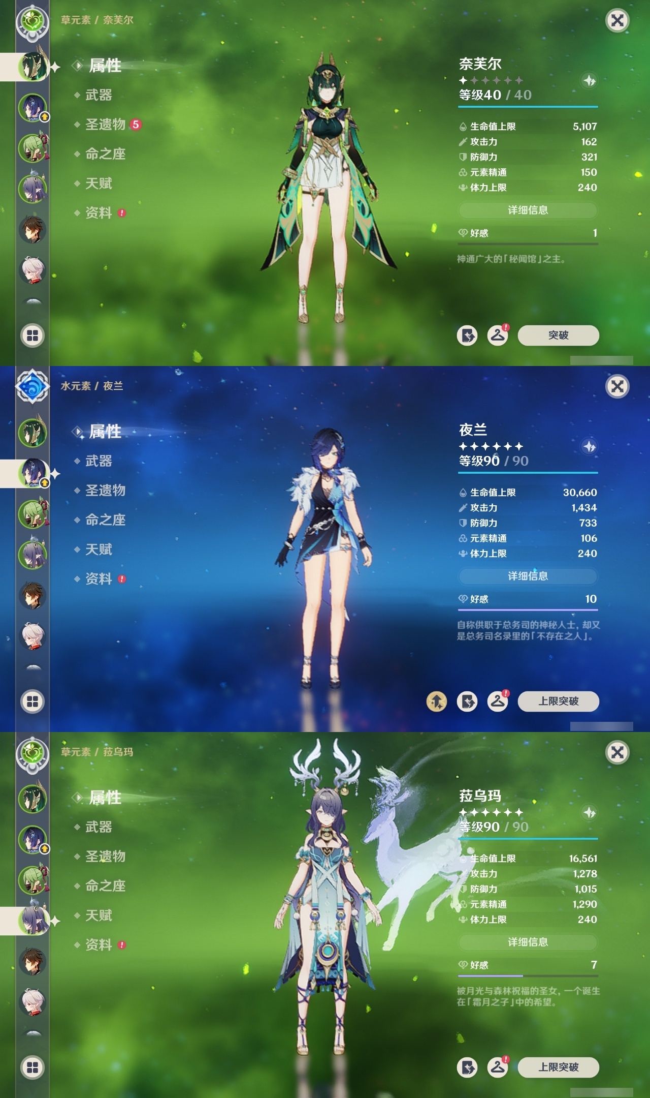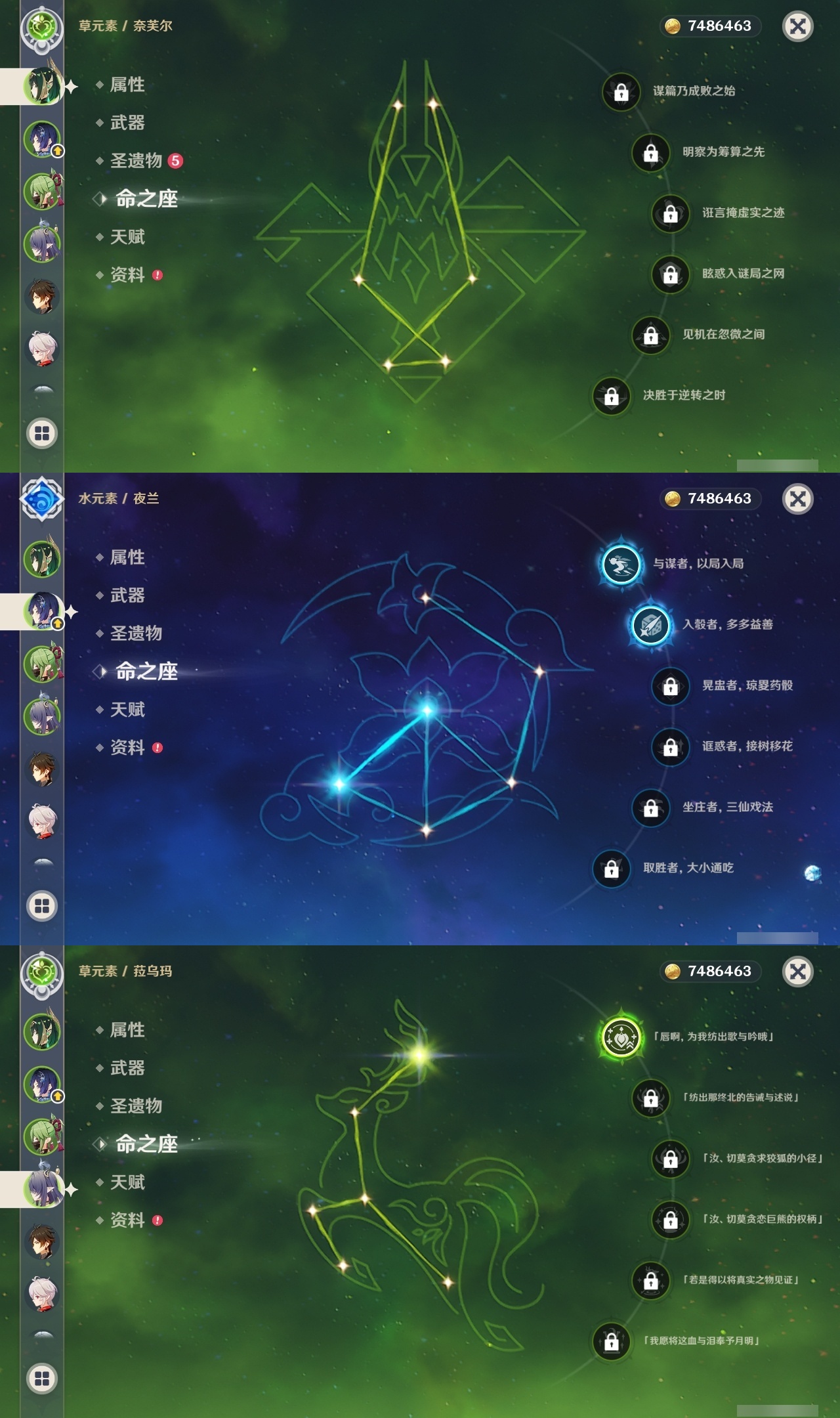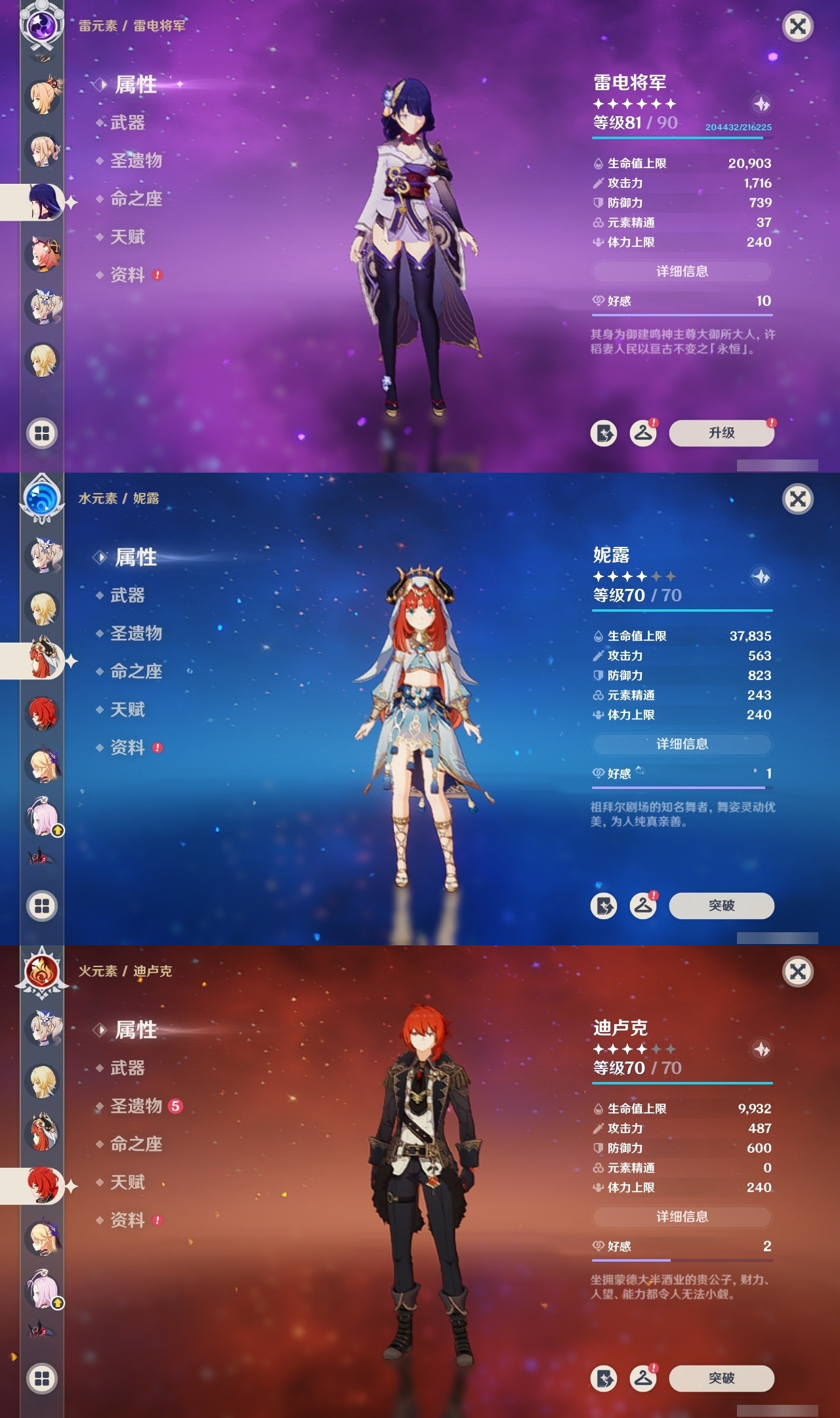 【原神】满命,冒险等级:57,五星数量:31,五星角色:魈 6命琴 6命神里绫华 6命申鹤 6命纳西妲 6命刻晴 5命夜兰 2命迪希雅 1命菈乌玛 1命迪卢克 1命莫娜七七宵宫钟离梦见月瑞希芙宁娜提纳里妮露枫原万叶雷电将军__五星武器:雾切之回光 2精若水 2精苍耀纺夜天镜飞雷之弦振和璞鸢天空之傲天空之脊天空之翼息灾圣显之钥__四星角色:班尼特 6命行秋 6命久岐忍 6命凝光 6命迪奥娜 6命砂糖 6命莱依拉 6命米卡 6命多莉 6命柯莱 6命芭芭拉 6命云堇 6命早柚 6命托马 6命烟绯 6命诺艾尔 6命罗莎莉亚 6命雷泽 6命菲谢尔 6命九条裟罗 4命北斗 4命香菱 3命鹿野院平藏 3命瑶瑶 3命五郎 3命珐露珊 2命卡维 2命辛焱 2命爱诺 2命坎蒂丝 1命重云 1命菲米尼 1命琳妮特 1命卡齐娜夏沃蕾伊安珊塔利雅赛索斯