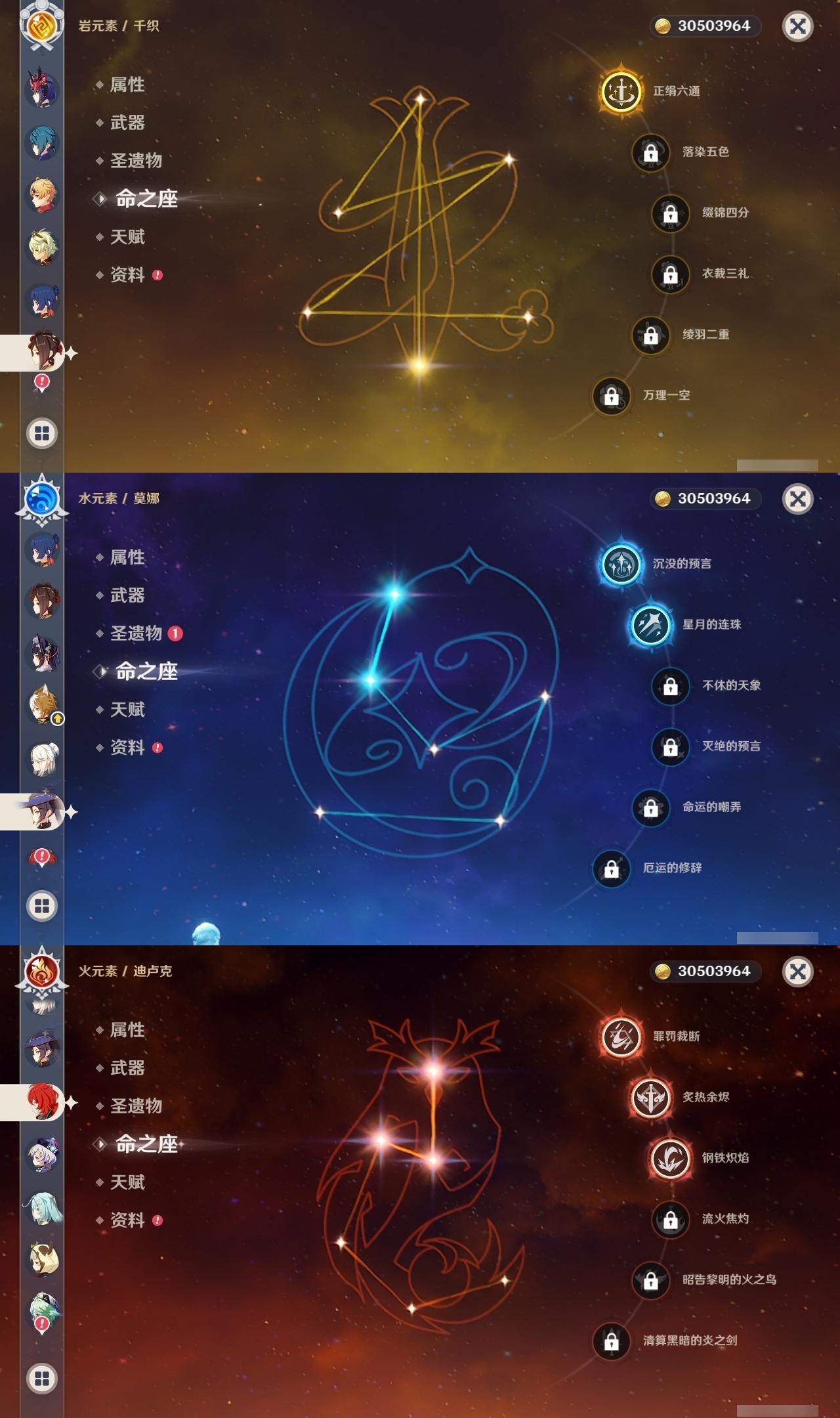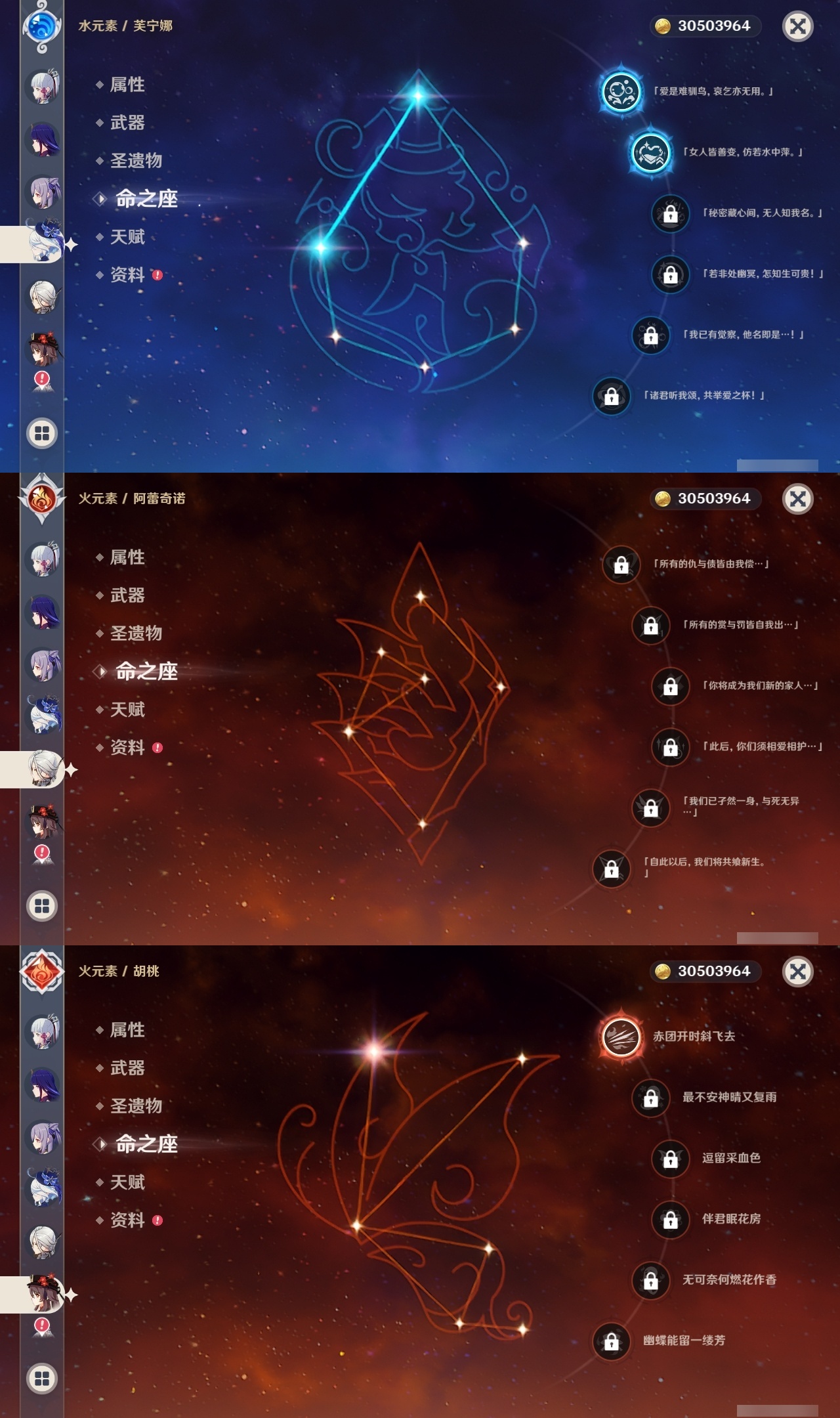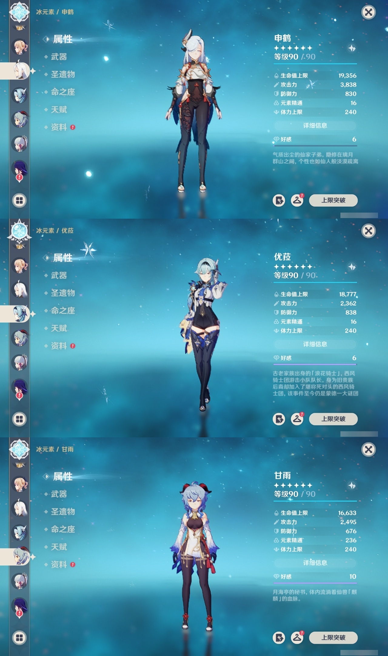 【原神】【lyys6812】冒险等级:60,五星数量:44,五星角色:刻晴 6命七七 5命琴 5命阿贝多 4命迪卢克 3命芙宁娜 2命雷电将军 2命莫娜 2命宵宫 2命纳西妲 2命千织 1命胡桃 1命夜兰 1命神里绫华优菈钟离荒泷一斗申鹤阿蕾奇诺流浪者枫原万叶甘雨__五星武器:飞雷之弦振 3精天空之傲 2精天空之脊 2精天空之翼 2精无工之剑 2精赤角石溃杵 2精赤月之形阿莫斯之弓尘世之锁和璞鸢护摩之杖狼的末路四风原典松籁响起之时天空之卷天空之刃雾切之回光薙草之稻光息灾若水千夜浮梦__四星角色:班尼特 6命行秋 6命九条裟罗 6命香菱 6命久岐忍 6命凝光 6命迪奥娜 6命砂糖 6命莱依拉 6命多莉 6命柯莱 6命芭芭拉 6命云堇 6命早柚 6命托马 6命五郎 6命烟绯 6命重云 6命辛焱 6命诺艾尔 6命罗莎莉亚 6命北斗 6命珐露珊 5命雷泽 4命菲谢尔 4命夏洛蒂 4命米卡 3命坎蒂丝 3命鹿野院平藏 2命卡维 2命菲米尼 2命卡齐娜 1命绮良良 1命嘉明 1命埃洛伊瑶瑶琳妮特夏沃蕾