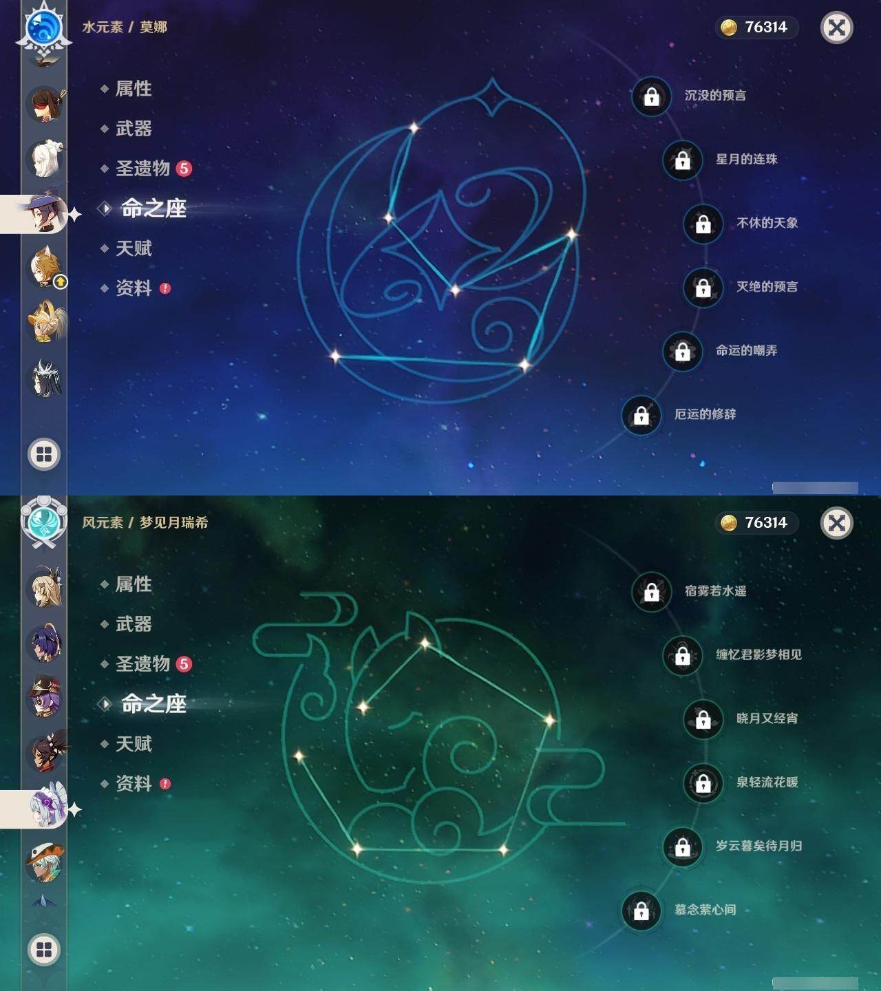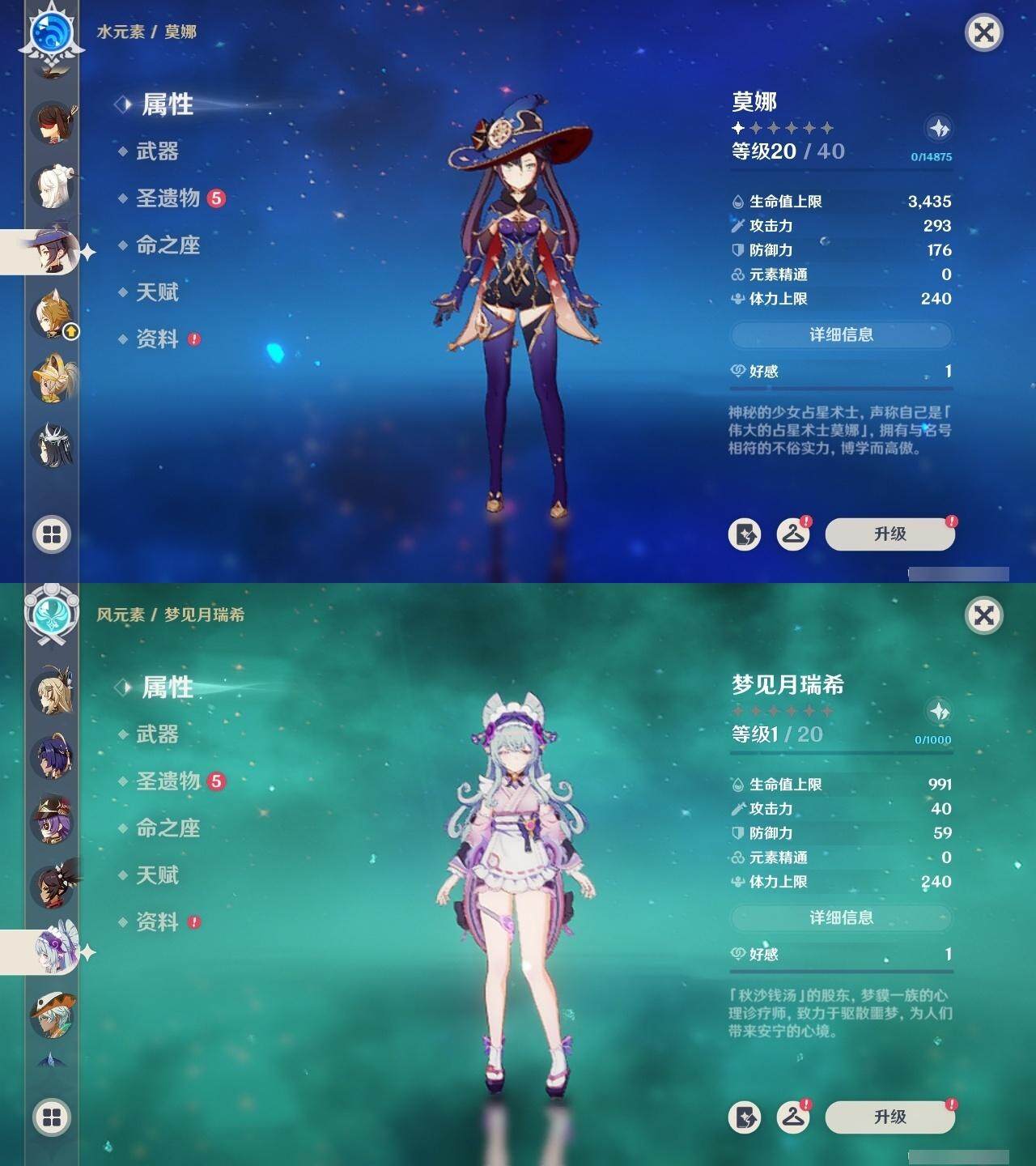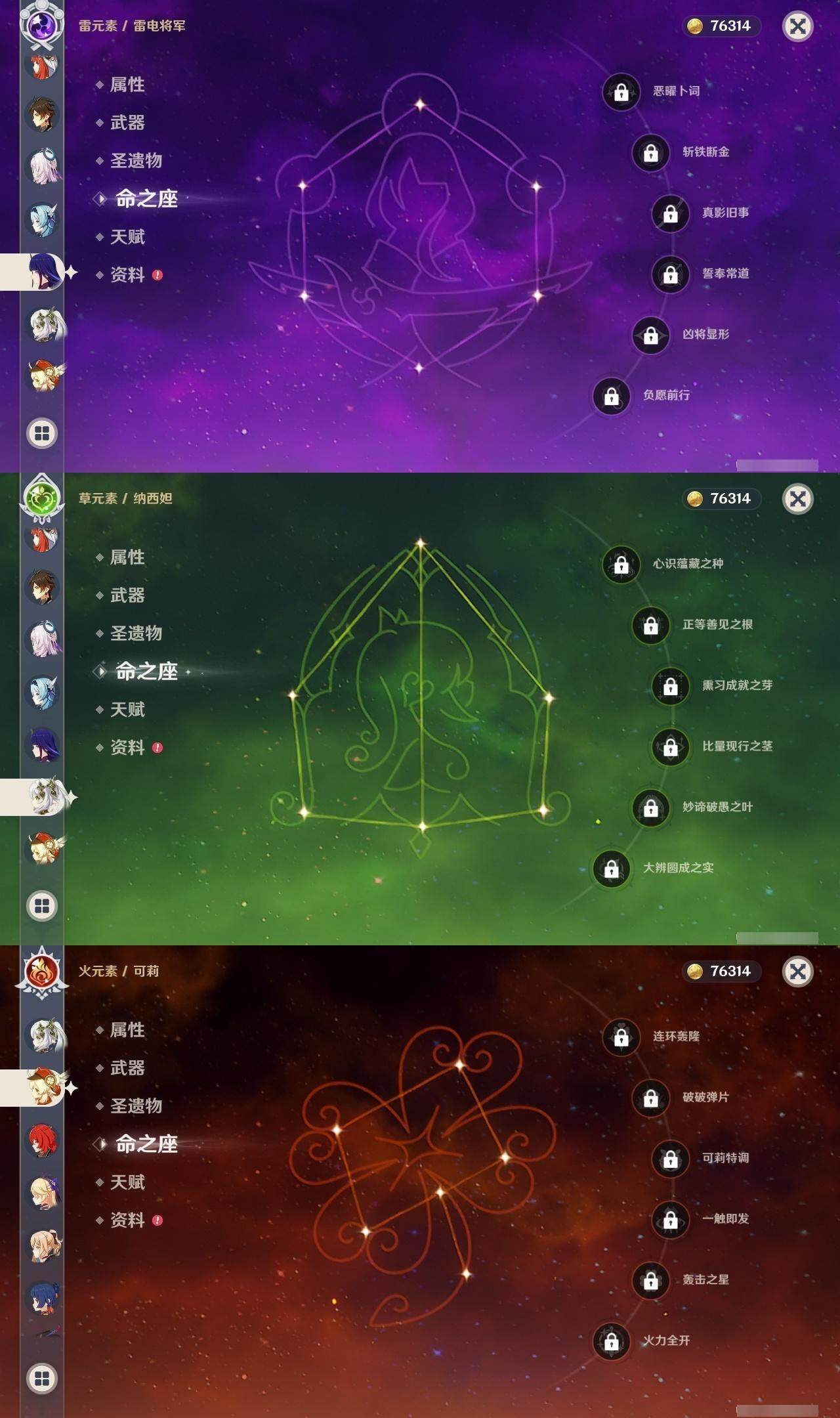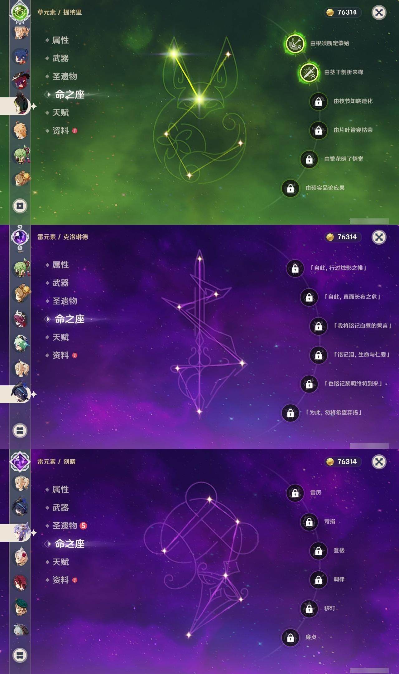 59级/31黄/男主/17个五星角色/8个五星武器 0命克洛琳德0命纳西妲0命妮露2命提纳里1命夜兰0命优菈0命雷电将军0命钟离0命胡桃0命可莉0命刻晴2命琴0命莫娜1命迪卢克0命恰斯卡0命茜特菈莉0命梦见月瑞希精1最初的大魔术精1千夜浮梦精1若水精1波乱月白经津精1松籁响起之时精1四风原典精1天空之翼精1天空之刃