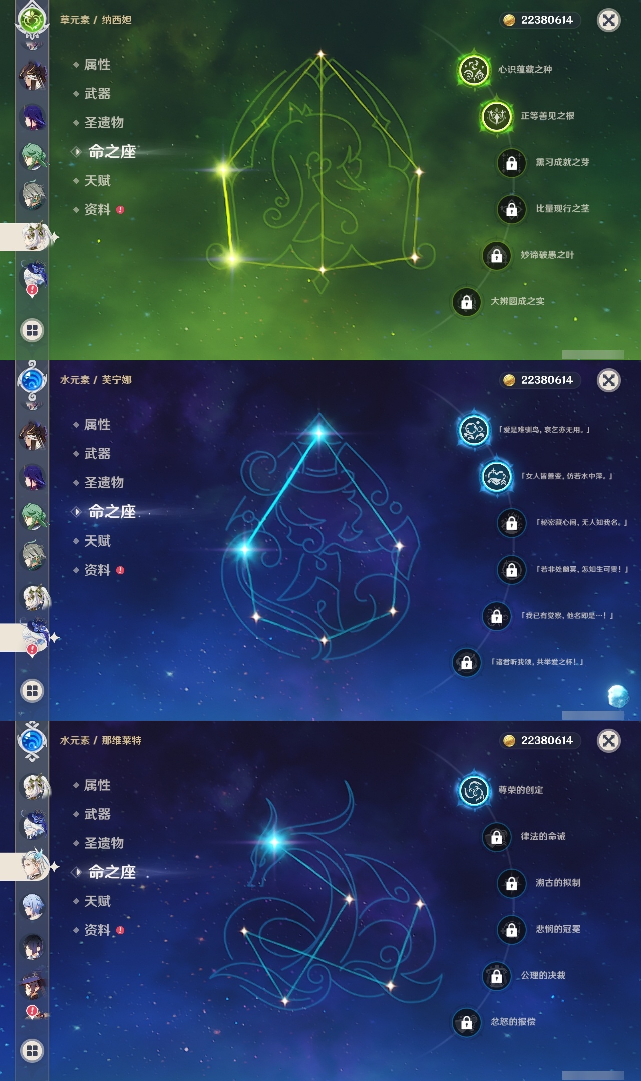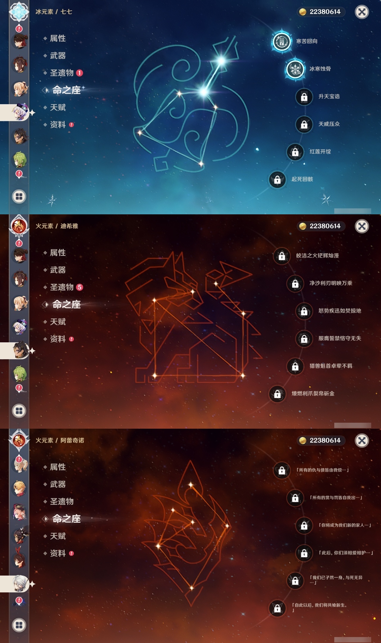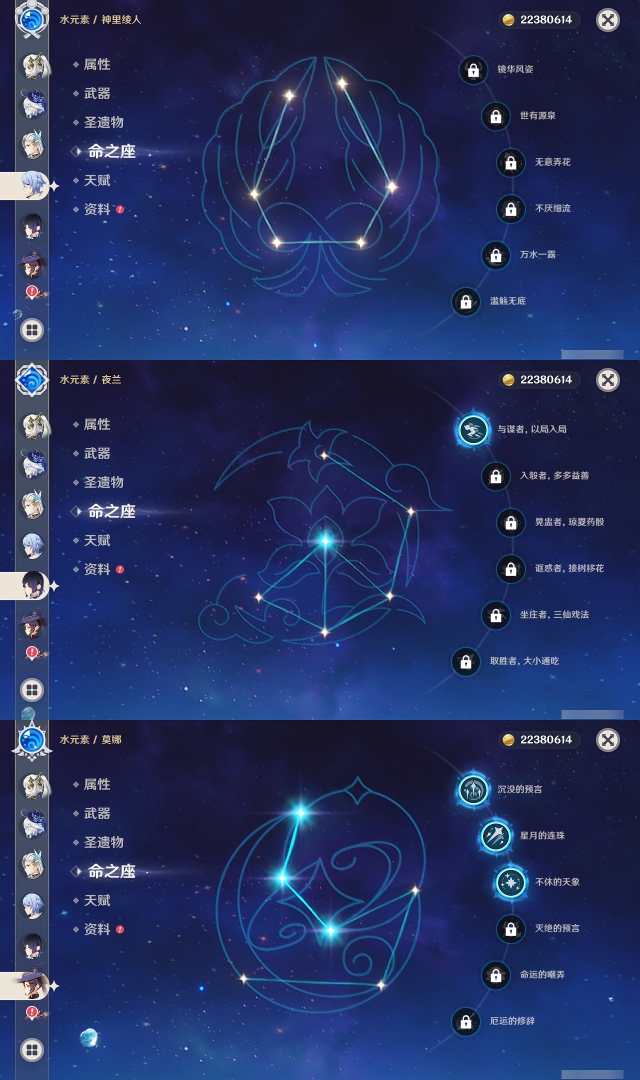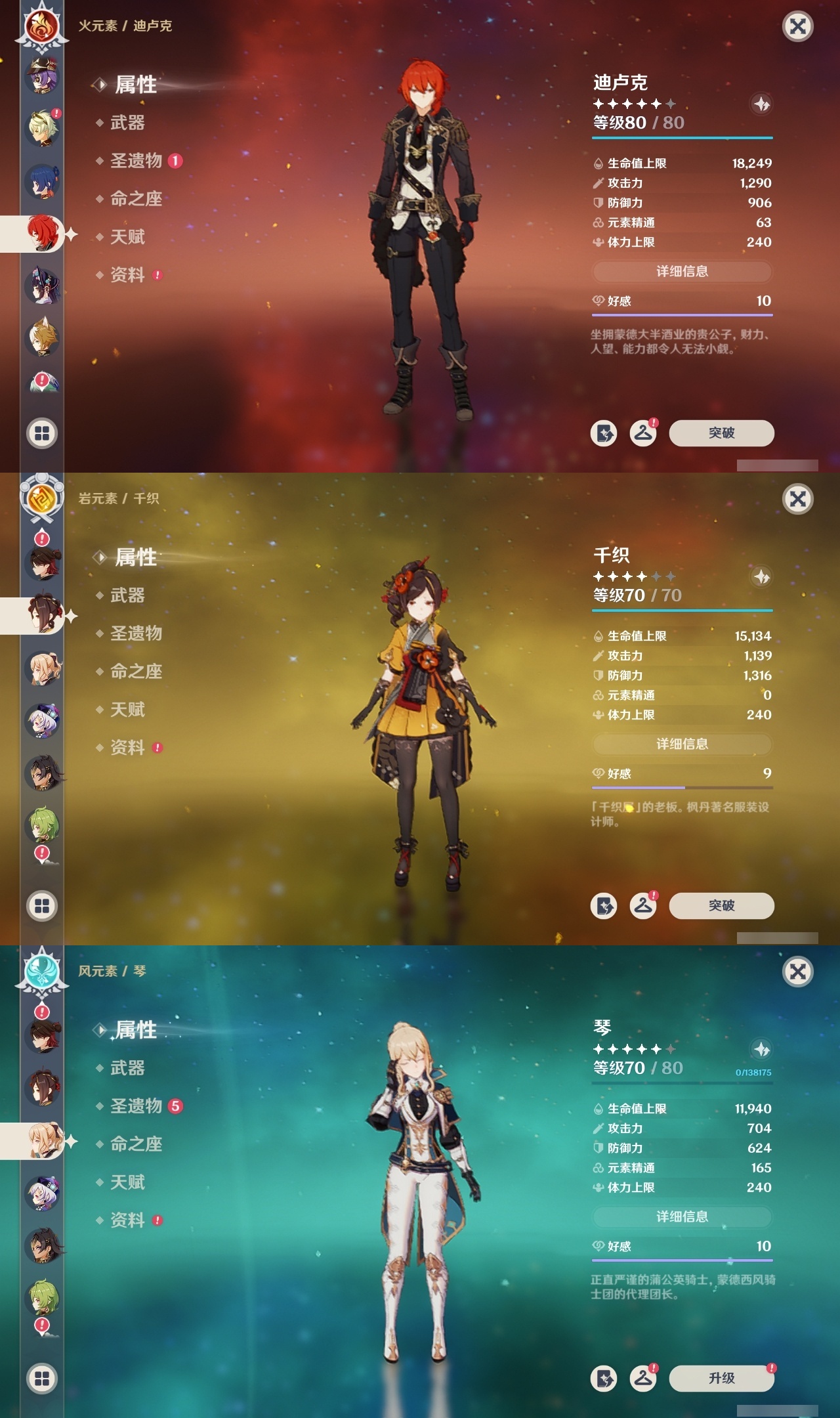 【原神】【lyys6963】冒险等级:60,五星数量:46,五星角色:迪卢克 5命魈 3命莫娜 3命琴 3命芙宁娜 2命雷电将军 2命七七 2命神里绫华 2命纳西妲 2命那维莱特 1命胡桃 1命夜兰 1命白术宵宫迪希雅钟离神里绫人娜维娅闲云千织赛诺阿蕾奇诺艾尔海森流浪者枫原万叶甘雨克洛琳德可莉刻晴__五星武器:苇海信标万世流涌大典鹤鸣余音阿莫斯之弓苍古自由之誓飞雷之弦振和璞鸢护摩之杖天空之傲天空之刃天空之翼雾切之回光薙草之稻光终末嗟叹之诗若水赤沙之杖千夜浮梦__四星角色:行秋 6命九条裟罗 6命香菱 6命珐露珊 6命凝光 6命迪奥娜 6命瑶瑶 6命坎蒂丝 6命多莉 6命柯莱 6命卡维 6命芭芭拉 6命云堇 6命早柚 6命托马 6命五郎 6命烟绯 6命辛焱 6命诺艾尔 6命罗莎莉亚 6命雷泽 6命菲谢尔 6命北斗 6命夏洛蒂 6命班尼特 5命砂糖 5命米卡 5命菲米尼 5命琳妮特 5命嘉明 4命久岐忍 3命鹿野院平藏 3命莱依拉 2命重云 2命绮良良夏沃蕾赛索斯