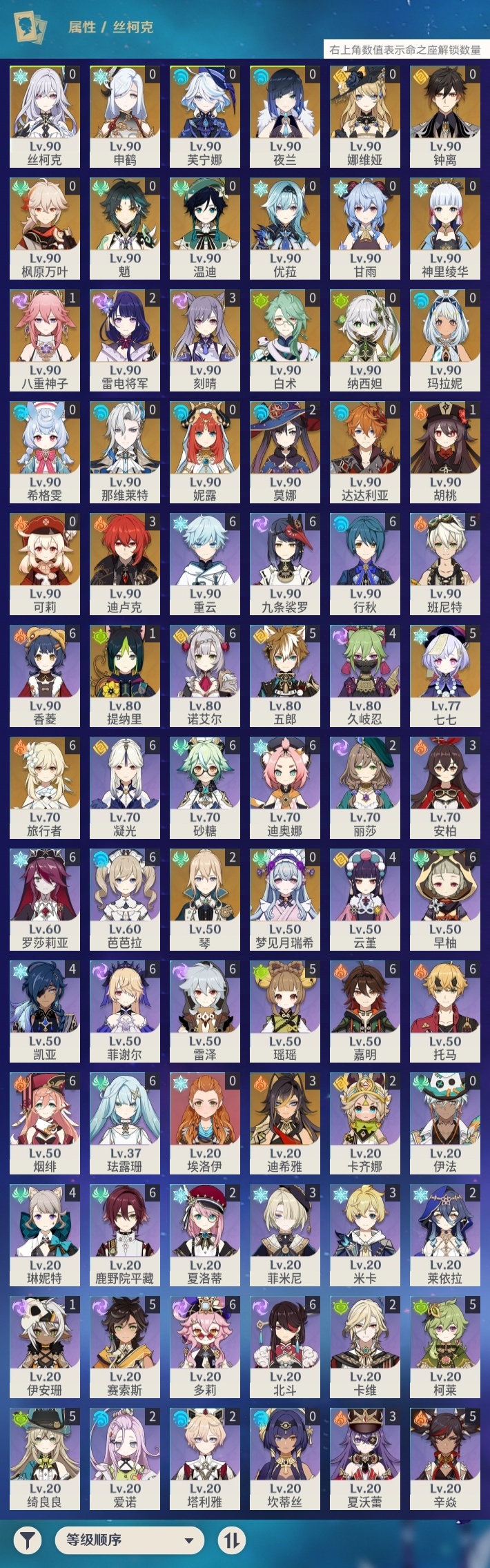 【原神】【lyys7054】冒险等级:60,五星数量:45,五星角色:七七 5命迪希雅 3命迪卢克 3命刻晴 3命雷电将军 2命莫娜 2命琴 2命胡桃 1命八重神子 1命提纳里 1命玛拉妮白术神里绫华温迪优菈钟离达达利亚梦见月瑞希申鹤那维莱特夜兰芙宁娜娜维娅丝柯克妮露纳西妲枫原万叶甘雨魈希格雯可莉__五星武器:万世流涌大典裁断裁叶萃光阿莫斯之弓苍古自由之誓和璞鸢护摩之杖狼的末路天空之傲天空之卷天空之翼薙草之稻光若水__四星角色:行秋 6命九条裟罗 6命香菱 6命鹿野院平藏 6命珐露珊 6命凝光 6命迪奥娜 6命砂糖 6命多莉 6命芭芭拉 6命早柚 6命托马 6命烟绯 6命重云 6命诺艾尔 6命罗莎莉亚 6命雷泽 6命菲谢尔 6命北斗 6命嘉明 6命班尼特 5命绮良良 5命瑶瑶 5命柯莱 5命五郎 5命辛焱 5命赛索斯 5命久岐忍 4命云堇 4命琳妮特 4命米卡 3命菲米尼 3命夏沃蕾 3命卡齐娜 2命莱依拉 2命卡维 2命夏洛蒂 2命塔利雅 2命爱诺 2命伊安珊 1命埃洛伊坎蒂丝伊法