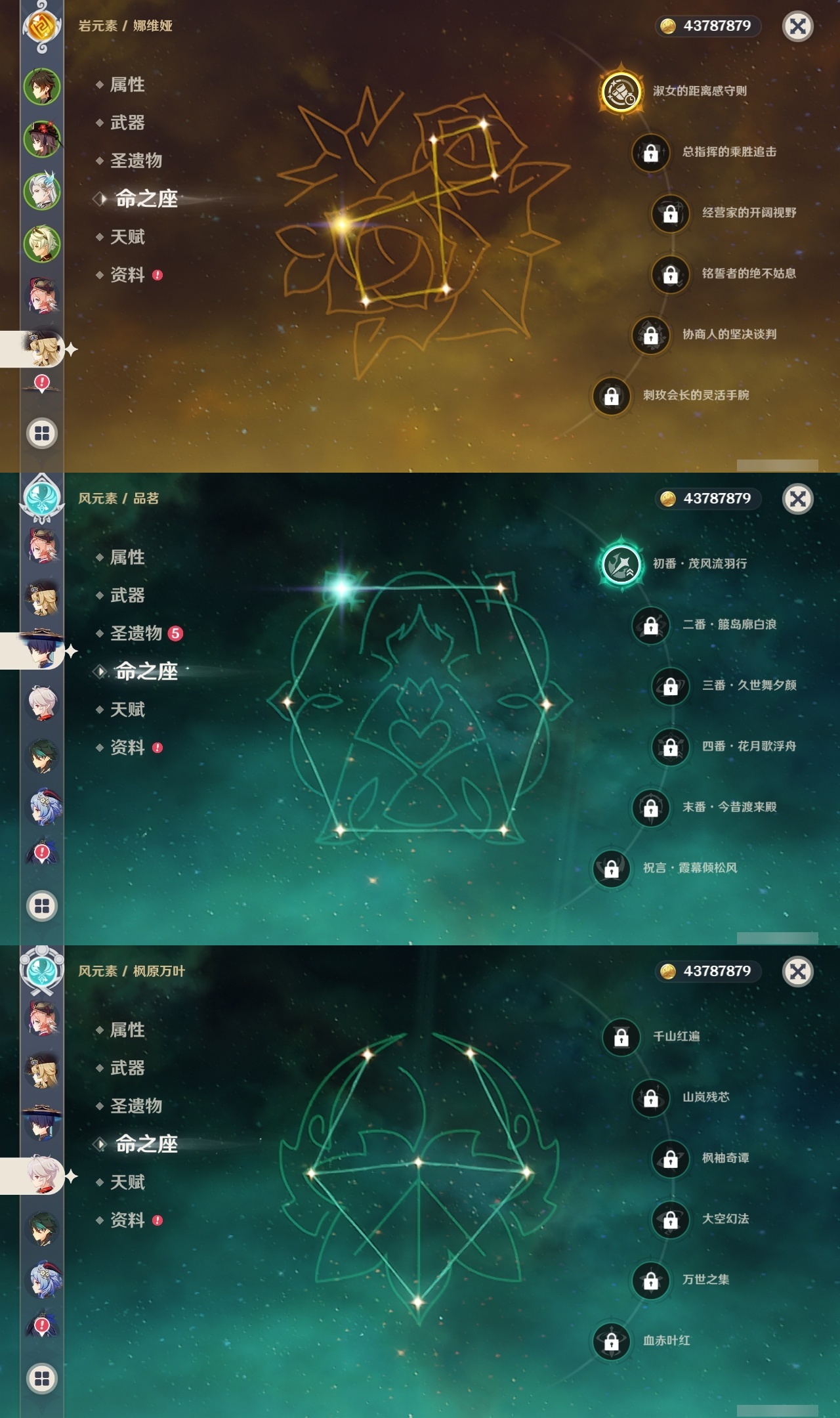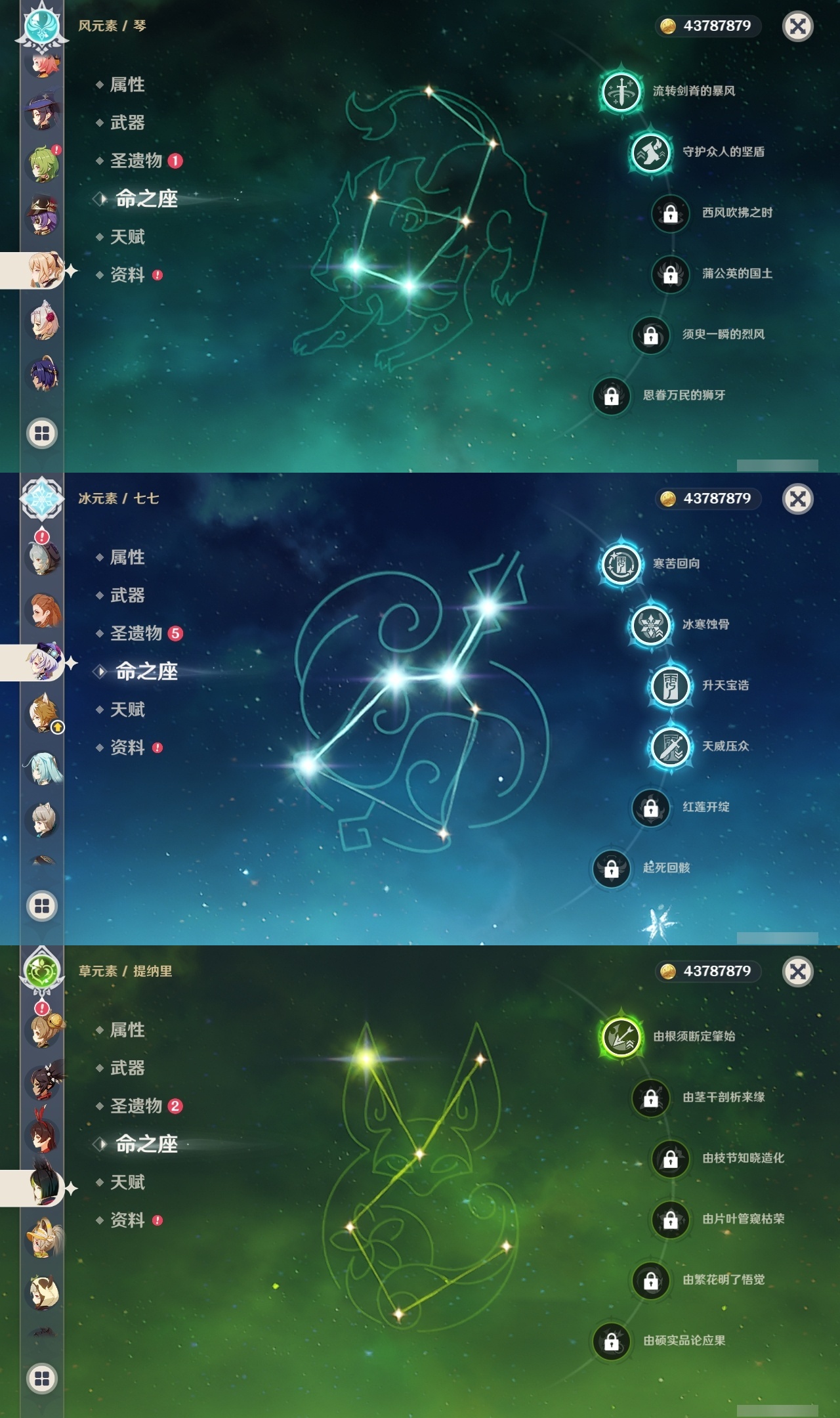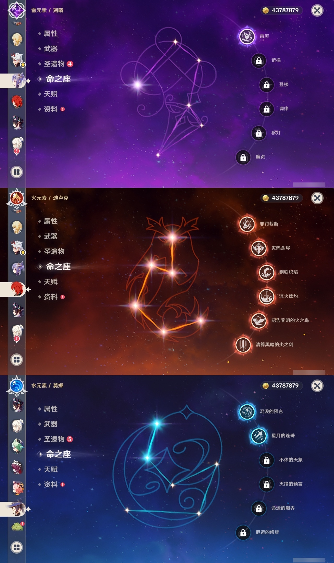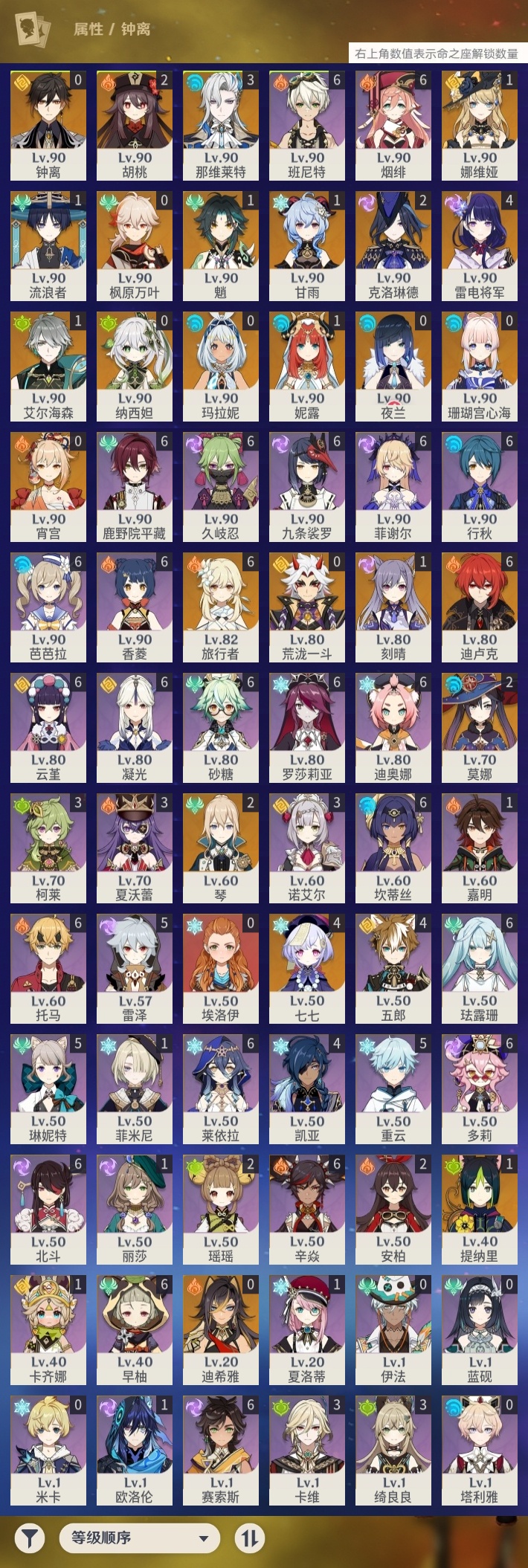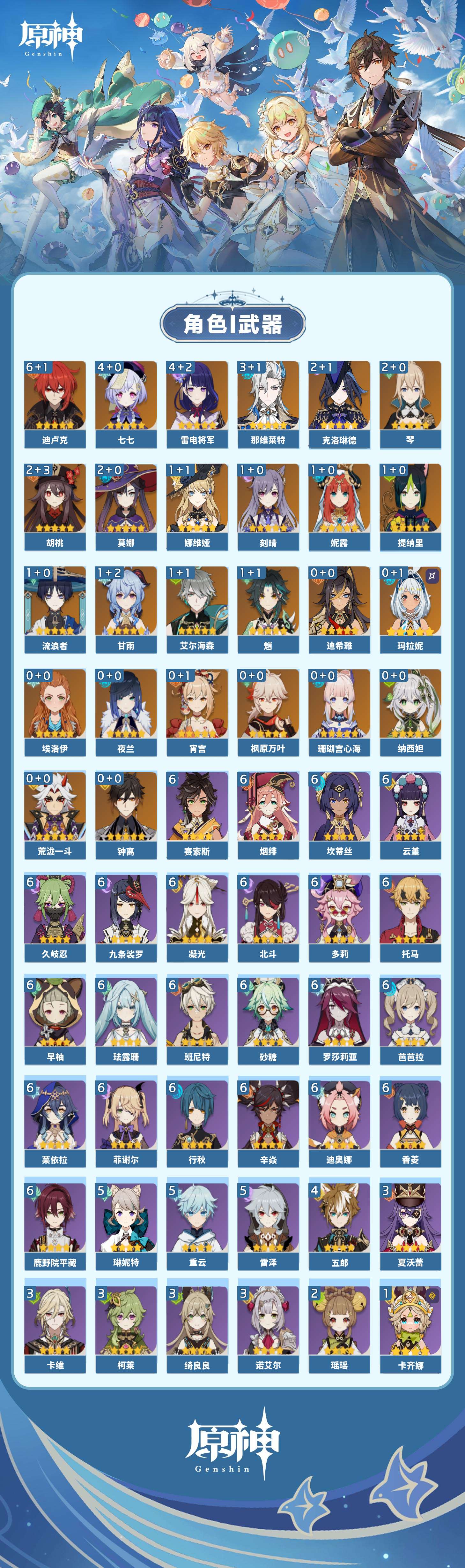 【原神】【lyys7127】冒险等级:60,五星数量:42,五星角色:迪卢克 6命雷电将军 4命七七 4命那维莱特 3命胡桃 2命莫娜 2命琴 2命克洛琳德 2命娜维娅 1命甘雨 1命魈 1命刻晴 1命提纳里 1命妮露 1命艾尔海森 1命流浪者 1命玛拉妮珊瑚宫心海宵宫迪希雅钟离荒泷一斗夜兰纳西妲枫原万叶__五星武器:护摩之杖 3精阿莫斯之弓 2精薙草之稻光 2精冲浪时光万世流涌大典裁断裁叶萃光飞雷之弦振风鹰剑和璞鸢狼的末路四风原典天空之卷天空之刃天空之翼赦罪__四星角色:班尼特 6命行秋 6命九条裟罗 6命香菱 6命久岐忍 6命鹿野院平藏 6命珐露珊 6命凝光 6命迪奥娜 6命砂糖 6命莱依拉 6命坎蒂丝 6命多莉 6命芭芭拉 6命云堇 6命早柚 6命托马 6命烟绯 6命辛焱 6命罗莎莉亚 6命菲谢尔 6命北斗 6命赛索斯 6命重云 5命雷泽 5命琳妮特 5命五郎 4命绮良良 3命柯莱 3命卡维 3命诺艾尔 3命夏沃蕾 3命瑶瑶 2命卡齐娜 1命欧洛伦 1命菲米尼 1命夏洛蒂 1命嘉明 1命埃洛伊米卡蓝砚伊法塔利雅