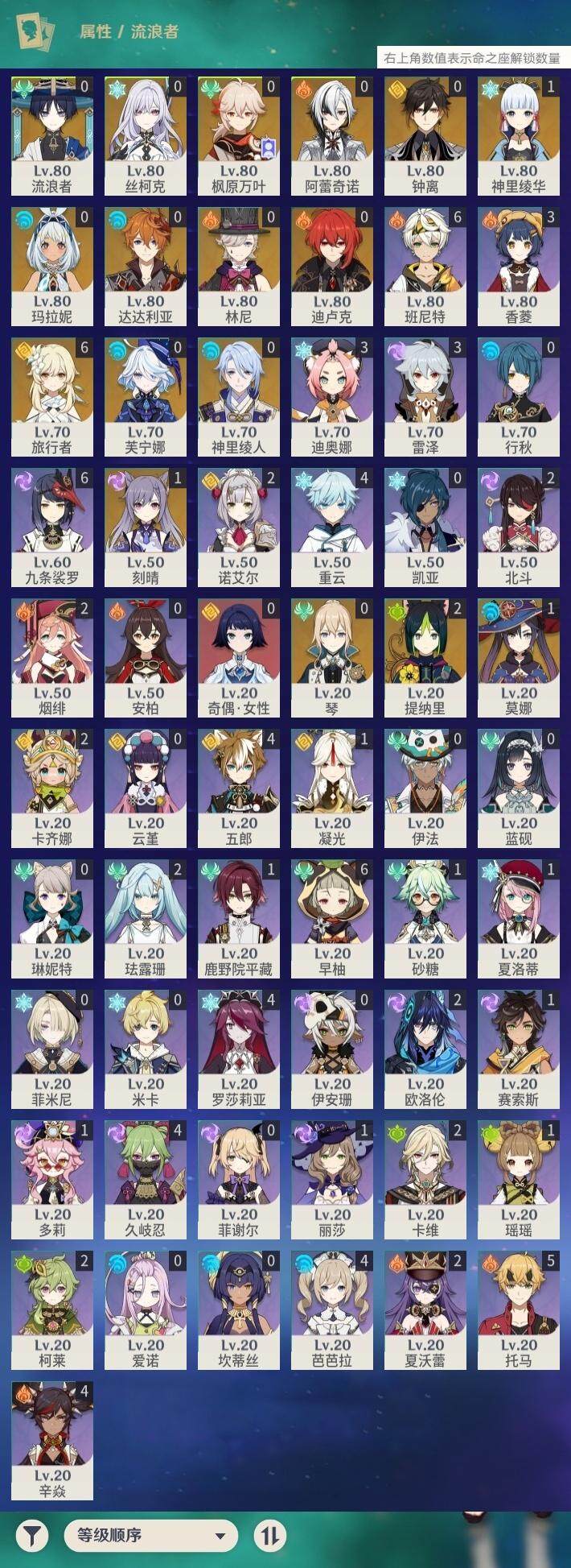 【yszg488】57级/32黄/女主/16个五星角色/9个五星武器/0命流浪者/0命丝柯克/0命枫原万叶/0命阿蕾奇诺/0命钟离/1命神里绫华/0命玛拉妮/0命达达利亚/0命林尼/0命迪卢克/0命芙宁娜/0命神里绫人/1命刻晴/0命琴/2命提纳里/1命莫娜/精1雾切之回光/精1最初的大魔术/精1赤月之形/精1狼的末路/精1静水流涌之辉/精3风鹰剑/精1焚曜千阳/精1有乐御簾切/精1天空之卷