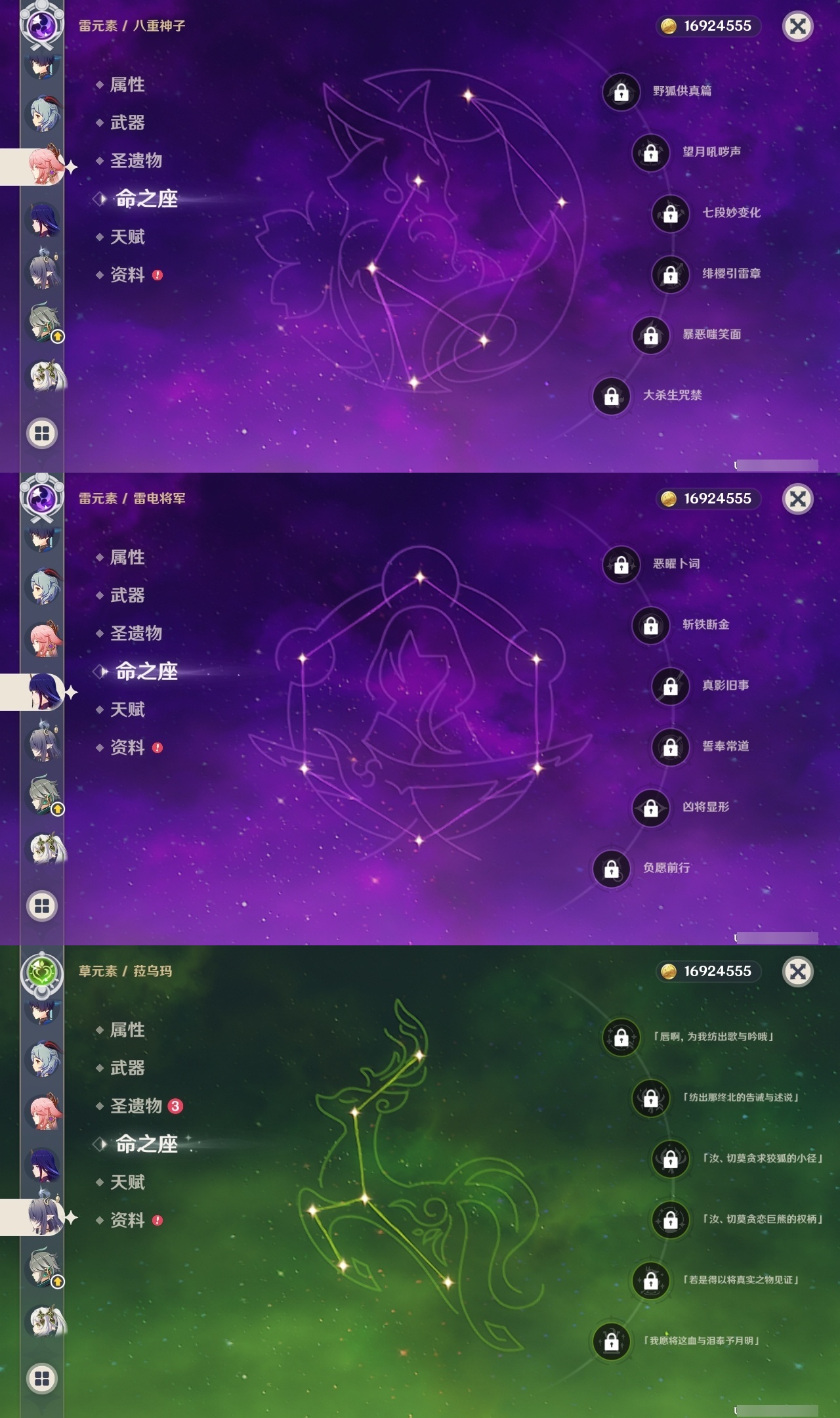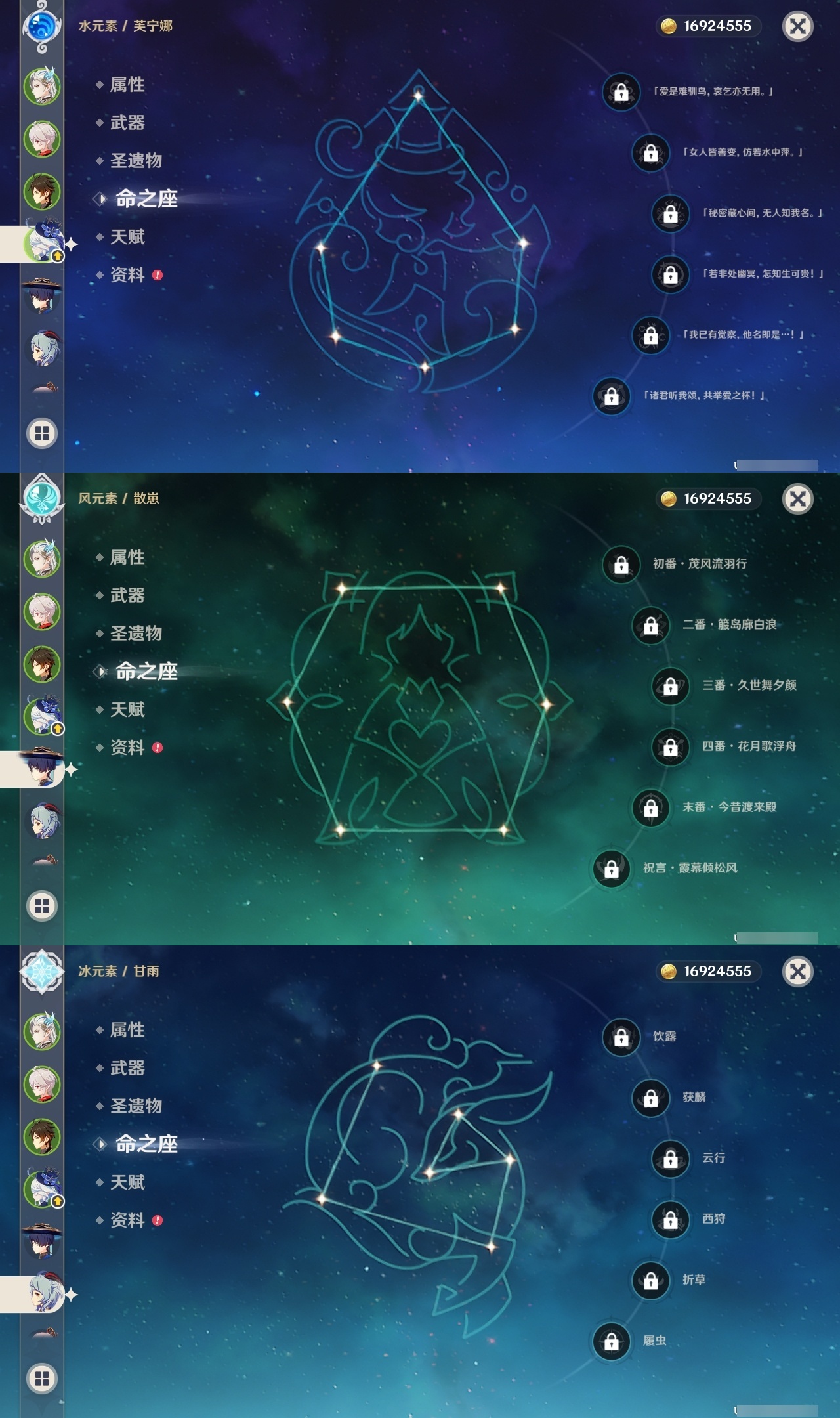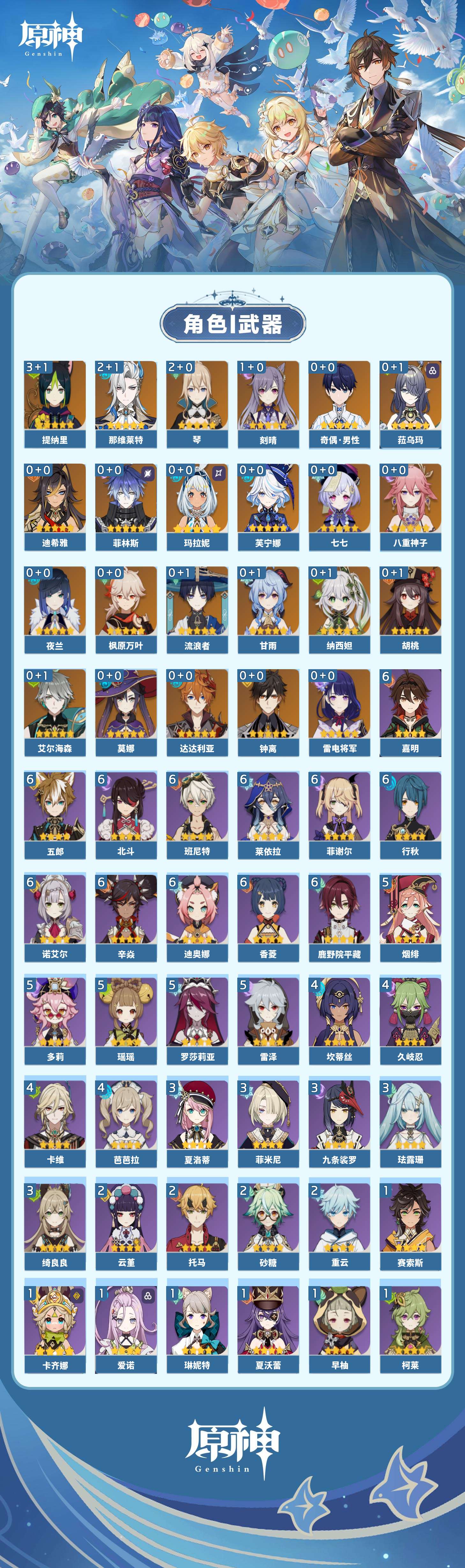 【原神】【lyys7286】冒险等级:60,五星数量:36,五星角色:提纳里 3命那维莱特 2命琴 2命刻晴 1命莫娜七七玛拉妮迪希雅钟离达达利亚八重神子夜兰芙宁娜纳西妲菈乌玛菲林斯艾尔海森流浪者枫原万叶甘雨胡桃雷电将军__五星武器:赤角石溃杵 2精万世流涌大典纺夜天镜裁叶萃光图莱杜拉的回忆阿莫斯之弓风鹰剑护摩之杖狼的末路天空之傲天空之翼猎人之径千夜浮梦__四星角色:班尼特 6命行秋 6命香菱 6命鹿野院平藏 6命迪奥娜 6命莱依拉 6命五郎 6命辛焱 6命诺艾尔 6命菲谢尔 6命北斗 6命嘉明 6命瑶瑶 5命多莉 5命烟绯 5命罗莎莉亚 5命雷泽 5命久岐忍 4命坎蒂丝 4命卡维 4命芭芭拉 4命九条裟罗 3命珐露珊 3命绮良良 3命菲米尼 3命夏洛蒂 3命砂糖 2命云堇 2命托马 2命重云 2命卡齐娜 1命柯莱 1命早柚 1命琳妮特 1命夏沃蕾 1命爱诺 1命赛索斯 1命奇偶·男性凝光米卡