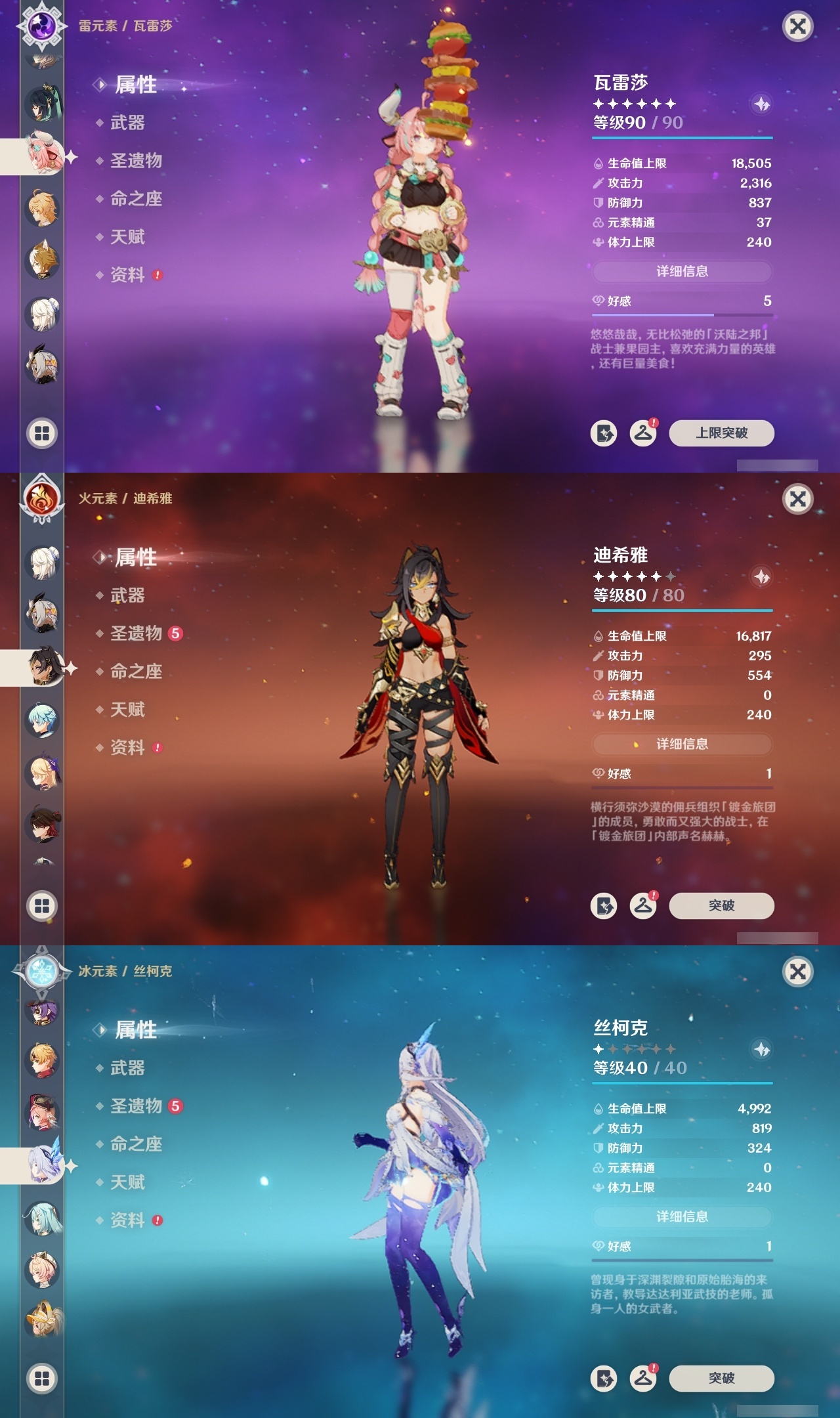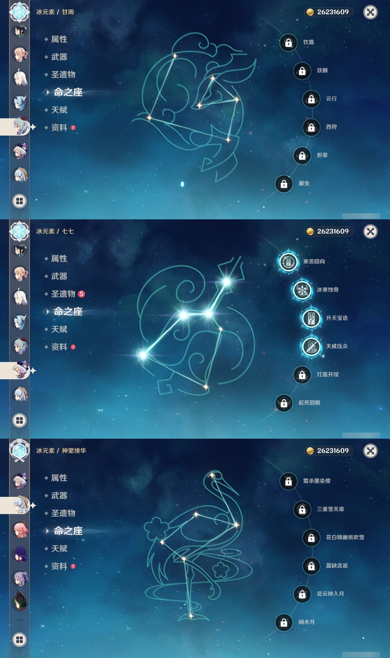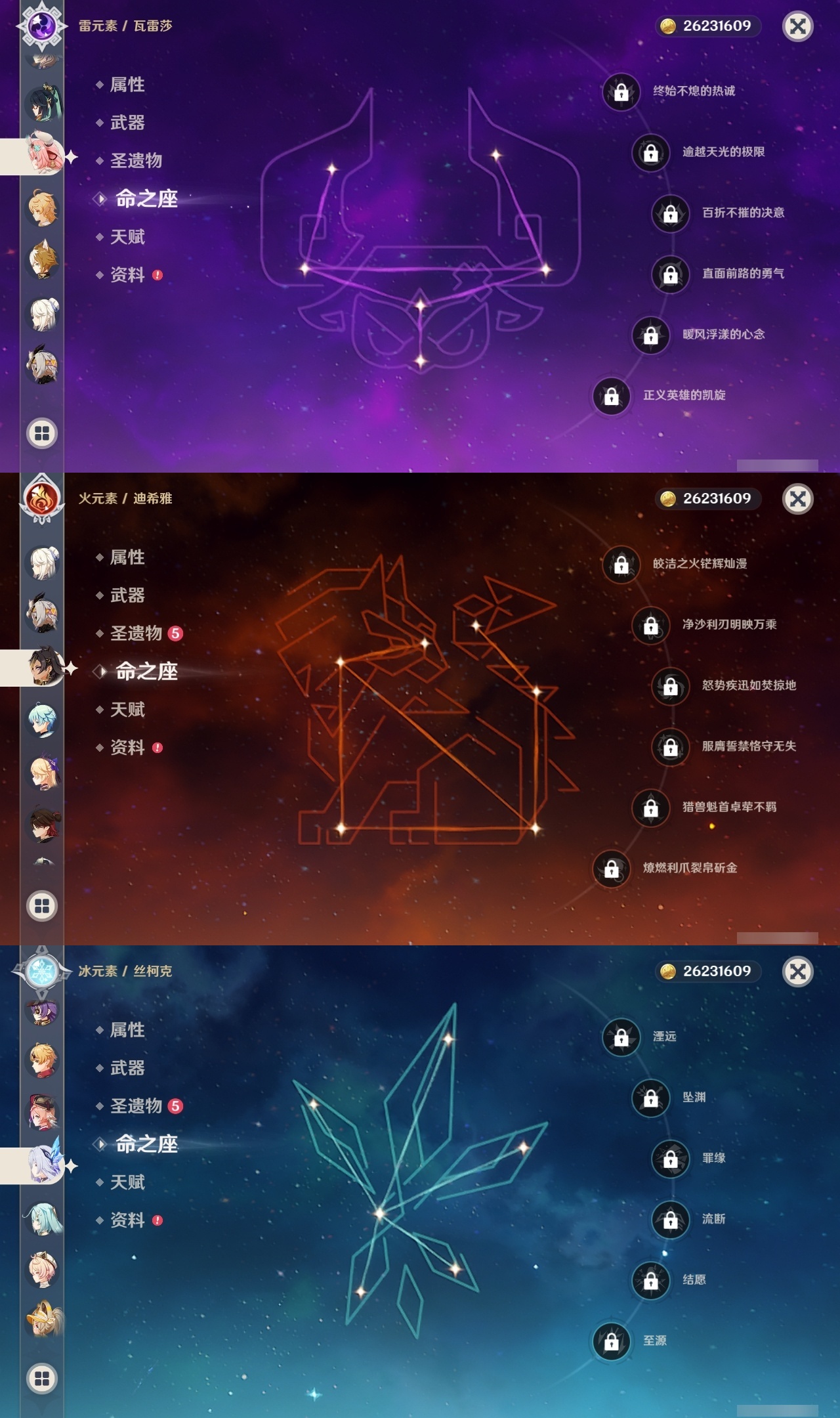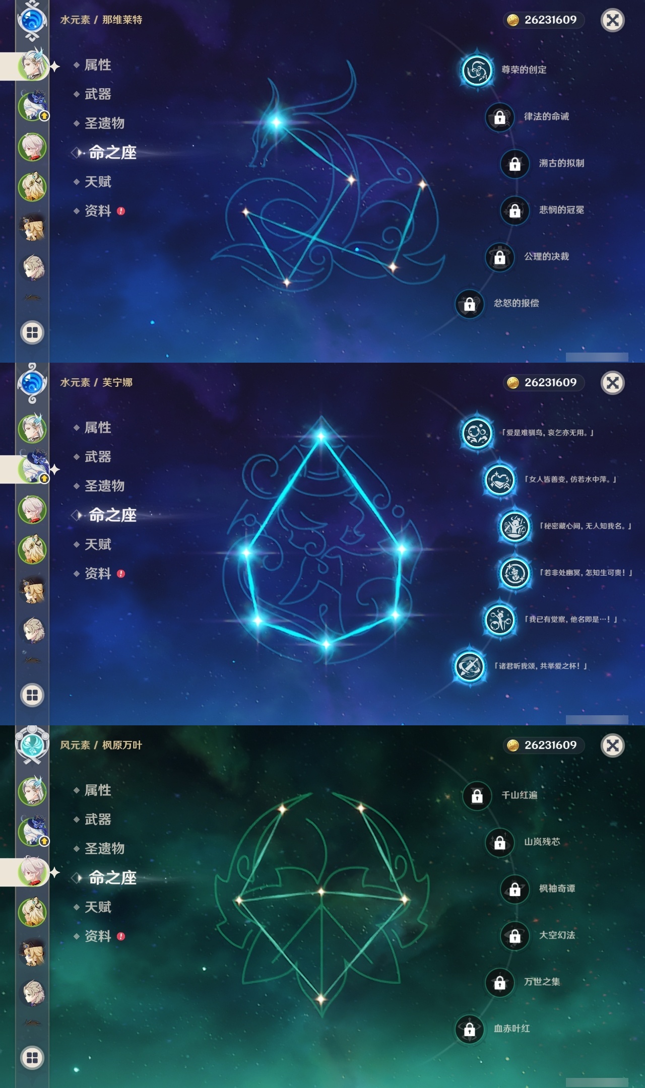 【原神】满命,冒险等级:60,五星数量:58,五星角色:芙宁娜 6命达达利亚 6命刻晴 6命优菈 6命琴 5命七七 4命雷电将军 3命莫娜 3命希诺宁 2命那维莱特 1命魈 1命胡桃 1命温迪 1命阿贝多 1命提纳里 1命神里绫华玛薇卡宵宫迪希雅钟离申鹤瓦雷莎八重神子夜兰娜维娅闲云丝柯克迪卢克枫原万叶甘雨__五星武器:四风原典 3精天空之脊 3精风鹰剑 2精和璞鸢 2精天空之刃 2精岩峰巡歌万世流涌大典静水流涌之辉裁断鹤鸣余音裁叶萃光阿莫斯之弓苍古自由之誓护摩之杖狼的末路松籁响起之时天空之傲天空之卷天空之翼无工之剑雾切之回光薙草之稻光终末嗟叹之诗贯虹之槊若水圣显之钥白雨心弦__四星角色:班尼特 6命行秋 6命九条裟罗 6命香菱 6命鹿野院平藏 6命凝光 6命迪奥娜 6命砂糖 6命瑶瑶 6命莱依拉 6命柯莱 6命芭芭拉 6命早柚 6命托马 6命烟绯 6命重云 6命辛焱 6命诺艾尔 6命罗莎莉亚 6命雷泽 6命菲谢尔 6命北斗 6命嘉明 6命卡维 5命云堇 5命珐露珊 4命坎蒂丝 4命多莉 4命卡齐娜 3命夏洛蒂 3命夏沃蕾 3命久岐忍 2命五郎 2命菲米尼 2命爱诺 2命绮良良 1命米卡 1命欧洛伦 1命琳妮特 1命伊安珊 1命塔利雅 1命埃洛伊蓝砚伊法赛索斯