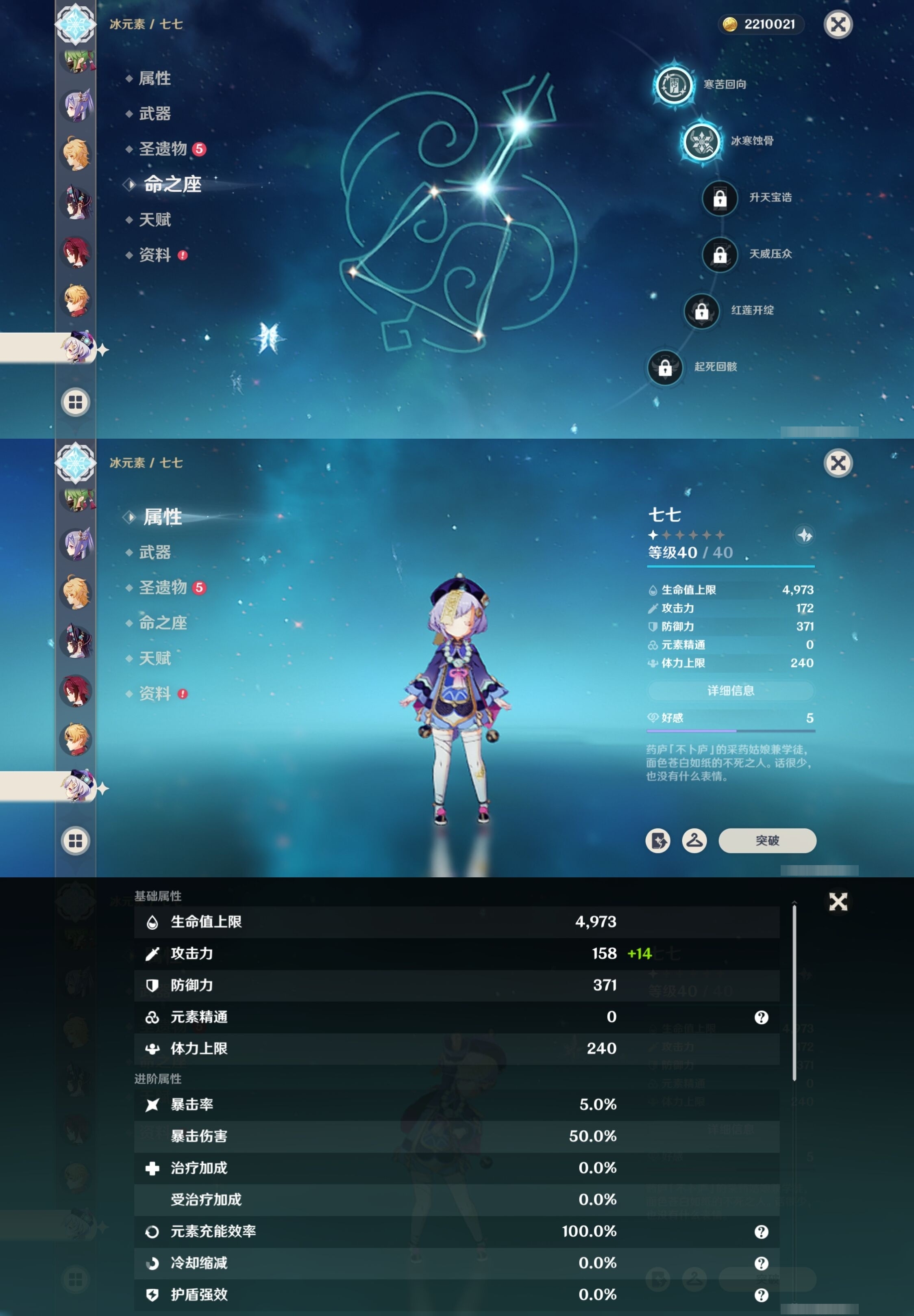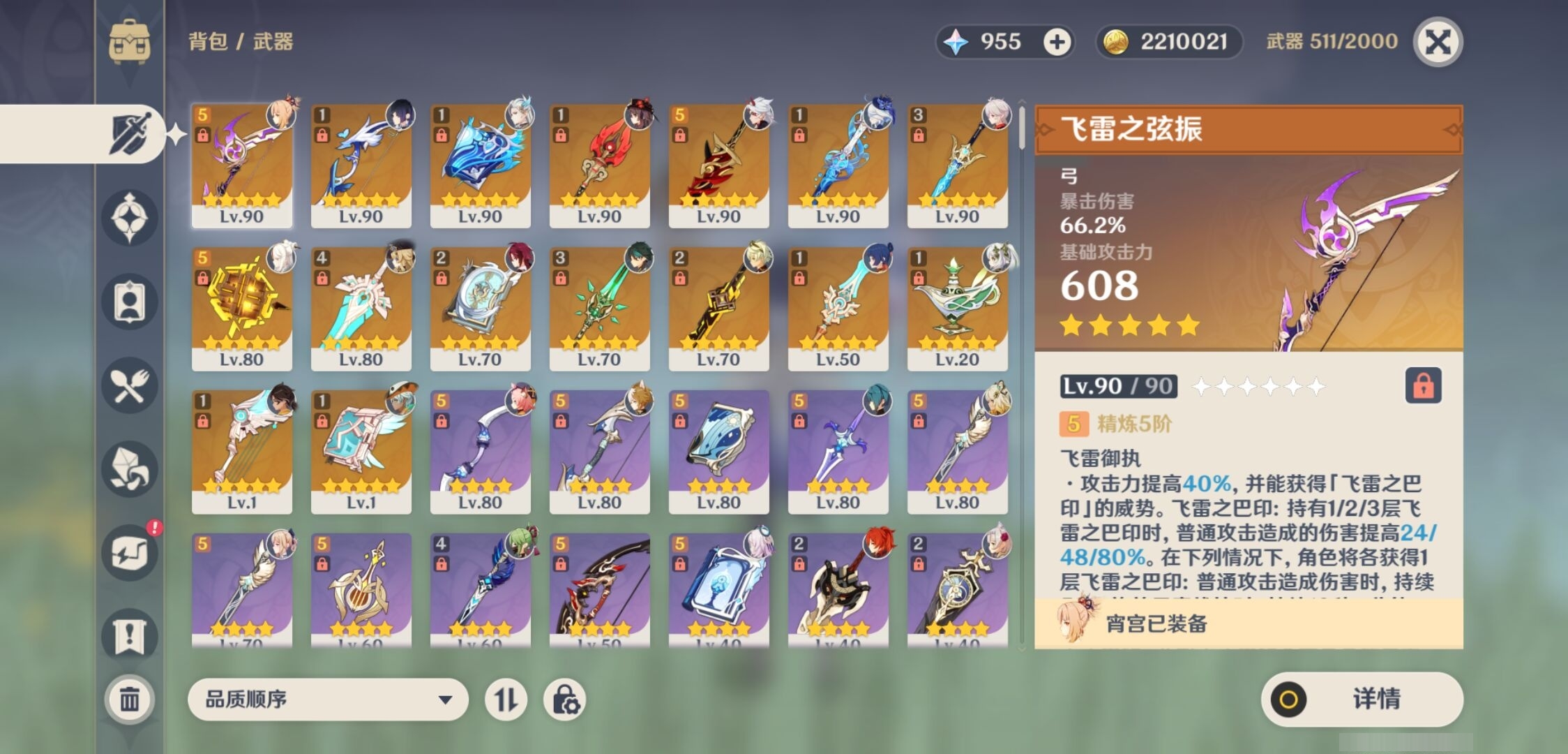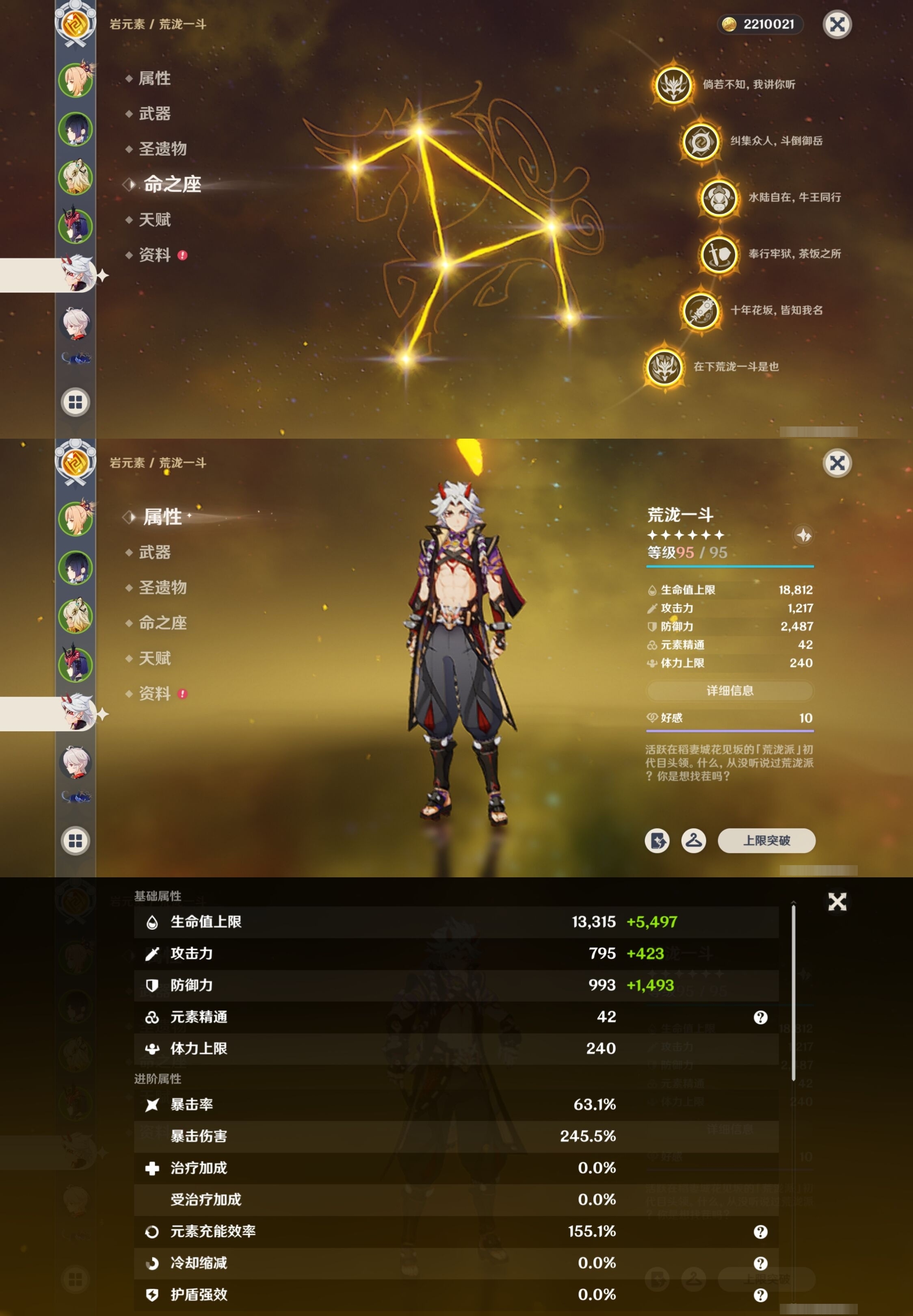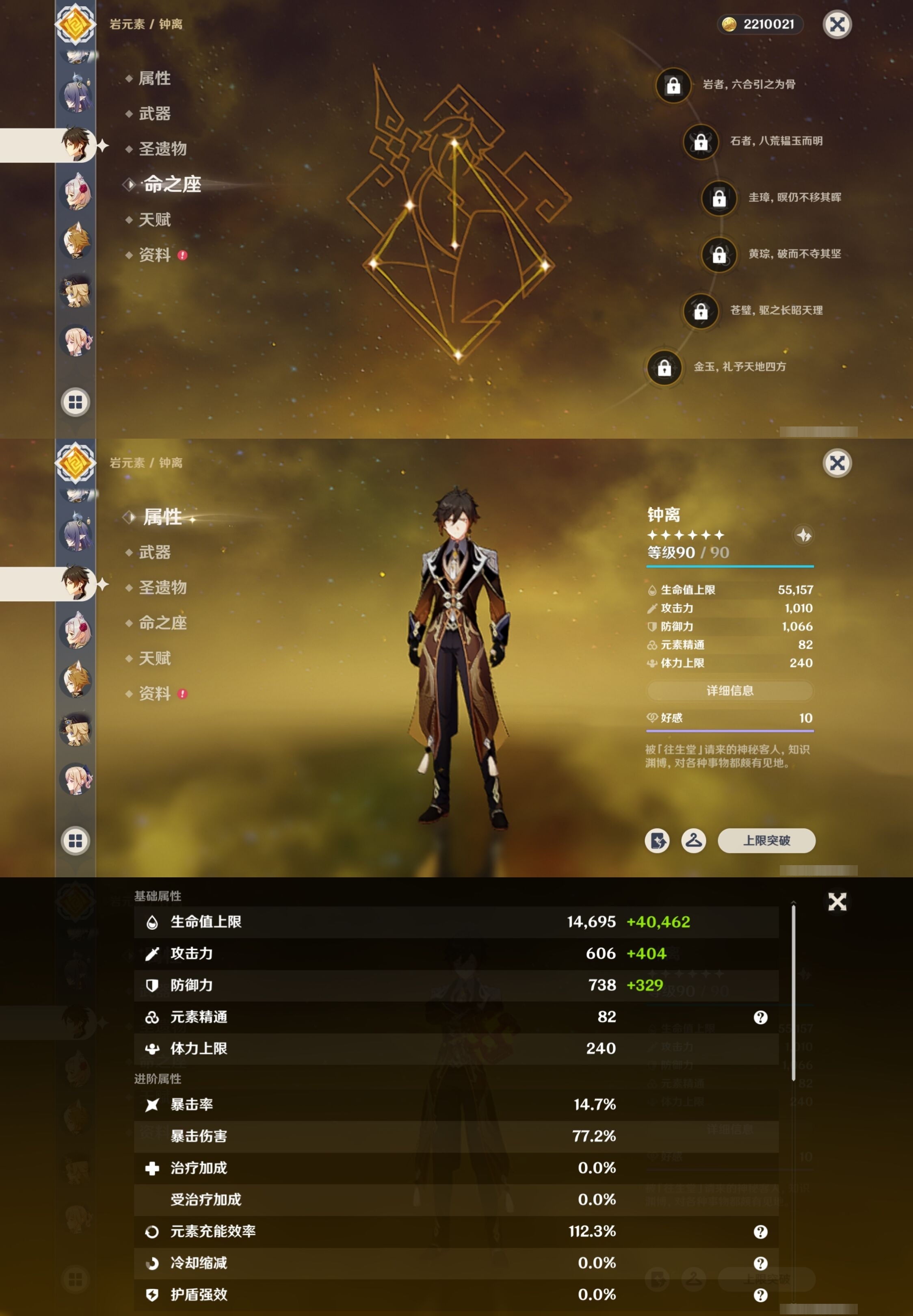 [13333098]110黄 风系:6命枫原万叶/4命琴/0命魈 火系:3命胡桃/4命迪卢克/2命迪希雅/6命宵宫 水系:6命夜兰/2命芙宁娜/1命那维莱特/2命莫娜 冰系:0命茜特菈莉/2命七七 岩系:0命希诺宁/6命荒泷一斗/0命钟离/0命娜维娅 雷系:5命刻晴 草系:2命纳西妲/0命菈乌玛/1命提纳里 [四星角色等级及命座] 风系: 6命鹿野院平藏/2命珐露珊/3命早柚/5命砂糖/0命伊法/1命琳妮特 火系: 6命班尼特/6命香菱/6命托马/3命嘉明/1命烟绯/6命辛焱/2命安柏 水系:6命行秋/6命坎蒂丝/2命芭芭拉/1命爱诺 冰系:6命迪奥娜/6命重云/6命莱依拉/6命罗莎莉亚/1命凯亚/5命夏洛蒂/0命菲米尼 岩系:4命诺艾尔/6命五郎/6命凝光/6命云堇 雷系:2命九条裟罗/6命久岐忍/6命多莉/6命菲谢尔/6命北斗/5命雷泽/1命丽莎/0命伊安珊/0命欧洛伦/0命赛索斯 草系:6命瑶瑶/6命柯莱/2命卡维/1命绮良良 [角色经验书] 紫色26/蓝色62/绿色36 [小物品] 脆弱树脂10/异梦溶媒1/嬗变之尘633 [特殊材料] 东风之翎2/东风之爪1/东风的吐息3/北风之尾2/北风之环4/北风的魂匣/吞天之鲸·只角 魔王之刃·残片8/武炼之魂·孤影6/龙王之冕5/血玉之枝14/鎏金之鳞3/智识之冕4