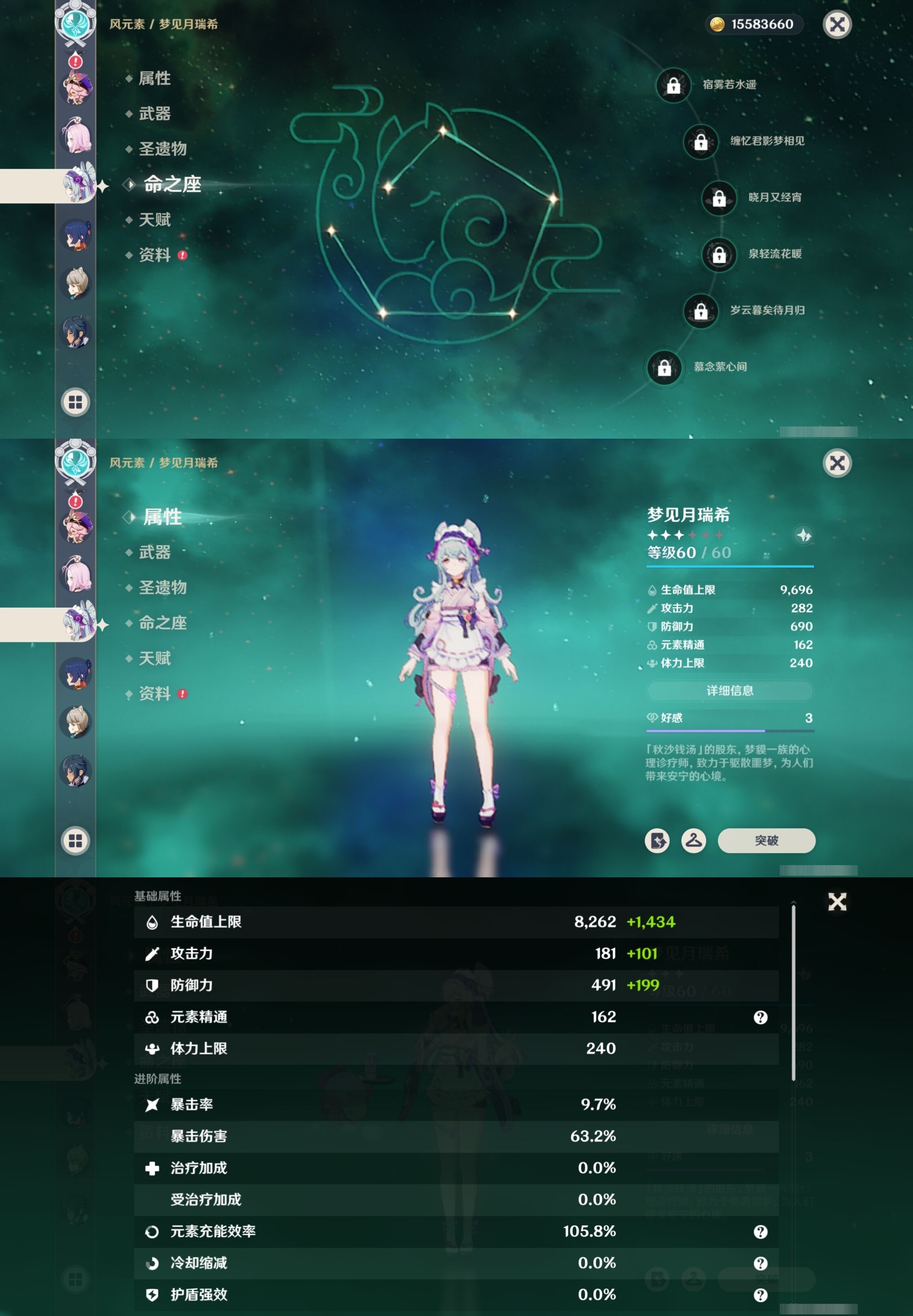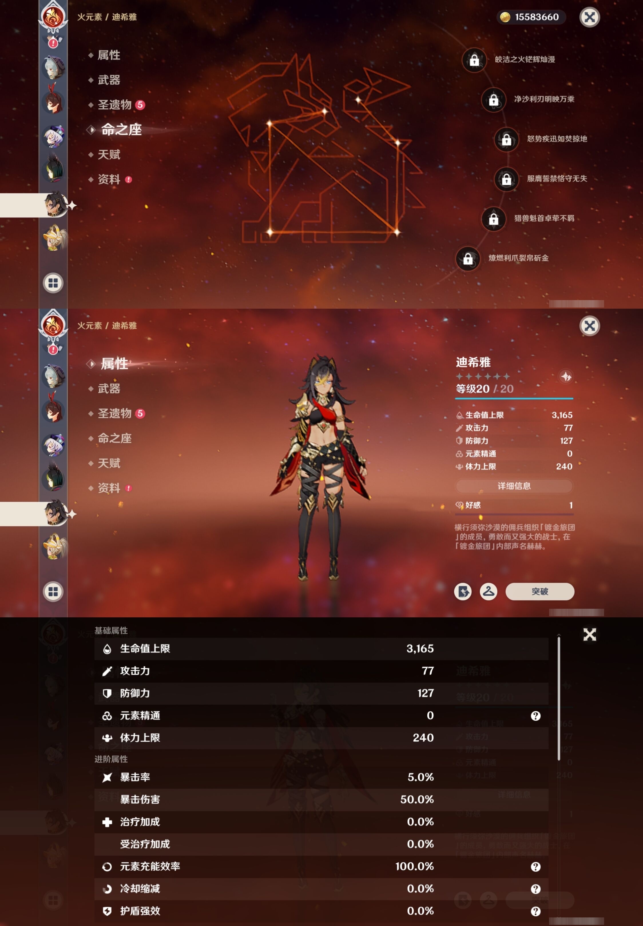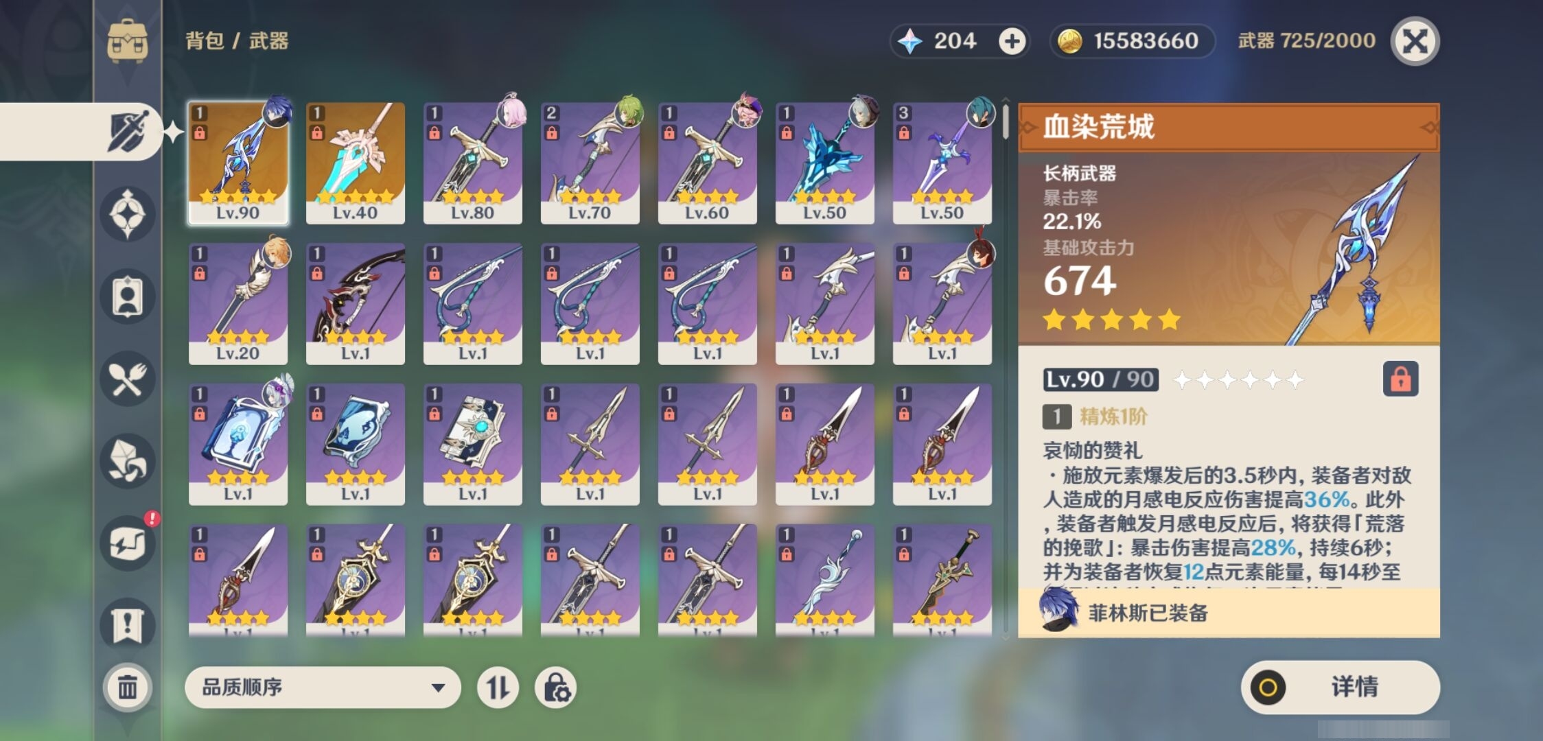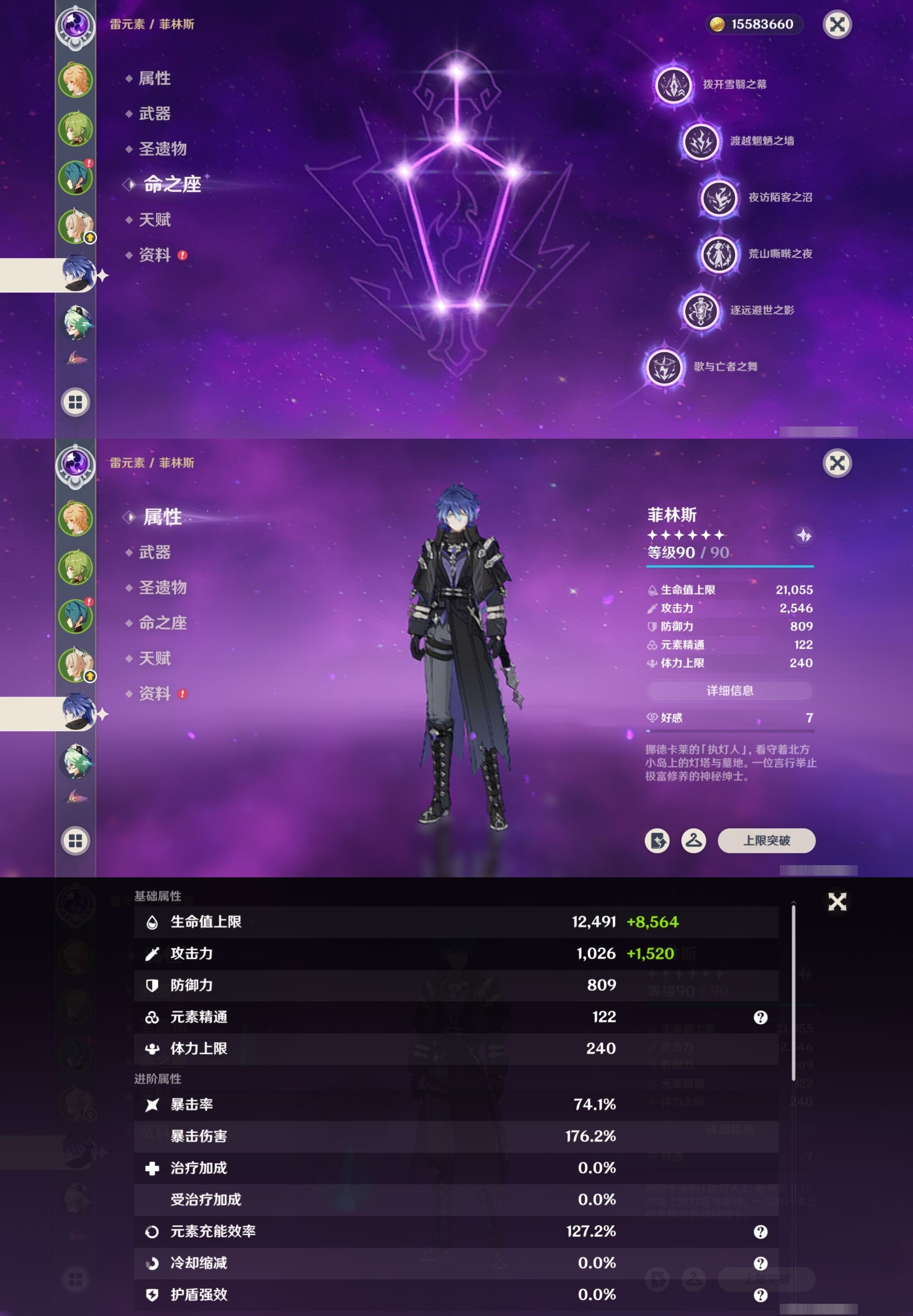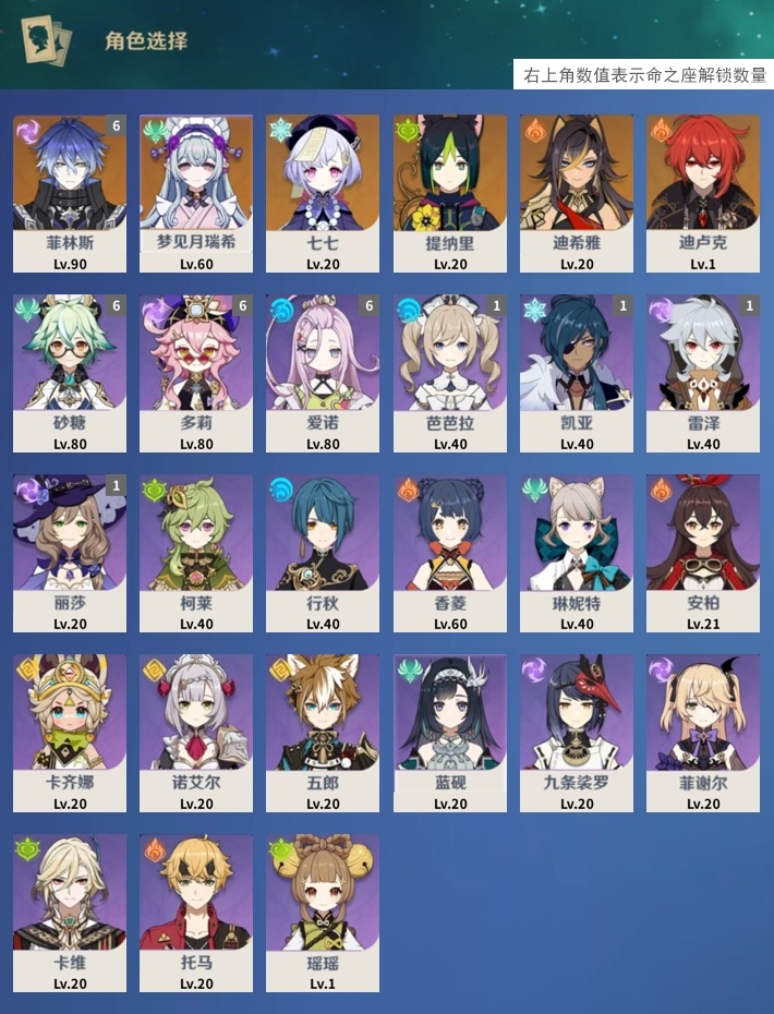 [13396777]14黄 风:0命梦见月瑞希 火:0命迪希雅,0命迪卢克 冰:0命七七 雷:6命菲林斯 草:0命提纳里 双手剑:精1天空之傲 长柄武器:精1血染荒城