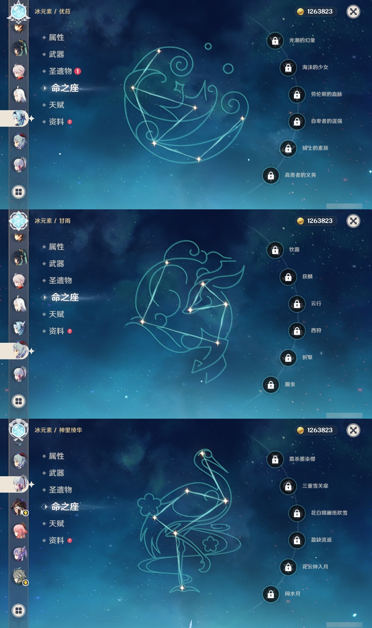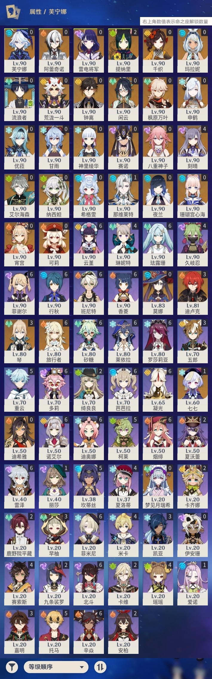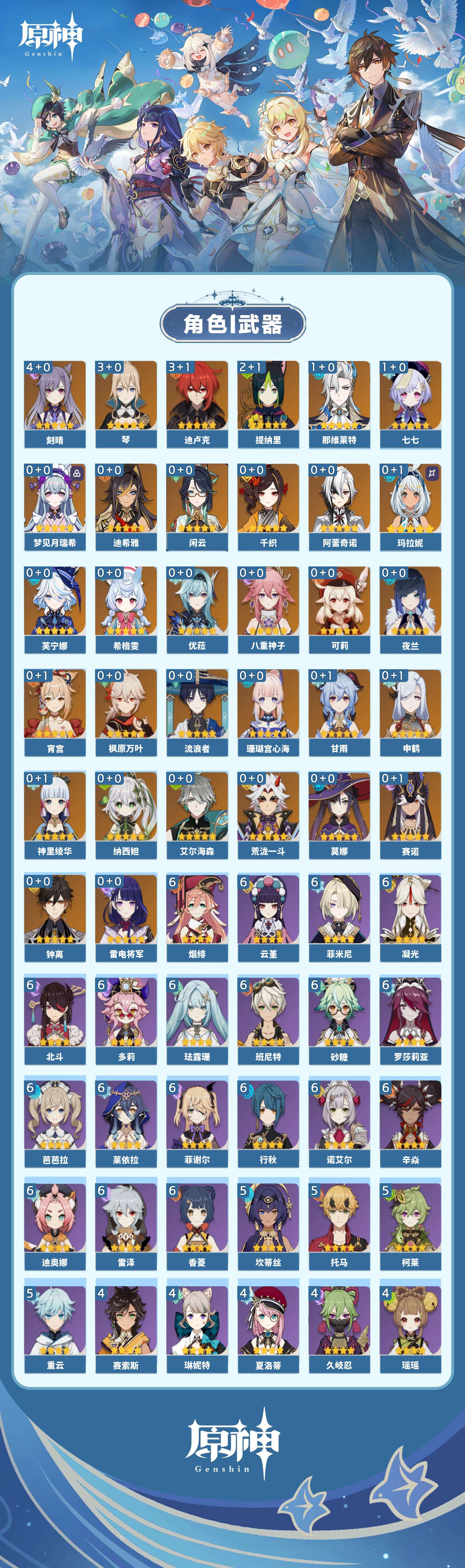 【原神】【lyys7486】冒险等级:60,五星数量:43,五星角色:刻晴 4命迪卢克 3命琴 3命提纳里 2命那维莱特 1命七七 1命莫娜玛拉妮珊瑚宫心海神里绫华宵宫优菈迪希雅钟离荒泷一斗梦见月瑞希申鹤八重神子夜兰芙宁娜闲云千织赛诺阿蕾奇诺纳西妲艾尔海森流浪者枫原万叶甘雨希格雯可莉雷电将军__五星武器:冲浪时光阿莫斯之弓飞雷之弦振狼的末路天空之傲天空之卷天空之翼雾切之回光息灾猎人之径赤沙之杖__四星角色:班尼特 6命行秋 6命香菱 6命珐露珊 6命凝光 6命迪奥娜 6命砂糖 6命莱依拉 6命多莉 6命芭芭拉 6命云堇 6命烟绯 6命辛焱 6命诺艾尔 6命罗莎莉亚 6命雷泽 6命菲谢尔 6命北斗 6命菲米尼 6命坎蒂丝 5命柯莱 5命托马 5命重云 5命久岐忍 4命瑶瑶 4命米卡 4命琳妮特 4命夏洛蒂 4命赛索斯 4命早柚 3命五郎 3命嘉明 3命卡齐娜 2命九条裟罗 2命鹿野院平藏 2命绮良良 2命卡维 2命夏沃蕾 2命爱诺 1命伊安珊