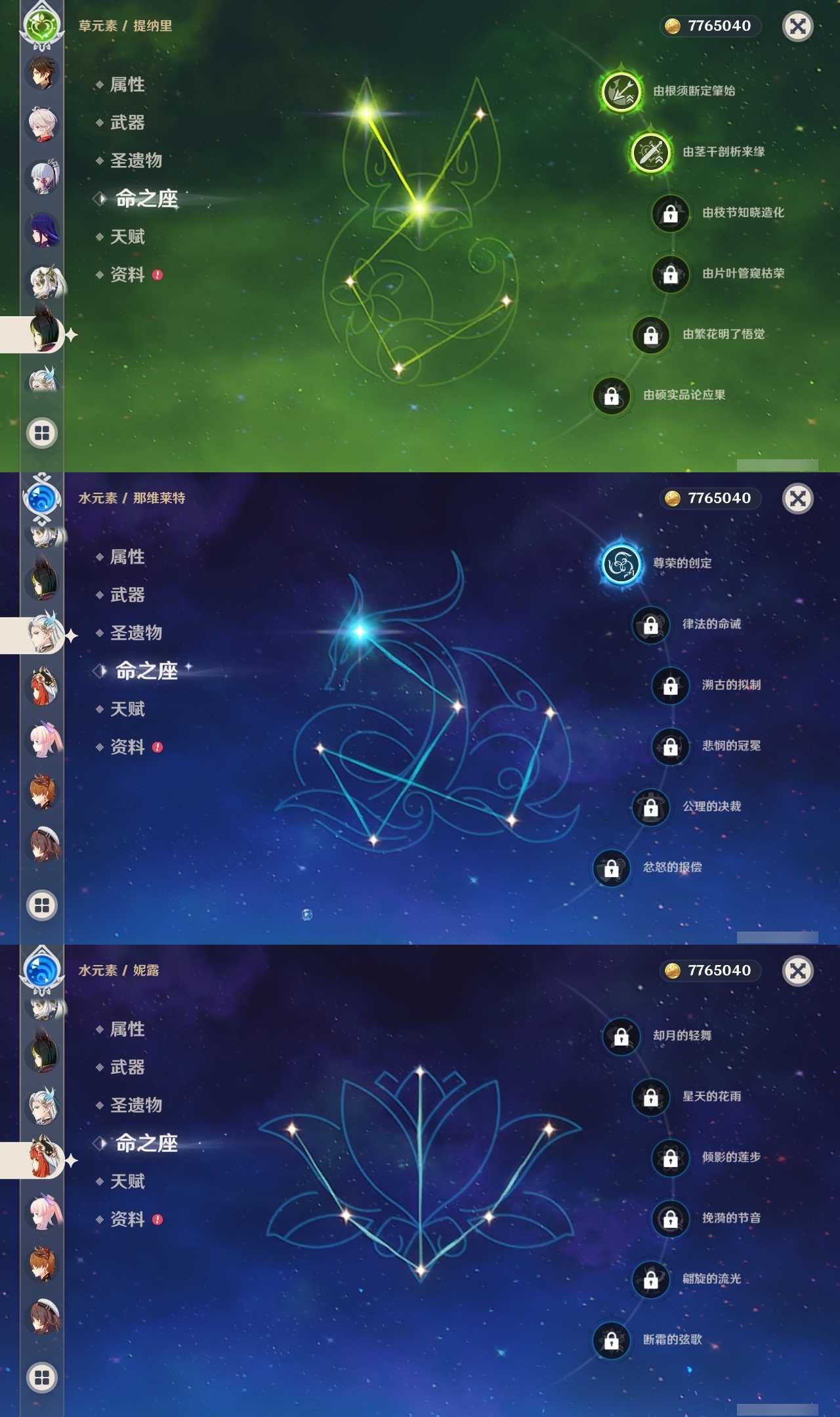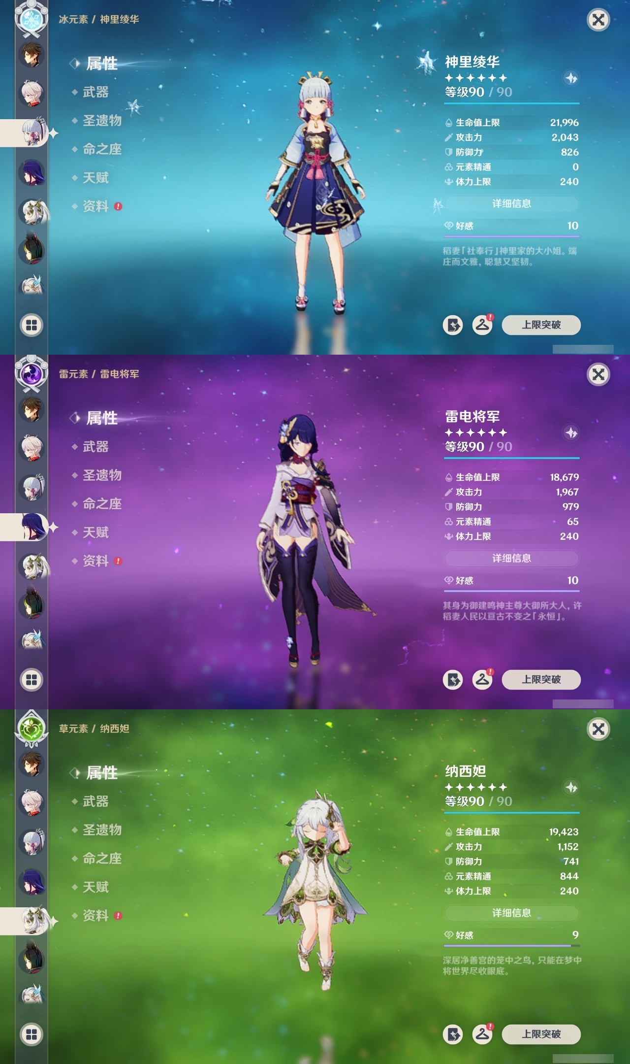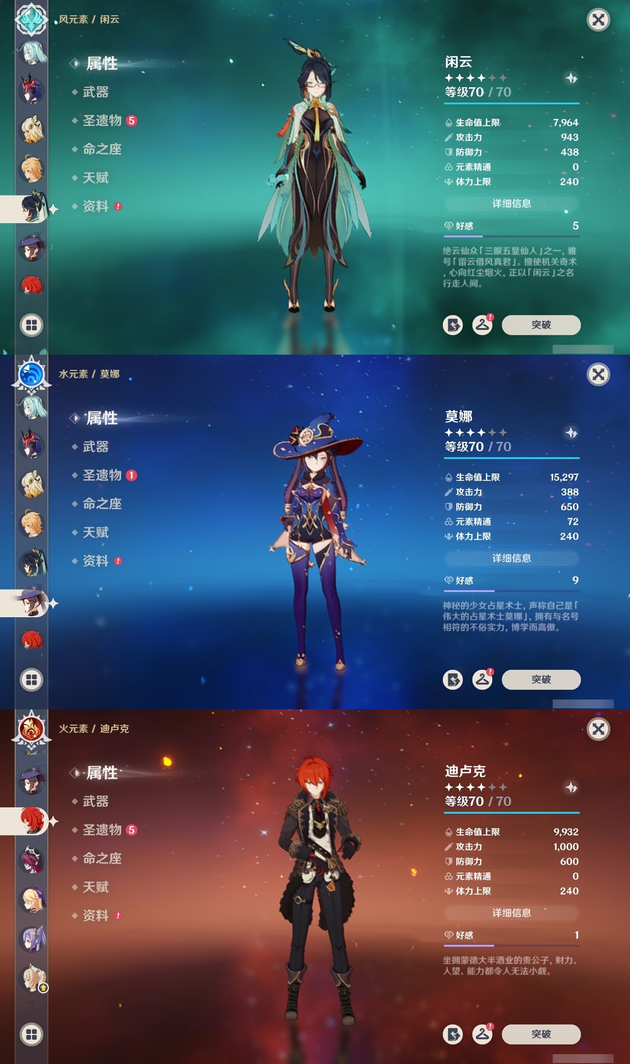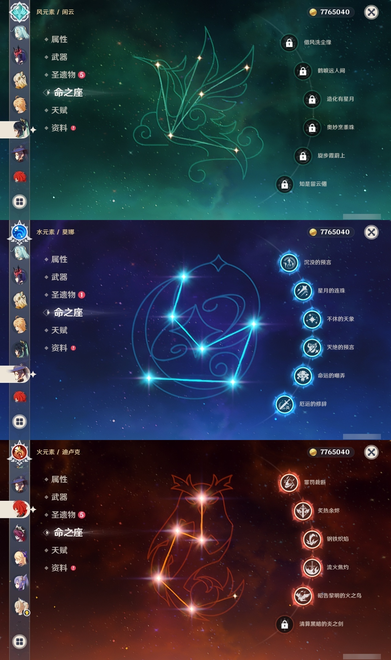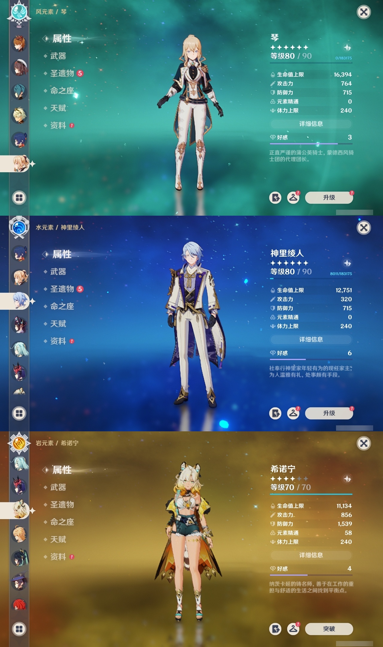 【原神】满命,冒险等级:59,五星数量:50,五星角色:枫原万叶 6命胡桃 6命刻晴 6命莫娜 6命宵宫 6命八重神子 6命夜兰 6命迪卢克 5命琴 4命雷电将军 3命神里绫华 2命提纳里 2命纳西妲 2命那维莱特 1命达达利亚 1命七七 1命珊瑚宫心海希诺宁白术迪希雅钟离梦见月瑞希神里绫人闲云妮露__五星武器:护摩之杖 5精薙草之稻光 5精神乐之真意 5精若水 5精天空之卷 4精波乱月白经津 4精和璞鸢 3精四风原典 3精冬极白星 3精天空之傲 2精圣显之钥 2精万世流涌大典苍耀血染荒城苍古自由之誓飞雷之弦振风鹰剑狼的末路磐岩结绿天空之脊天空之刃雾切之回光猎人之径千夜浮梦__四星角色:班尼特 6命行秋 6命九条裟罗 6命香菱 6命久岐忍 6命鹿野院平藏 6命珐露珊 6命凝光 6命迪奥娜 6命砂糖 6命莱依拉 6命多莉 6命柯莱 6命芭芭拉 6命云堇 6命早柚 6命托马 6命辛焱 6命诺艾尔 6命罗莎莉亚 6命雷泽 6命菲谢尔 6命北斗 6命嘉明 6命坎蒂丝 5命五郎 5命烟绯 5命米卡 4命伊安珊 4命重云 3命琳妮特 3命卡维 2命赛索斯 2命绮良良 1命夏沃蕾 1命奇偶·男性卡齐娜瑶瑶欧洛伦蓝砚菲米尼夏洛蒂伊法爱诺