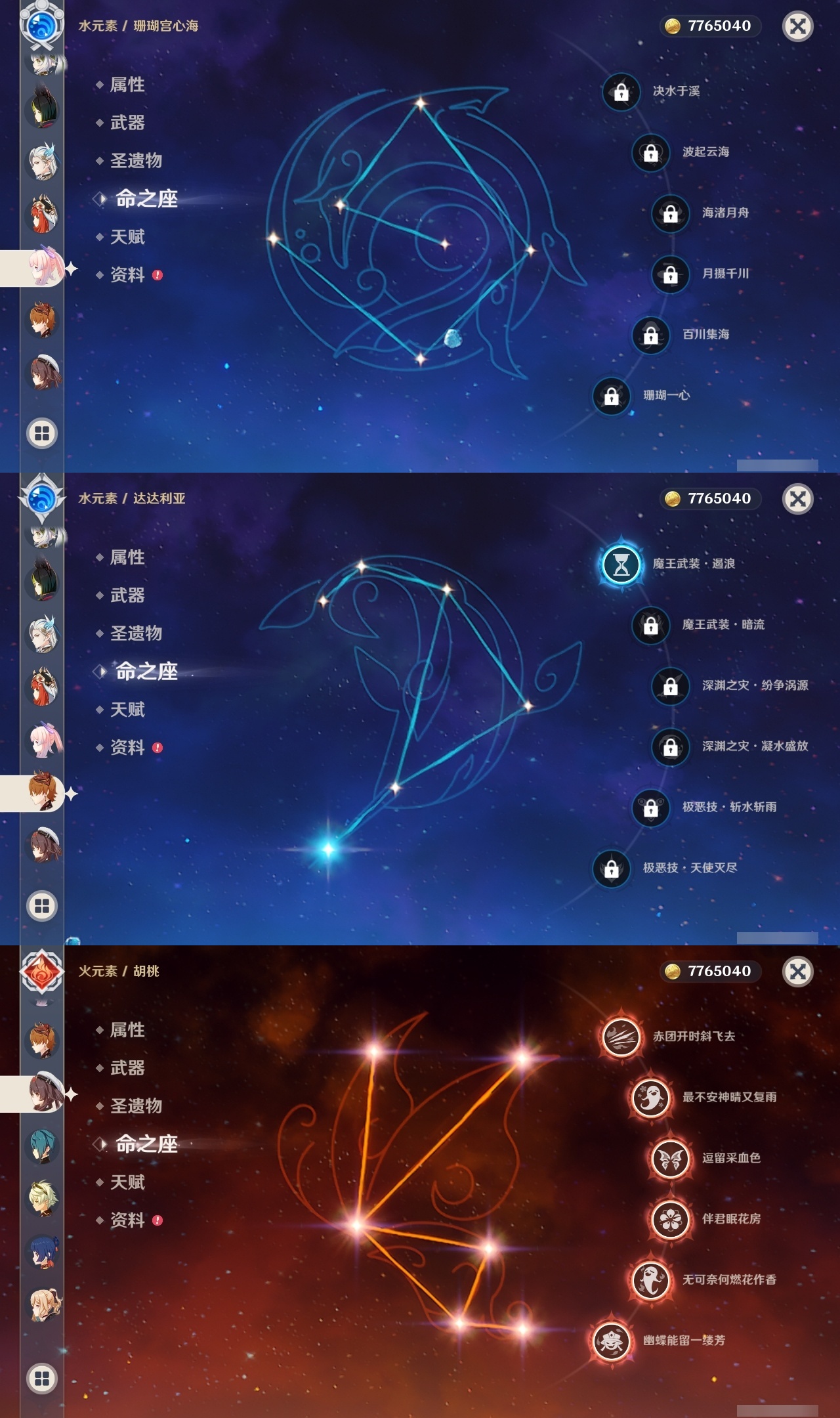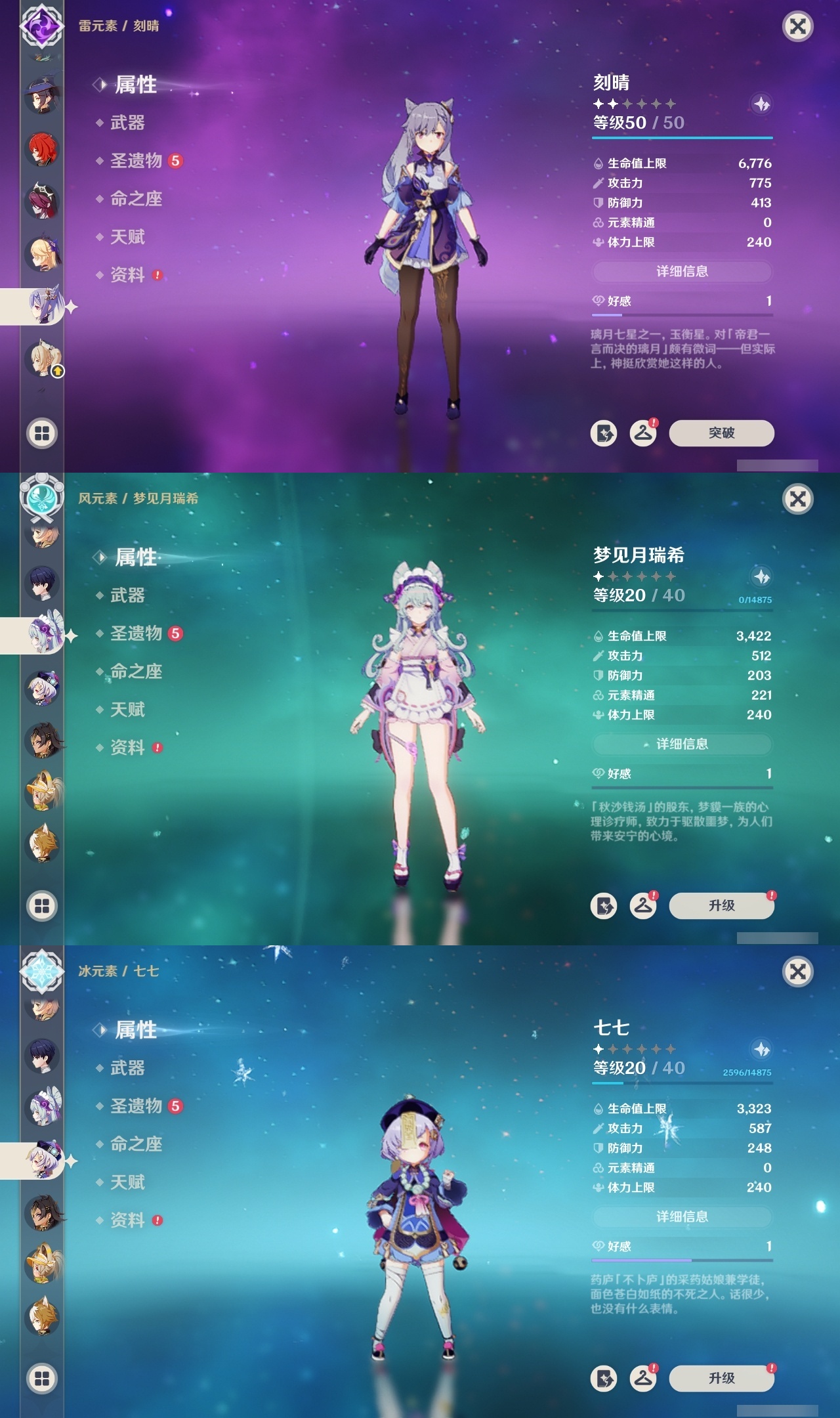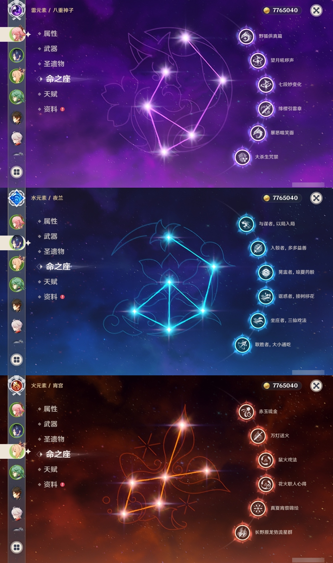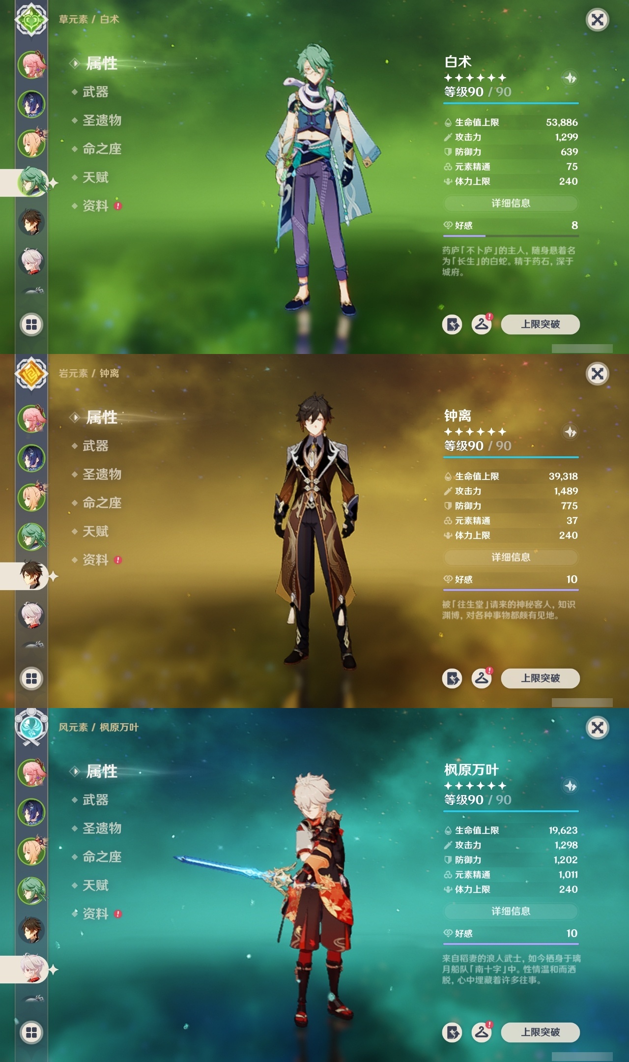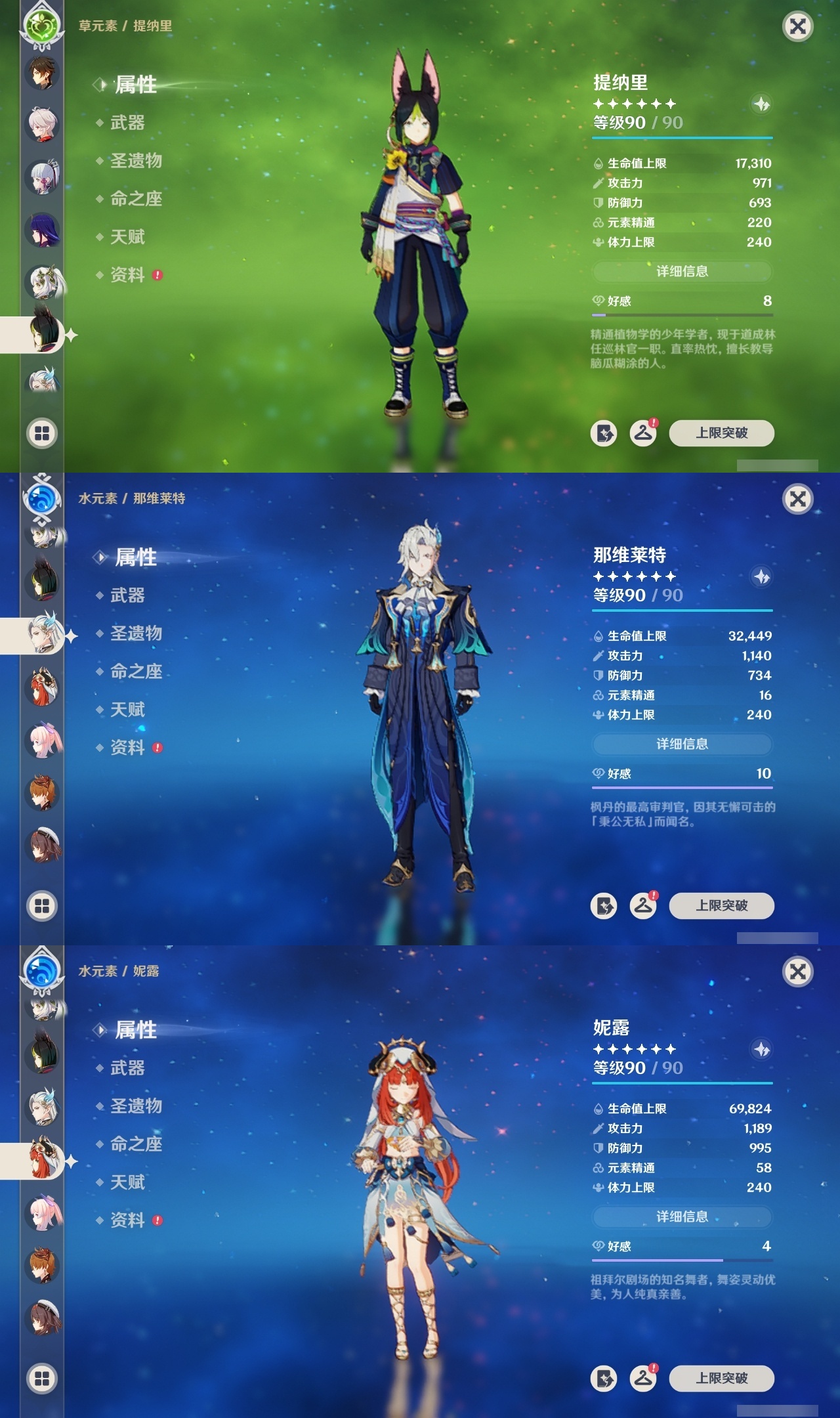 【原神】满命,冒险等级:59,五星数量:50,五星角色:枫原万叶 6命胡桃 6命刻晴 6命莫娜 6命宵宫 6命八重神子 6命夜兰 6命迪卢克 5命琴 4命雷电将军 3命神里绫华 2命提纳里 2命纳西妲 2命那维莱特 1命达达利亚 1命七七 1命珊瑚宫心海希诺宁白术迪希雅钟离梦见月瑞希神里绫人闲云妮露__五星武器:护摩之杖 5精薙草之稻光 5精神乐之真意 5精若水 5精天空之卷 4精波乱月白经津 4精和璞鸢 3精四风原典 3精冬极白星 3精天空之傲 2精圣显之钥 2精万世流涌大典苍耀血染荒城苍古自由之誓飞雷之弦振风鹰剑狼的末路磐岩结绿天空之脊天空之刃雾切之回光猎人之径千夜浮梦__四星角色:班尼特 6命行秋 6命九条裟罗 6命香菱 6命久岐忍 6命鹿野院平藏 6命珐露珊 6命凝光 6命迪奥娜 6命砂糖 6命莱依拉 6命多莉 6命柯莱 6命芭芭拉 6命云堇 6命早柚 6命托马 6命辛焱 6命诺艾尔 6命罗莎莉亚 6命雷泽 6命菲谢尔 6命北斗 6命嘉明 6命坎蒂丝 5命五郎 5命烟绯 5命米卡 4命伊安珊 4命重云 3命琳妮特 3命卡维 2命赛索斯 2命绮良良 1命夏沃蕾 1命奇偶·男性卡齐娜瑶瑶欧洛伦蓝砚菲米尼夏洛蒂伊法爱诺