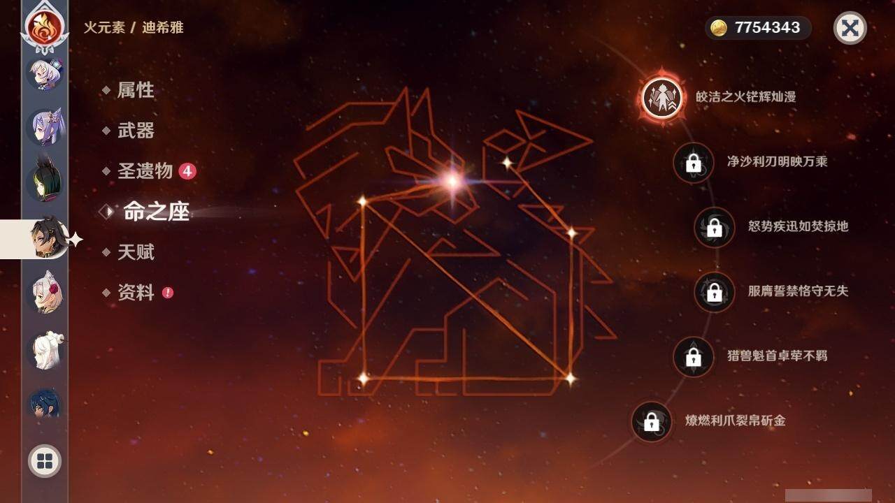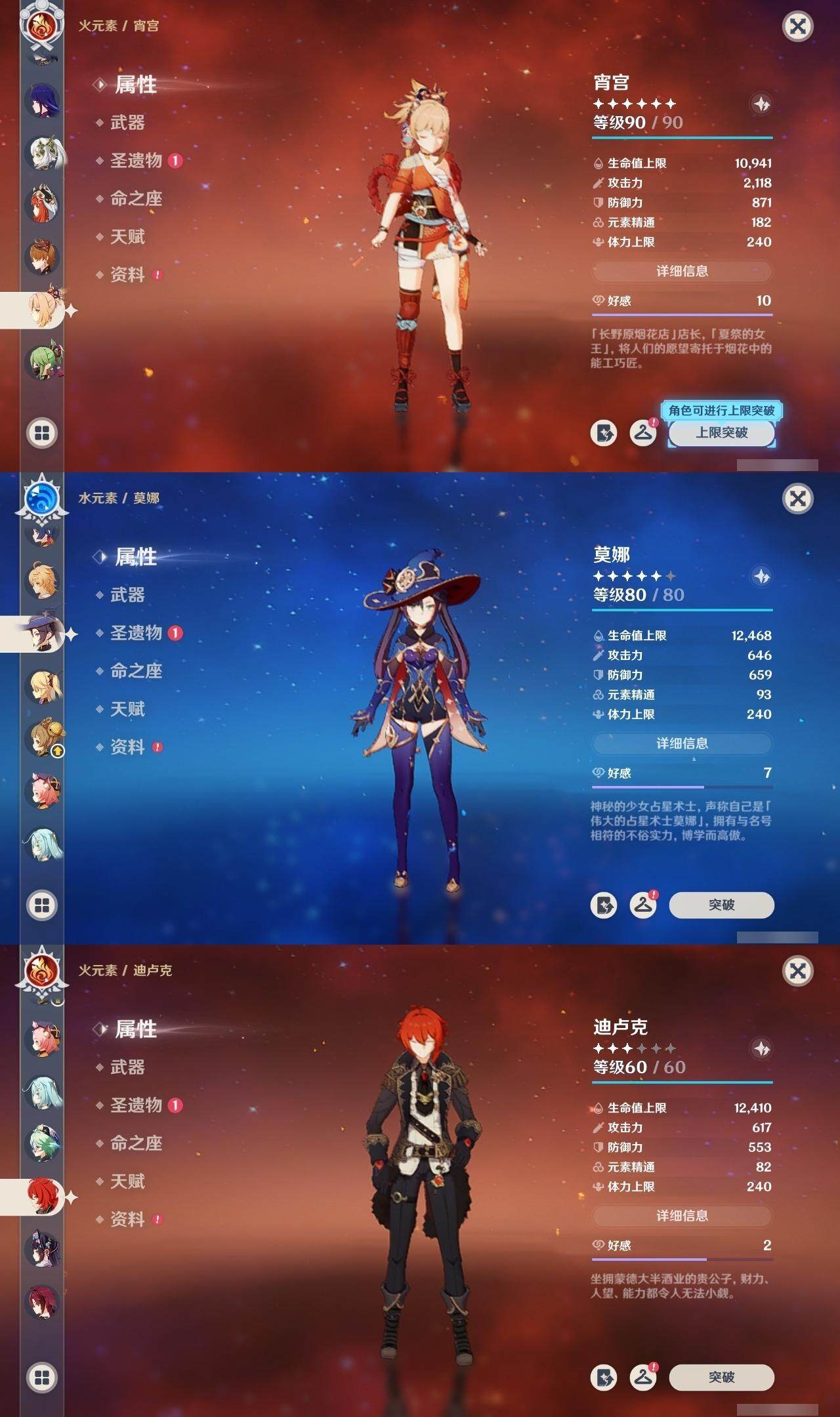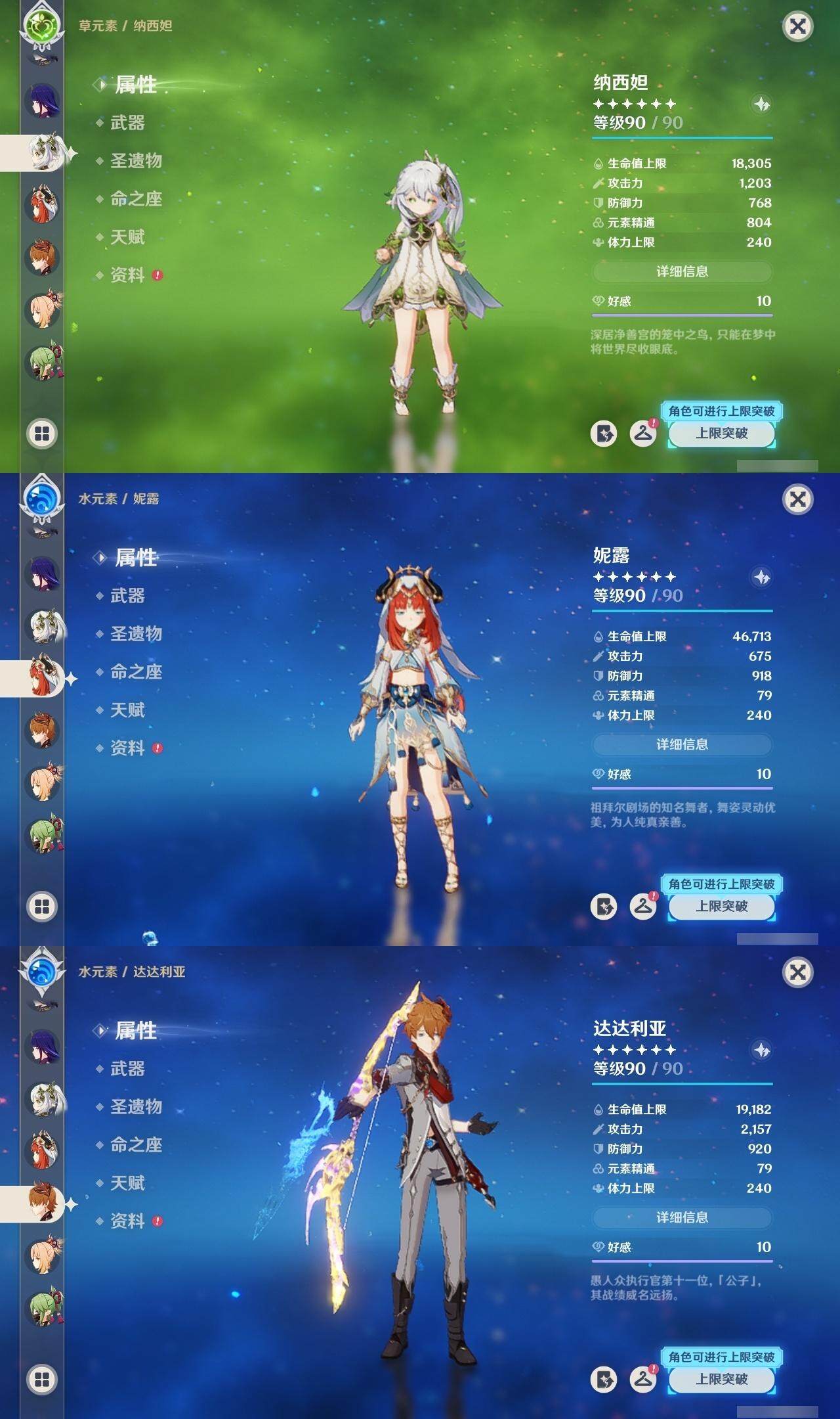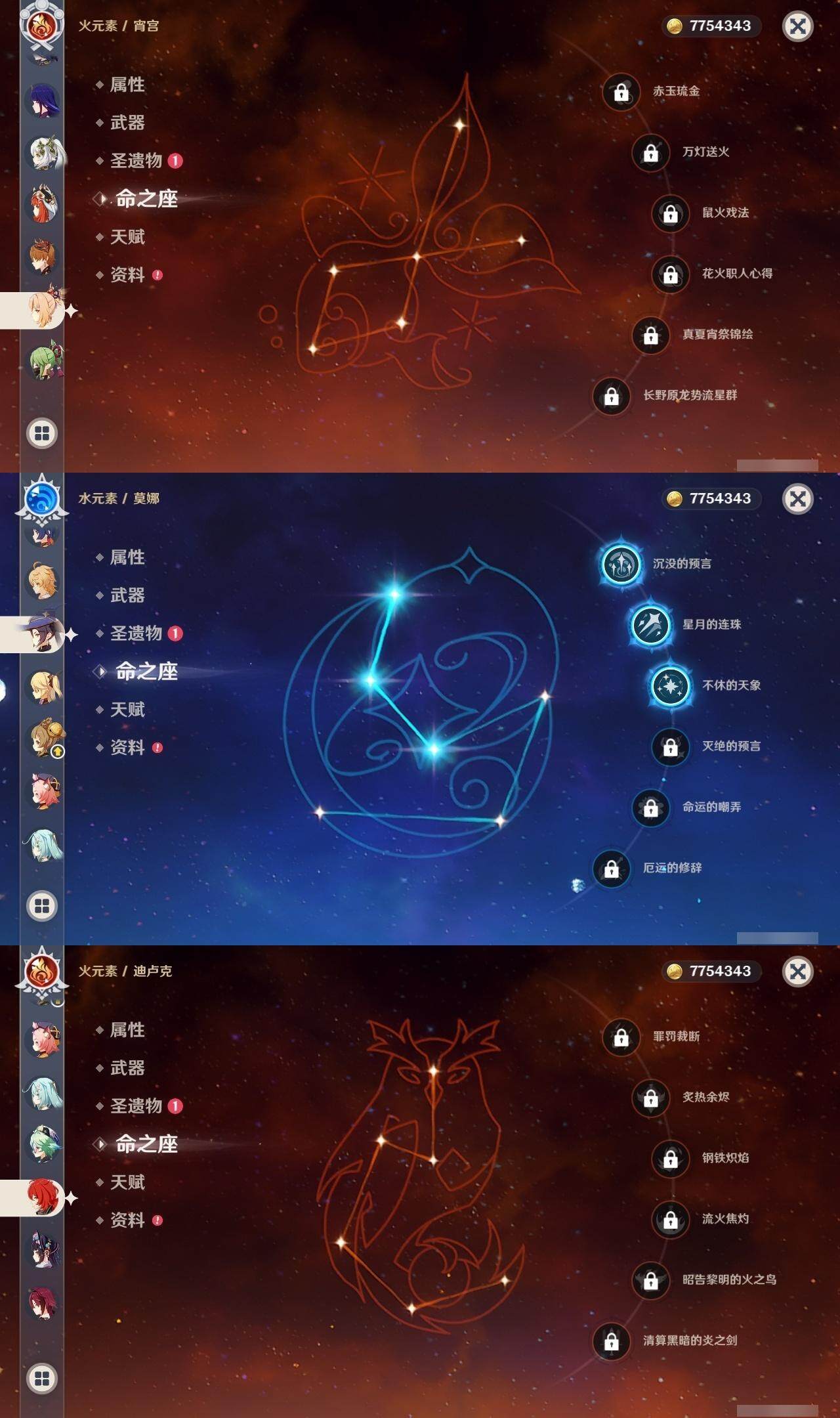 59级/38黄/男主/19个五星角色/10个五星武器 0命克洛琳德0命娜维娅0命芙宁娜1命迪希雅0命纳西妲0命妮露0命提纳里0命雷电将军0命枫原万叶0命神里绫华0命钟离0命魈0命宵宫1命达达利亚1命刻晴1命七七3命莫娜0命迪卢克0命基尼奇精1最初的大魔术精1波乱月白经津精1息灾精2飞雷之弦振精1雾切之回光精1护摩之杖精1和璞鸢精1贯虹之槊精2天空之刃精1天空之傲