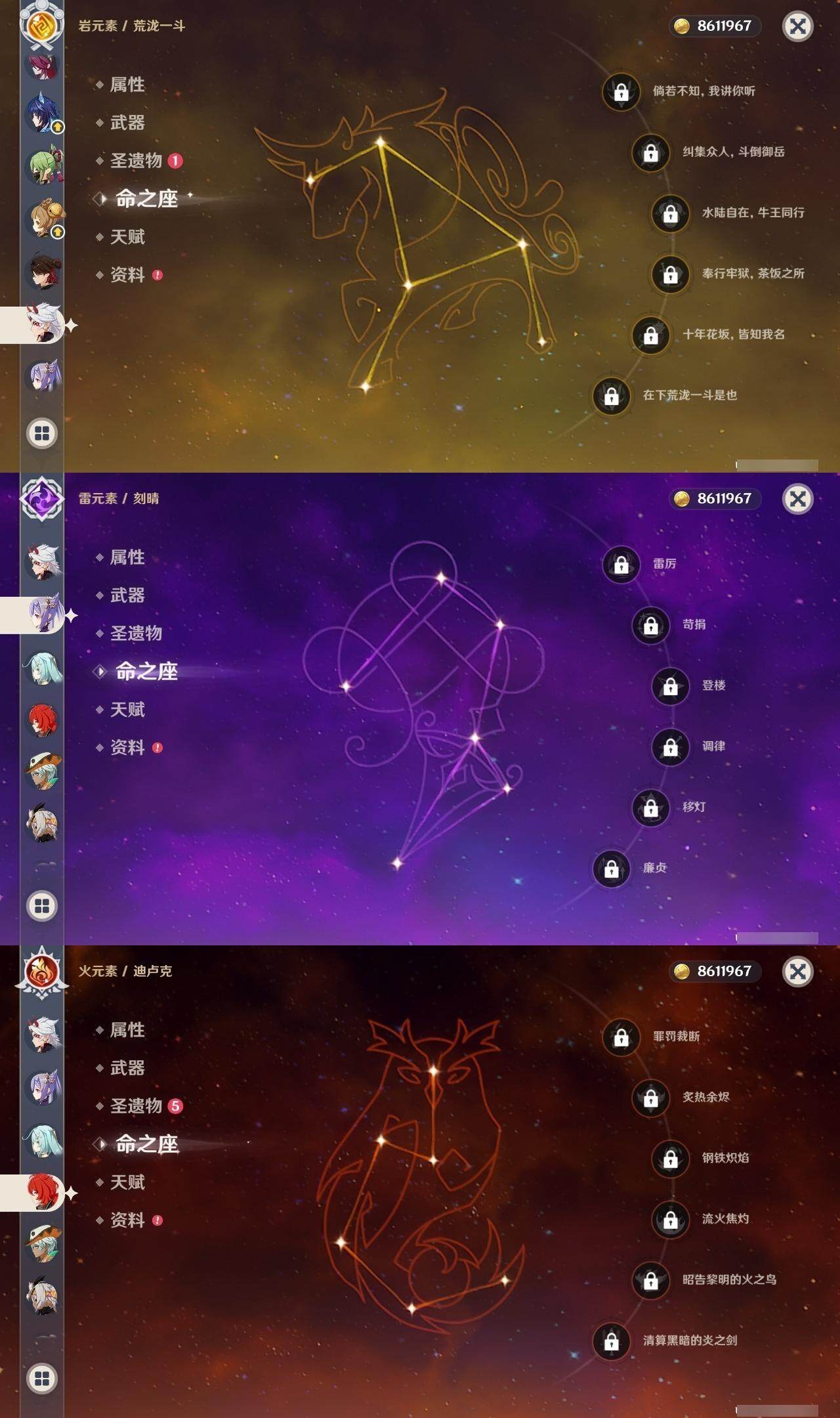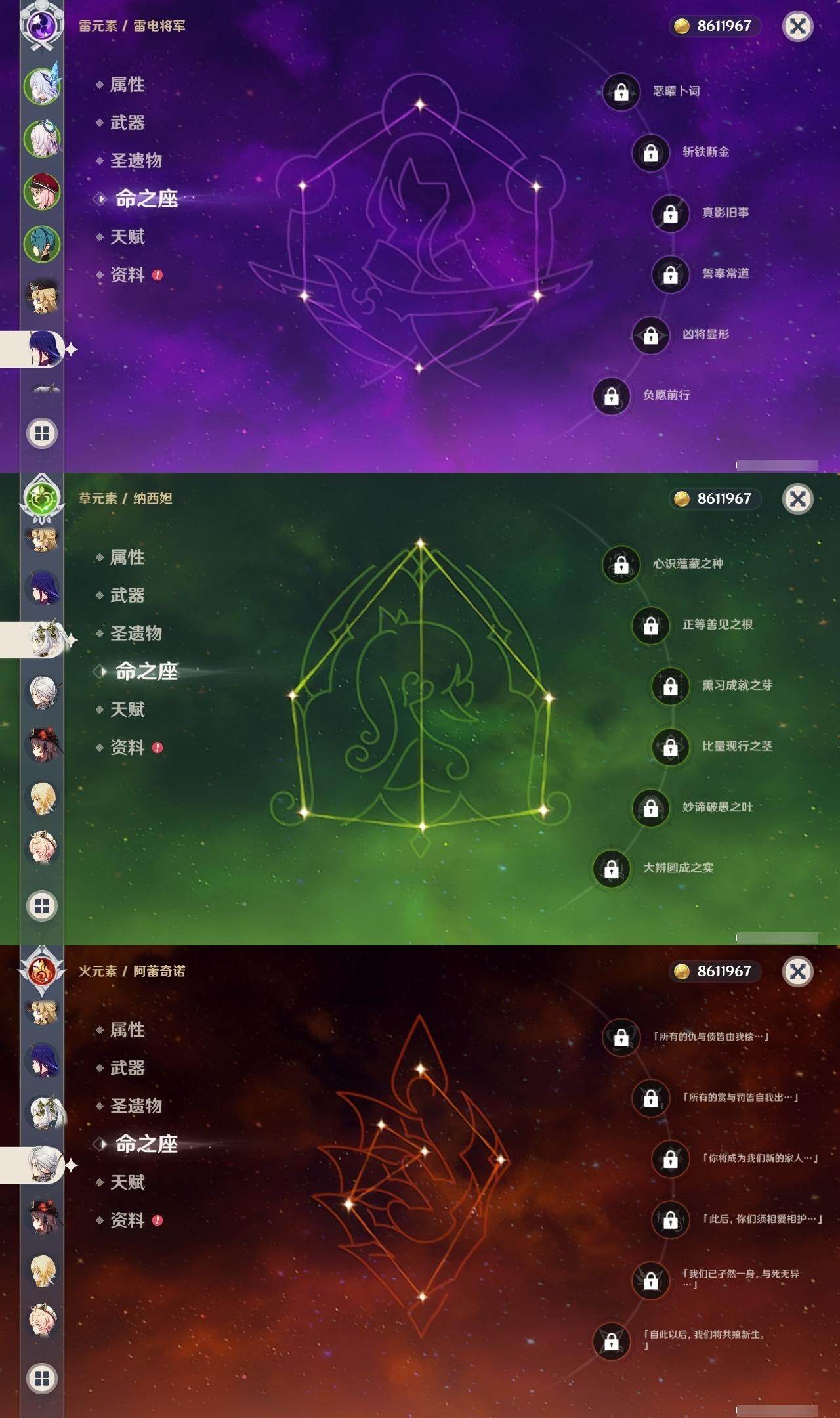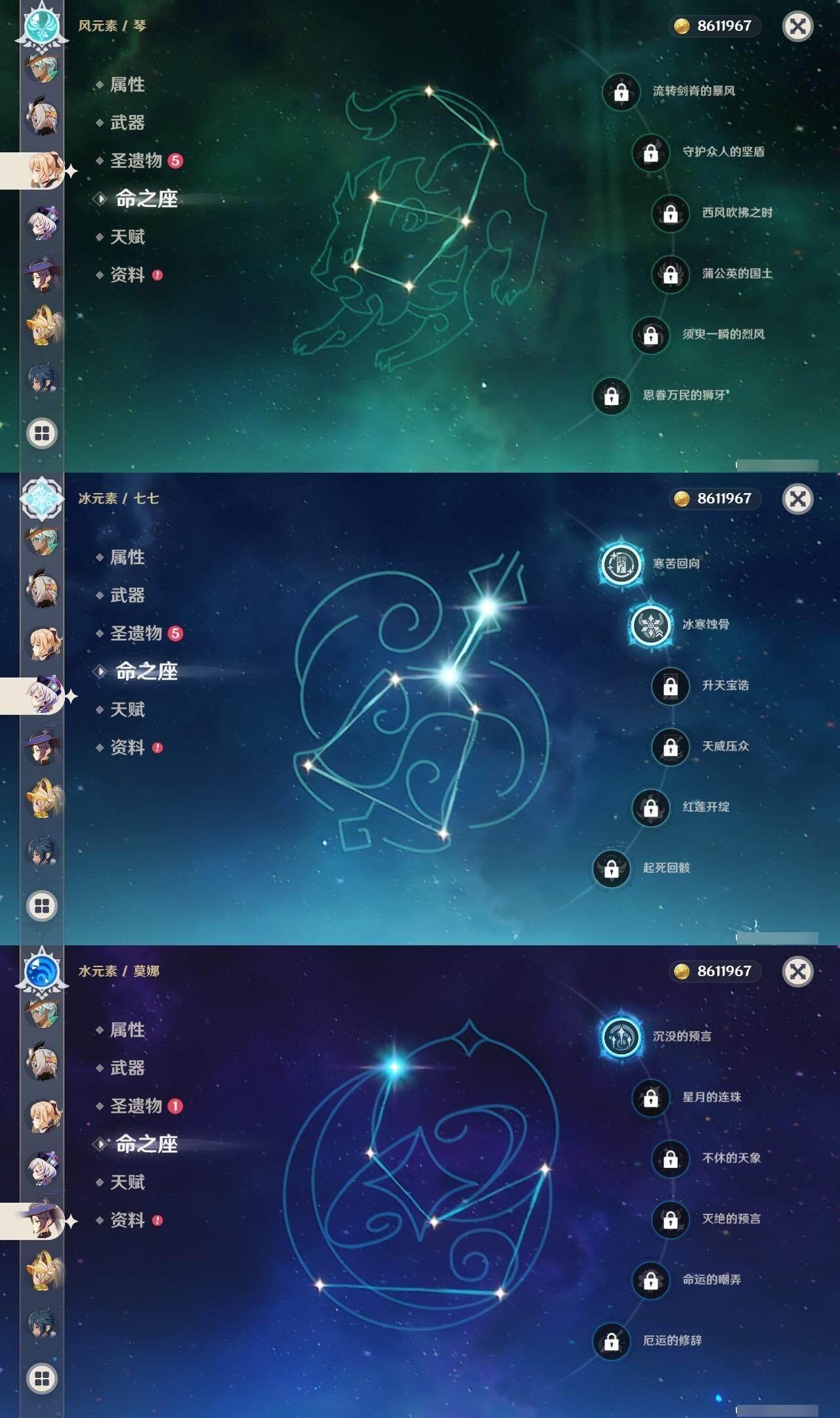 58级/26黄/女主/16个五星角色/5个五星武器 0命阿蕾奇诺0命娜维娅0命迪希雅0命纳西妲0命荒泷一斗0命雷电将军0命胡桃0命刻晴2命七七0命琴1命莫娜0命迪卢克1命茜特菈莉1命梦见月瑞希0命丝柯克0命菲林斯精1天空之翼精1风鹰剑精1天空之傲精1支离轮光