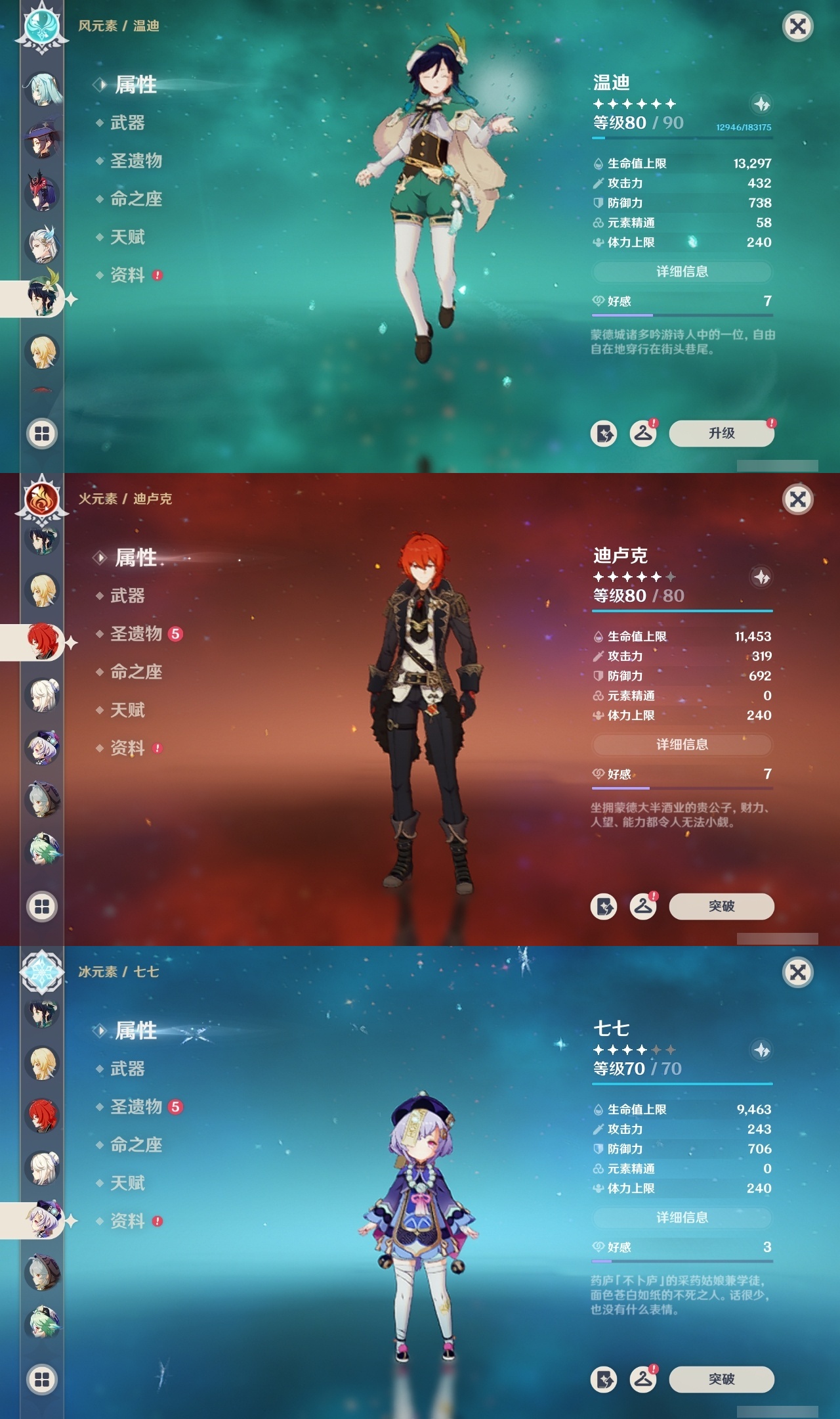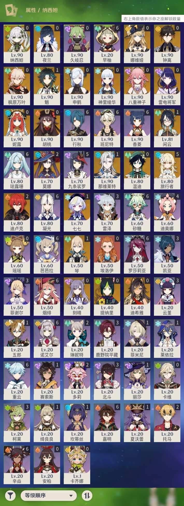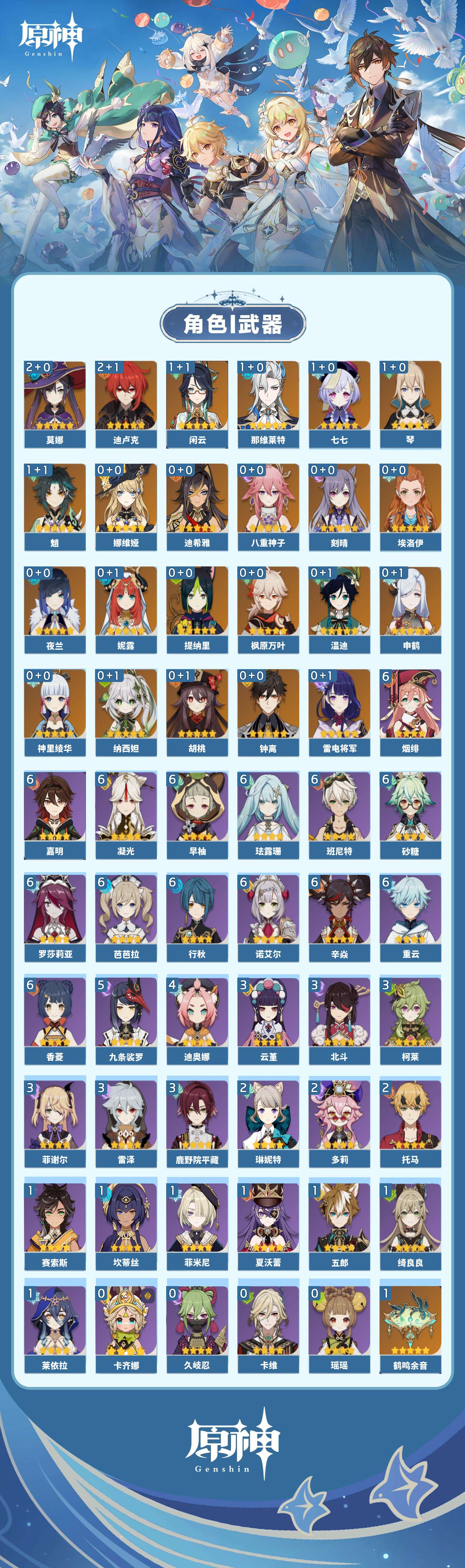 【原神】【lyys7539】冒险等级:58,五星数量:39,五星角色:迪卢克 2命莫娜 2命那维莱特 1命闲云 1命魈 1命七七 1命琴 1命神里绫华温迪迪希雅钟离申鹤八重神子夜兰娜维娅提纳里妮露纳西妲枫原万叶胡桃刻晴雷电将军__五星武器:鹤鸣余音阿莫斯之弓风鹰剑和璞鸢护摩之杖狼的末路磐岩结绿四风原典天空之傲天空之脊天空之翼薙草之稻光终末嗟叹之诗息灾圣显之钥千夜浮梦__四星角色:班尼特 6命行秋 6命香菱 6命珐露珊 6命凝光 6命砂糖 6命芭芭拉 6命早柚 6命烟绯 6命重云 6命辛焱 6命诺艾尔 6命罗莎莉亚 6命嘉明 6命九条裟罗 5命迪奥娜 4命鹿野院平藏 3命柯莱 3命云堇 3命雷泽 3命菲谢尔 3命北斗 3命多莉 2命托马 2命琳妮特 2命绮良良 1命莱依拉 1命坎蒂丝 1命五郎 1命菲米尼 1命夏沃蕾 1命赛索斯 1命埃洛伊卡齐娜久岐忍瑶瑶卡维